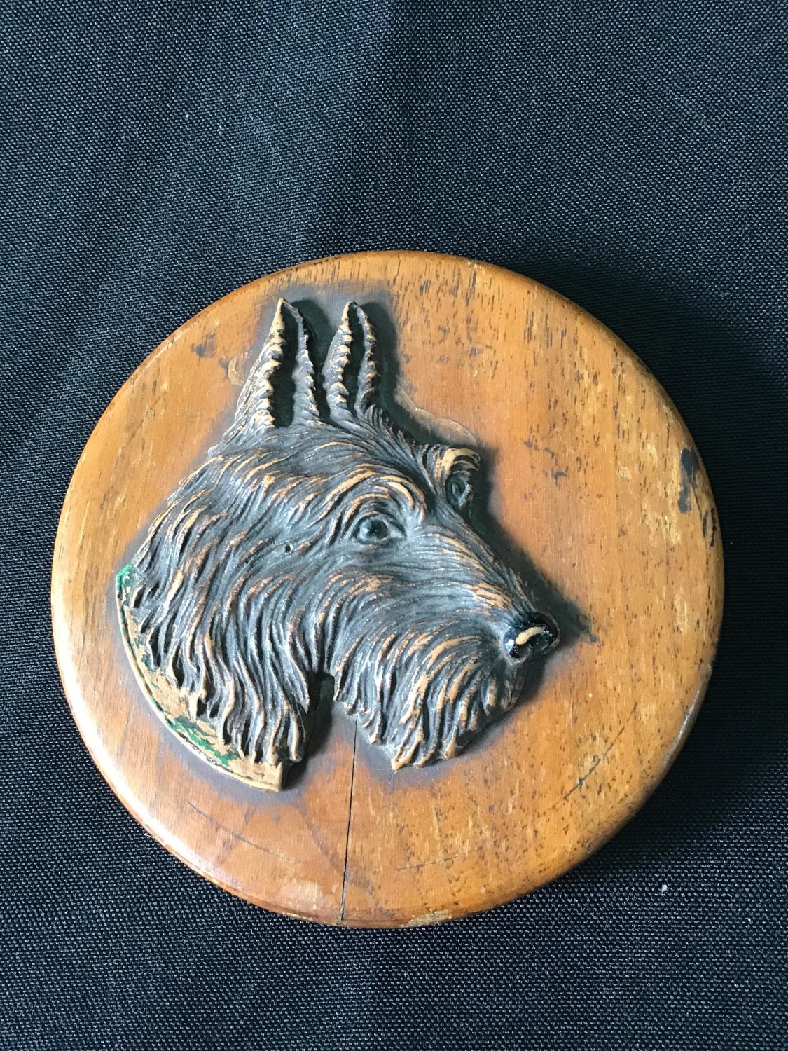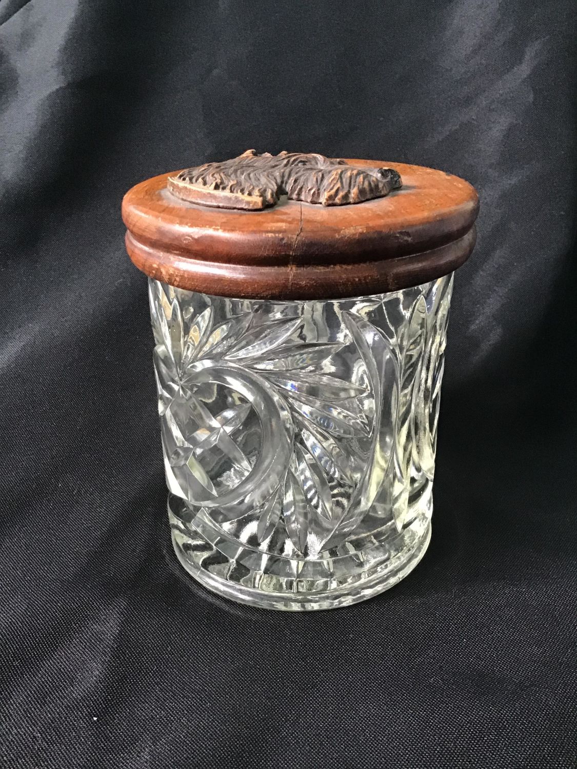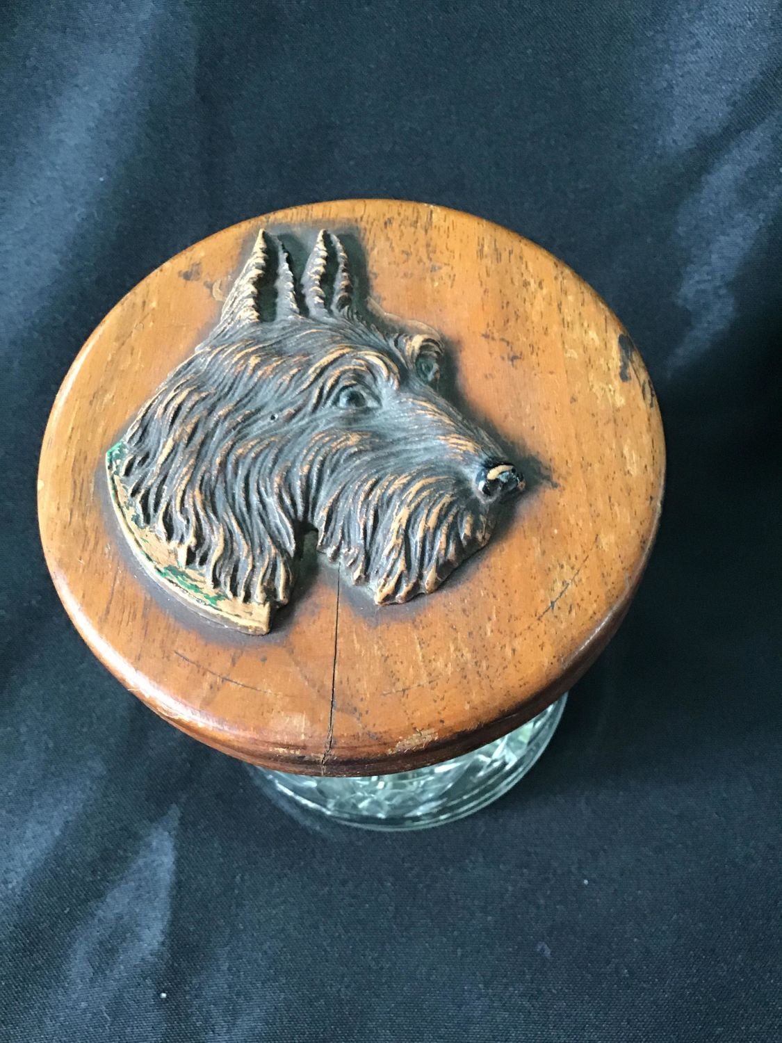 Lot 94: 1940's Biscuit Jar with Wood Scotty Dog Top .