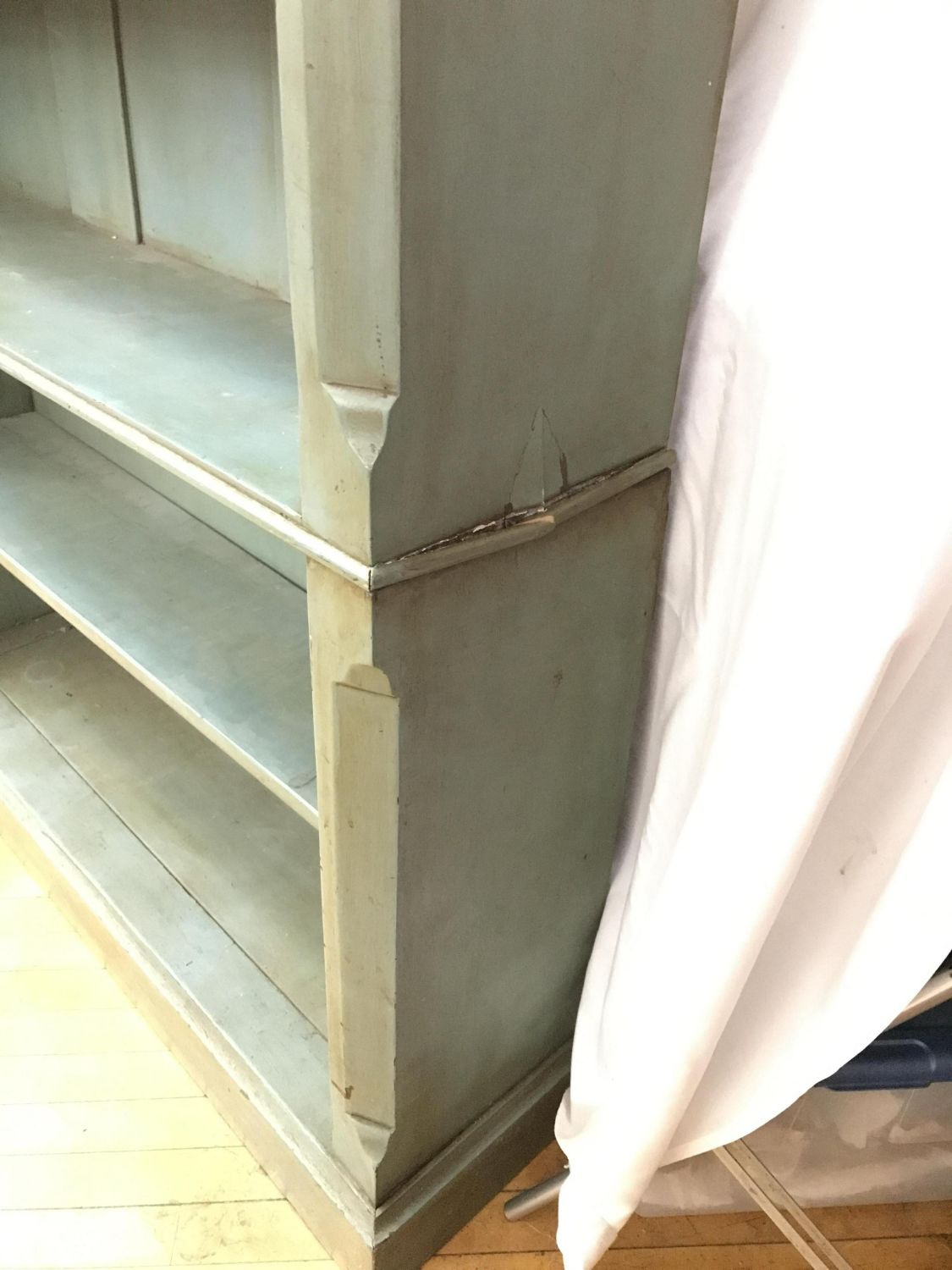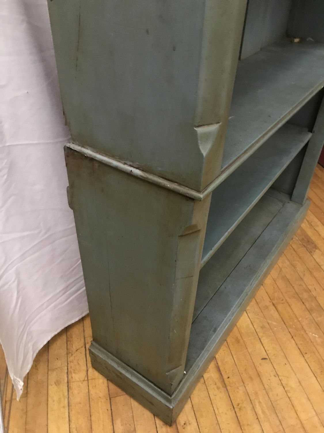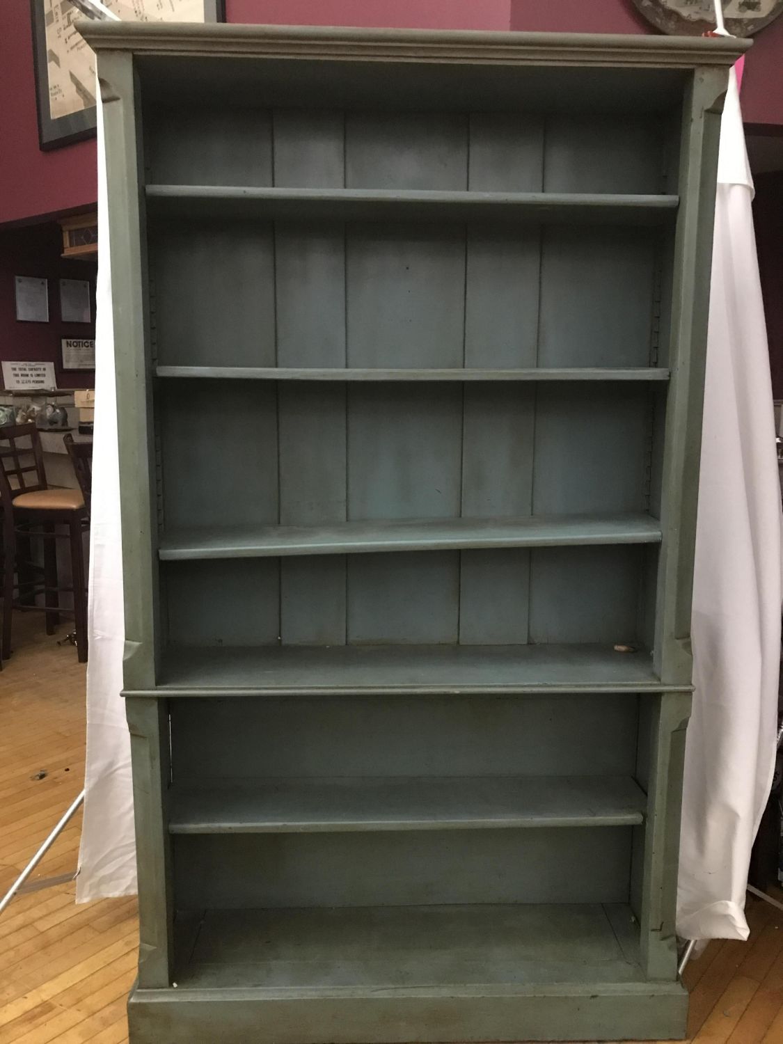 Two pieces held by wooden dowels Adjustable shelves 77x46x12in