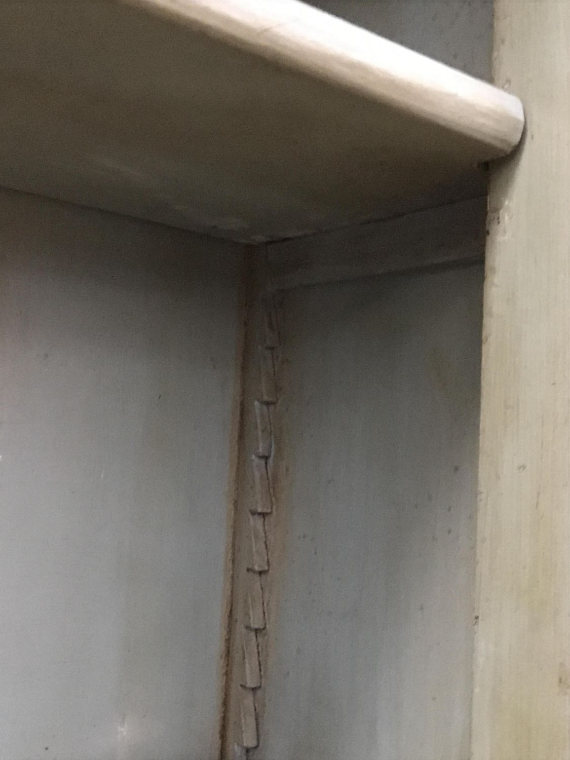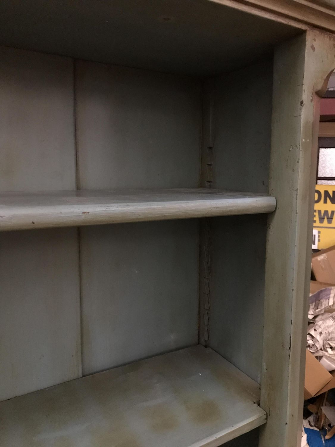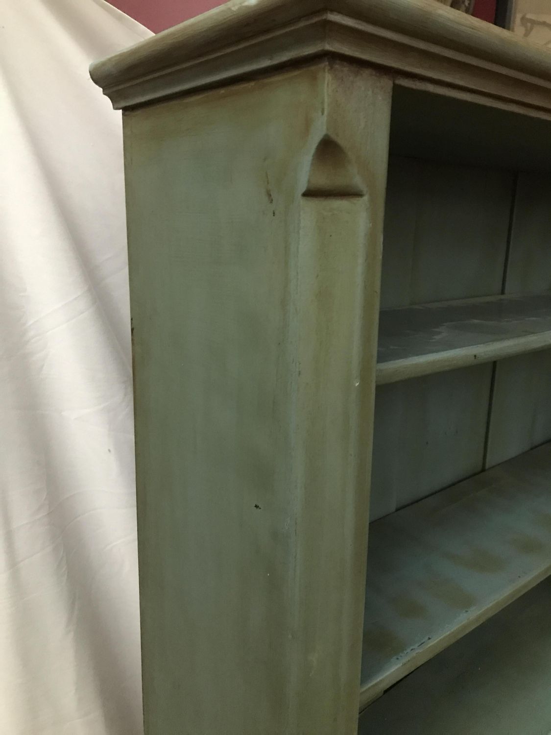 Two pieces held by wooden dowels Adjustable shelves 77x46x12in