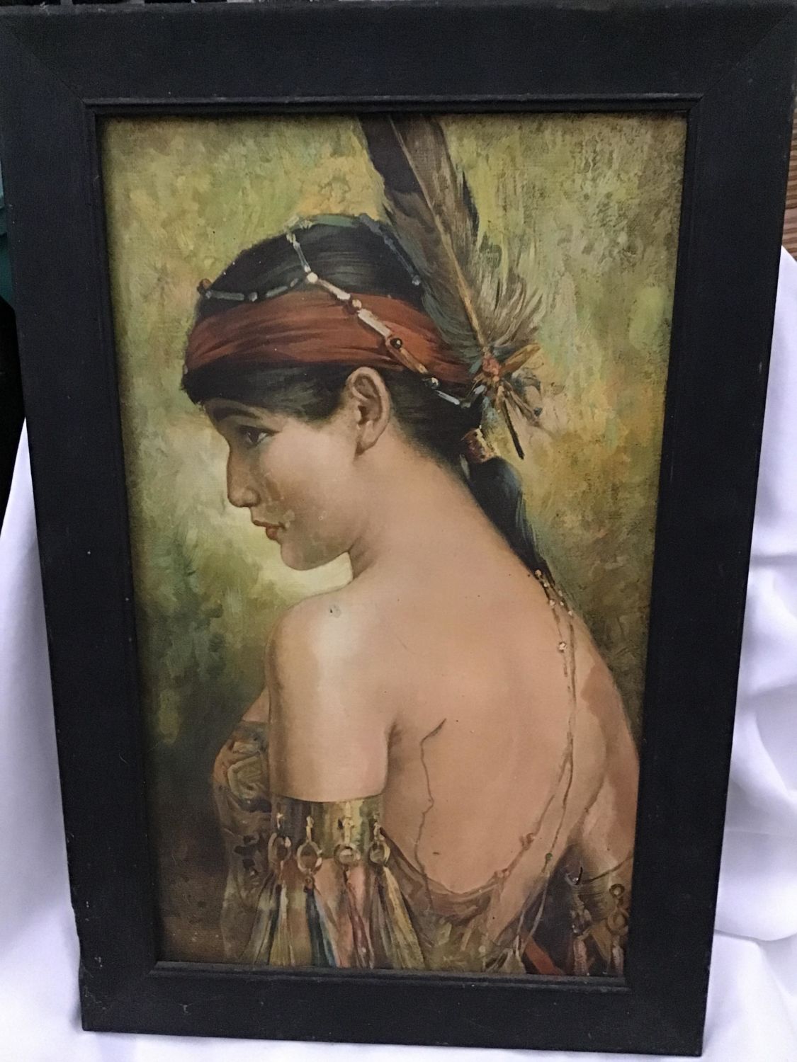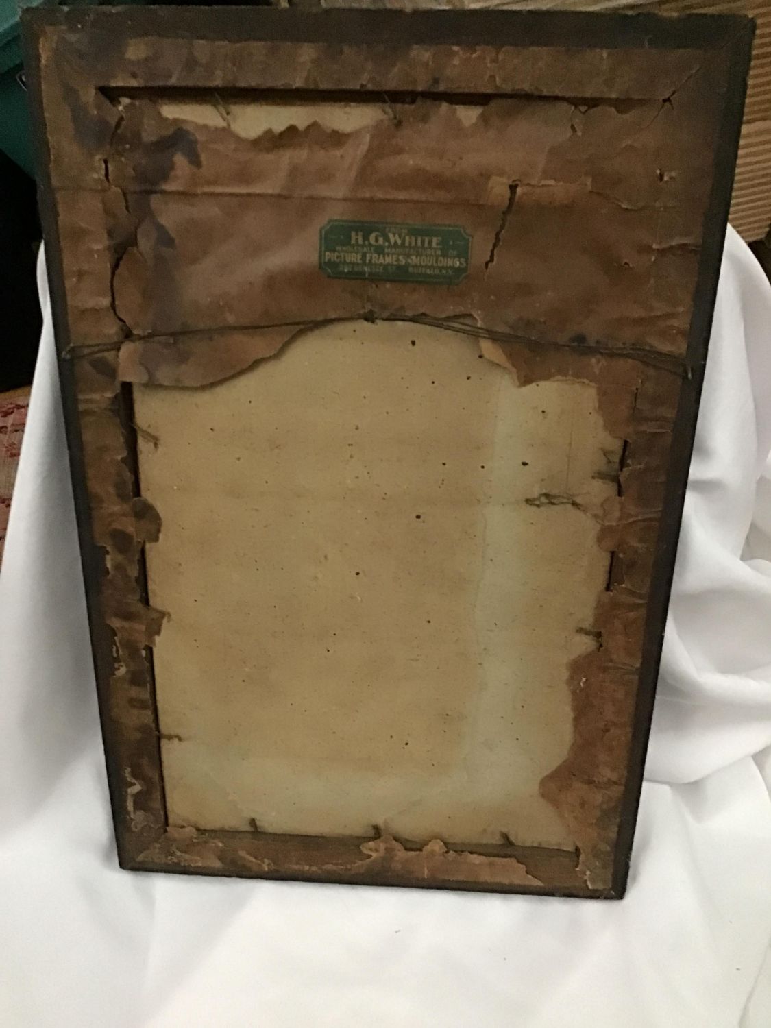 Some tears and water damage Frame measures 23 by 15.5 inches