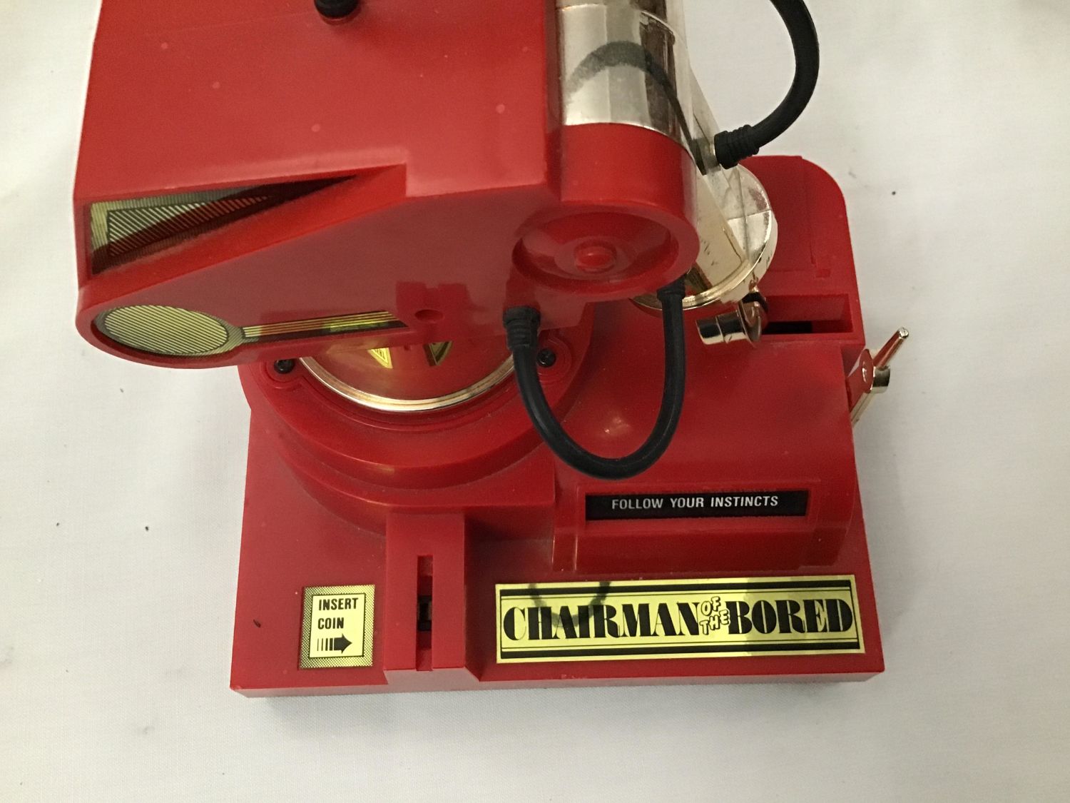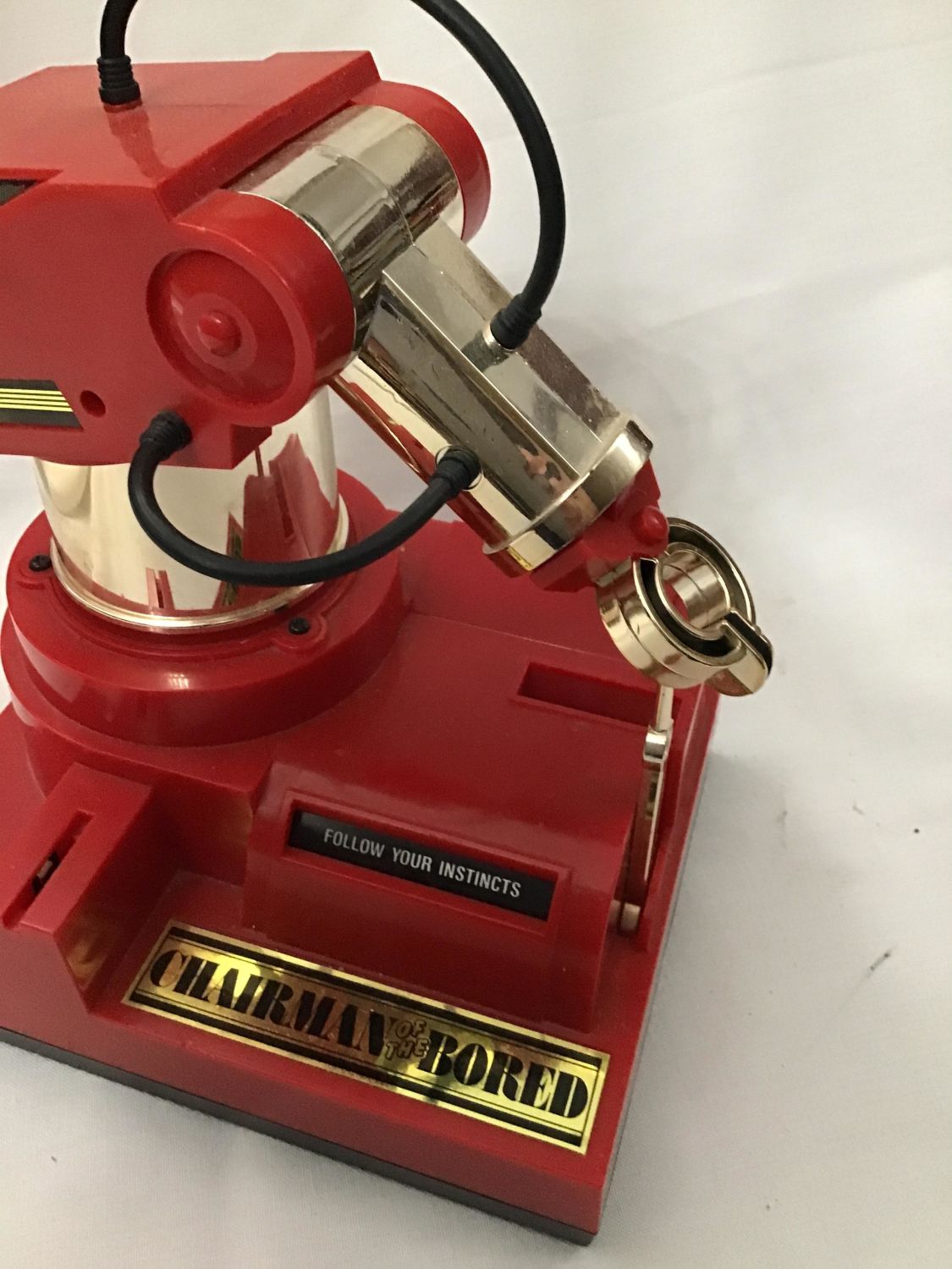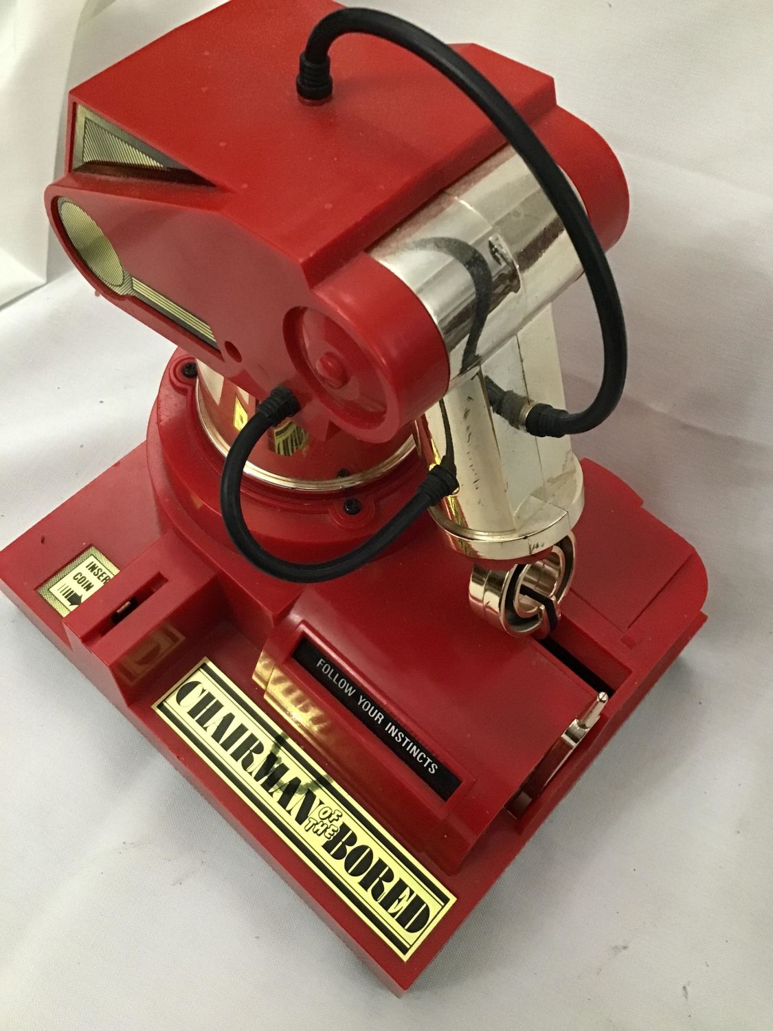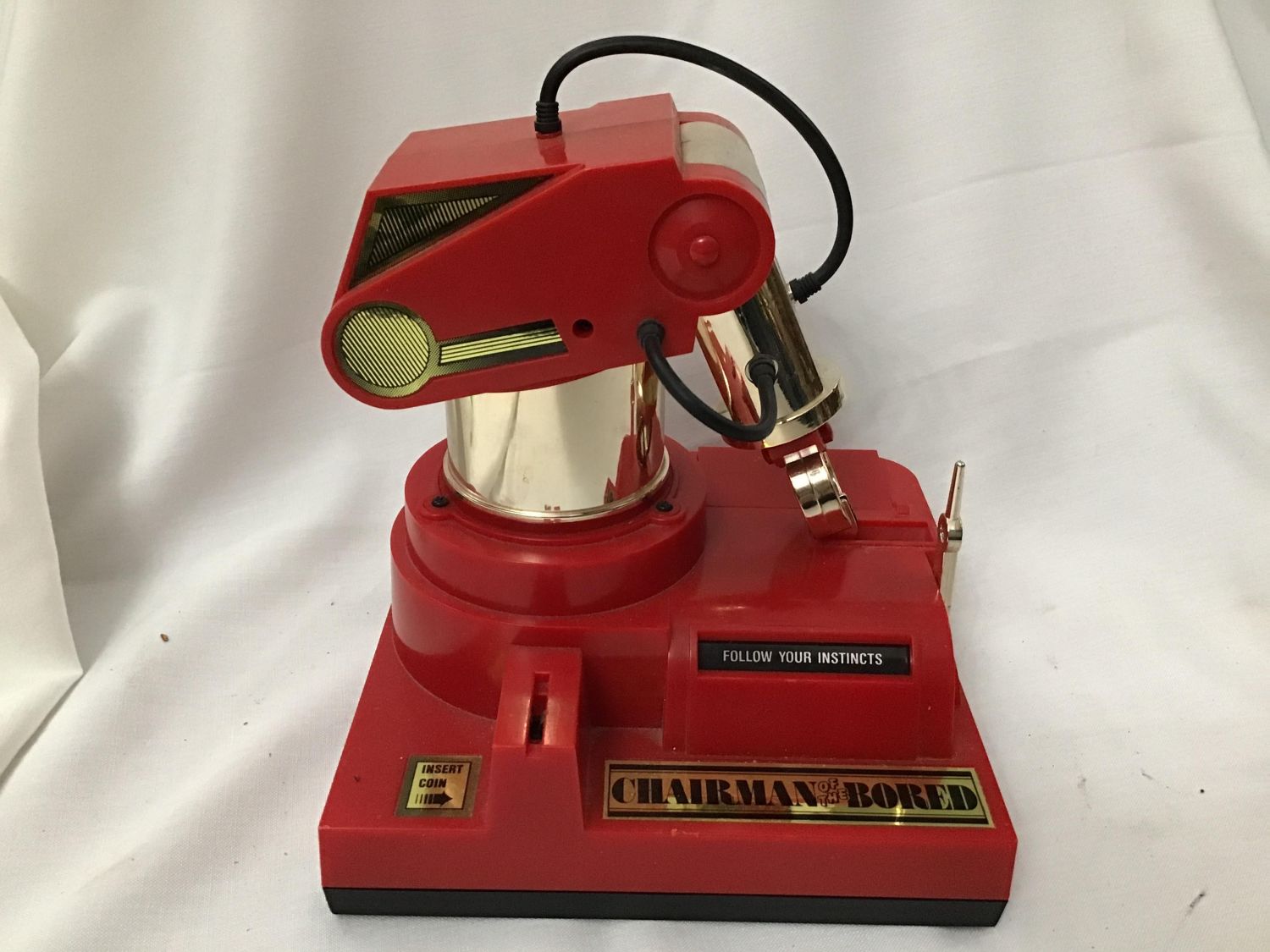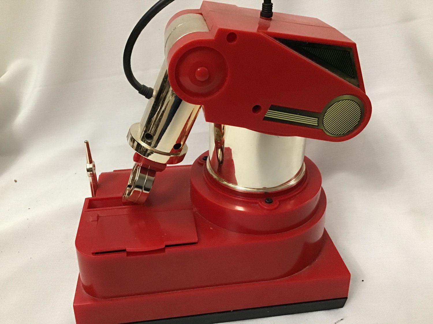 Battery operated Looks like Iron Mans Robot Measures 7 inches tall by 6 inches wide by 5 inches depth