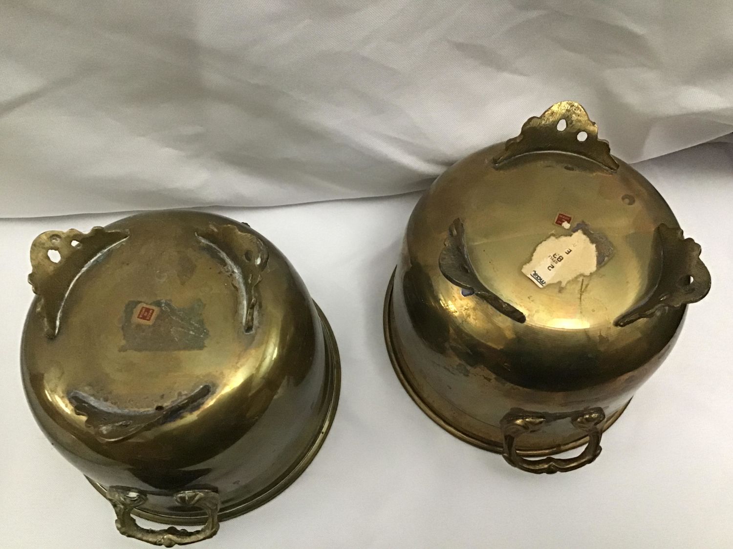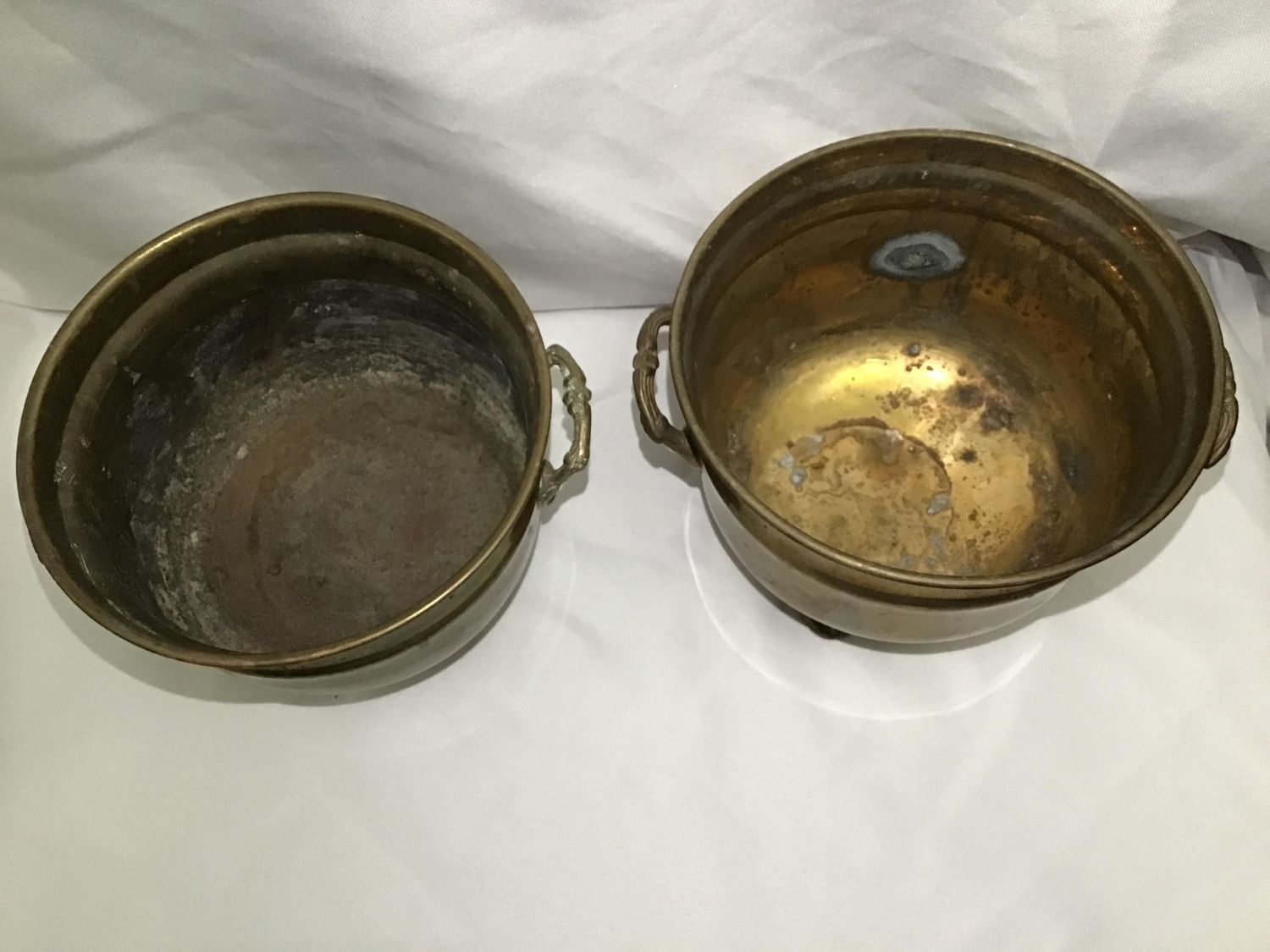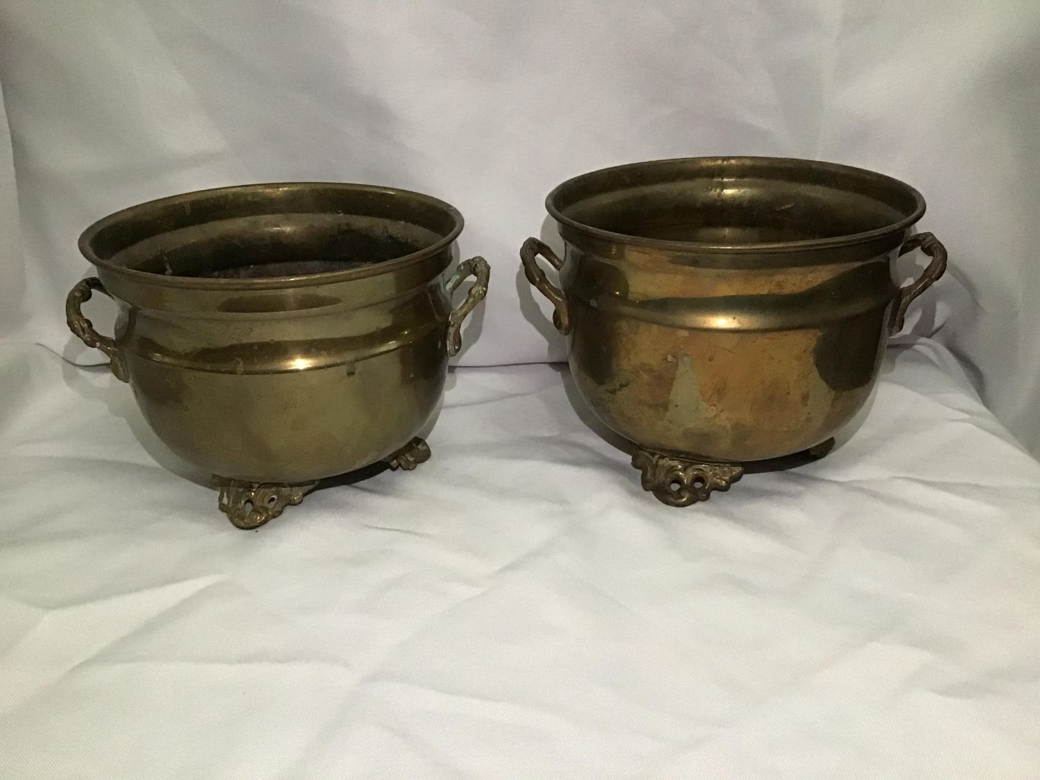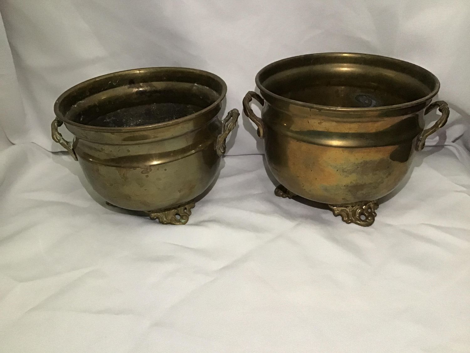 Each has handles and feet. Each measures approximately 6.5 inches by 5 inches tall