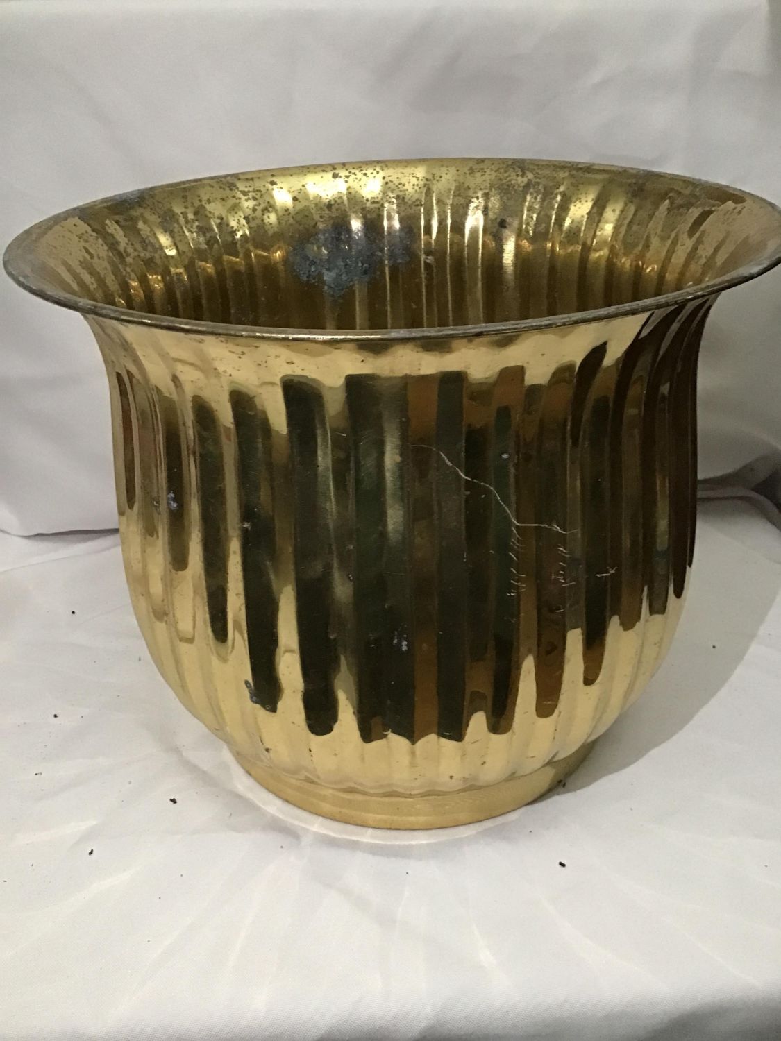 Lot 76: Brass Planters with Ridges Measures 9.5 inches tall