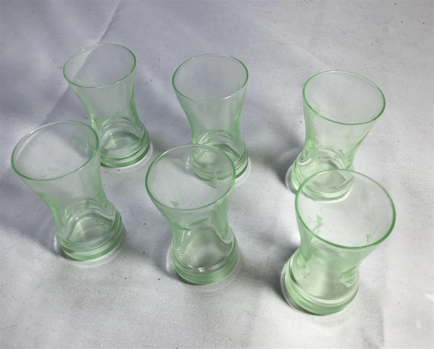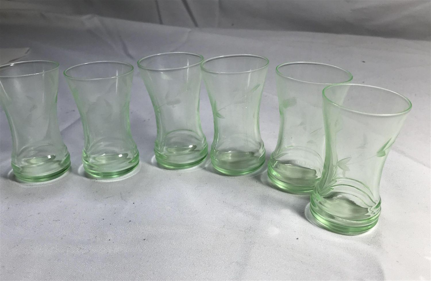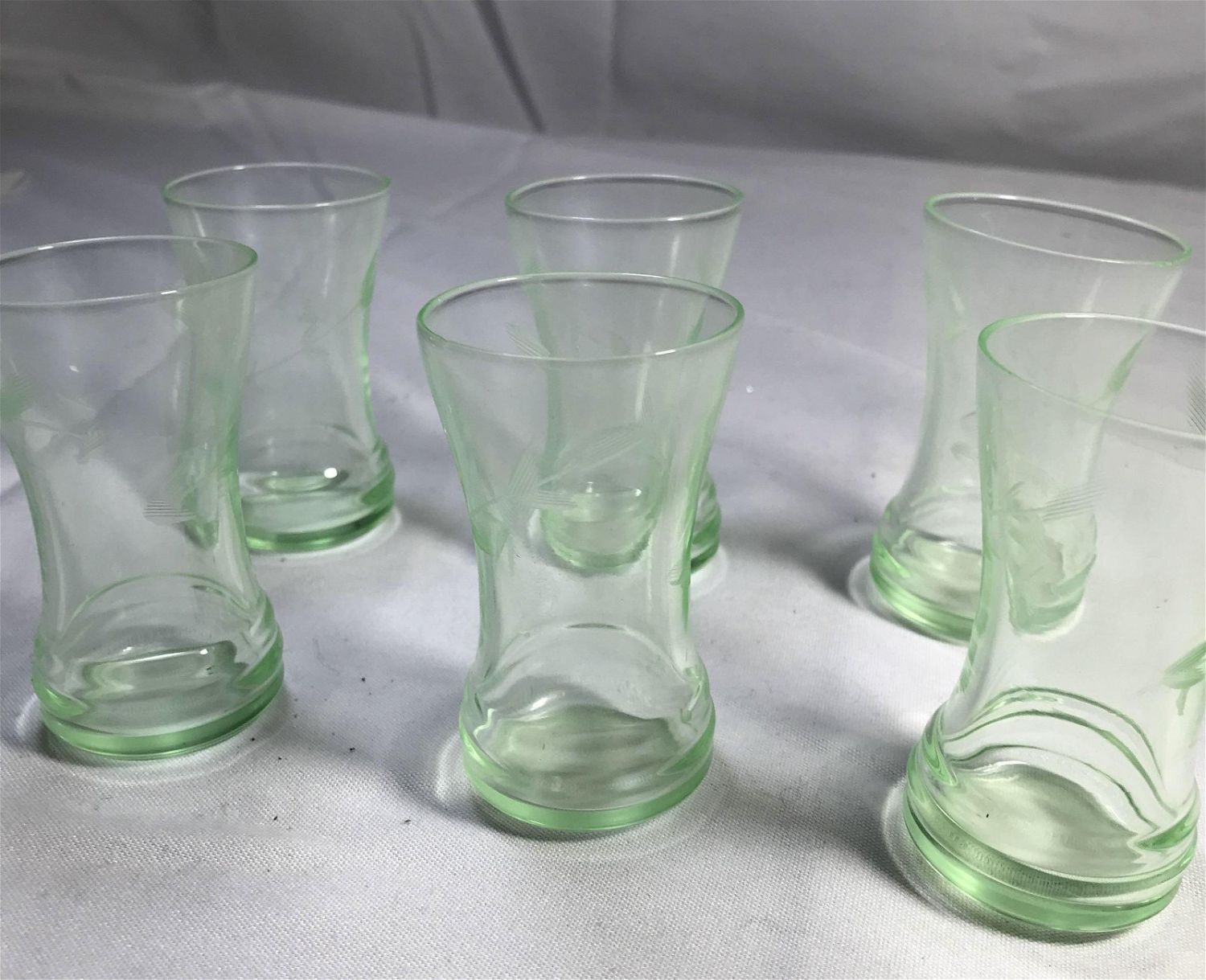 Lot 122: Depression Glass, Shot Glasses (6) Etched glass .