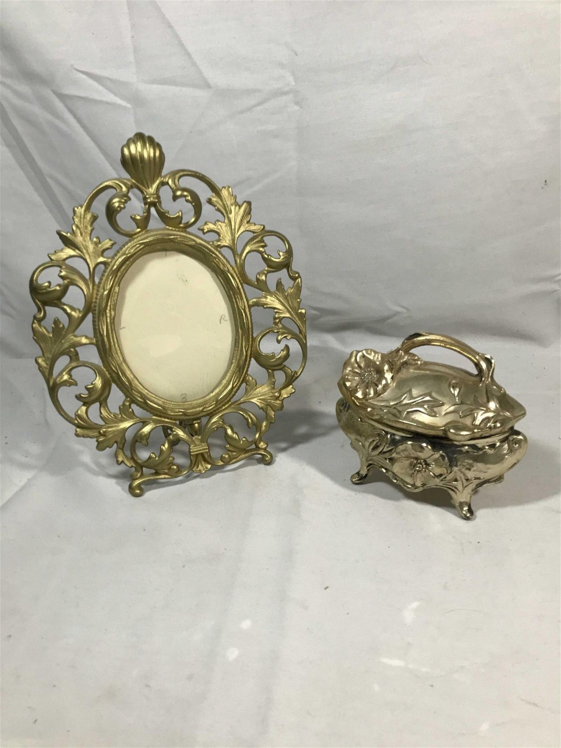 Lot 166: Early vanity mirror and Victorian jewelry box .