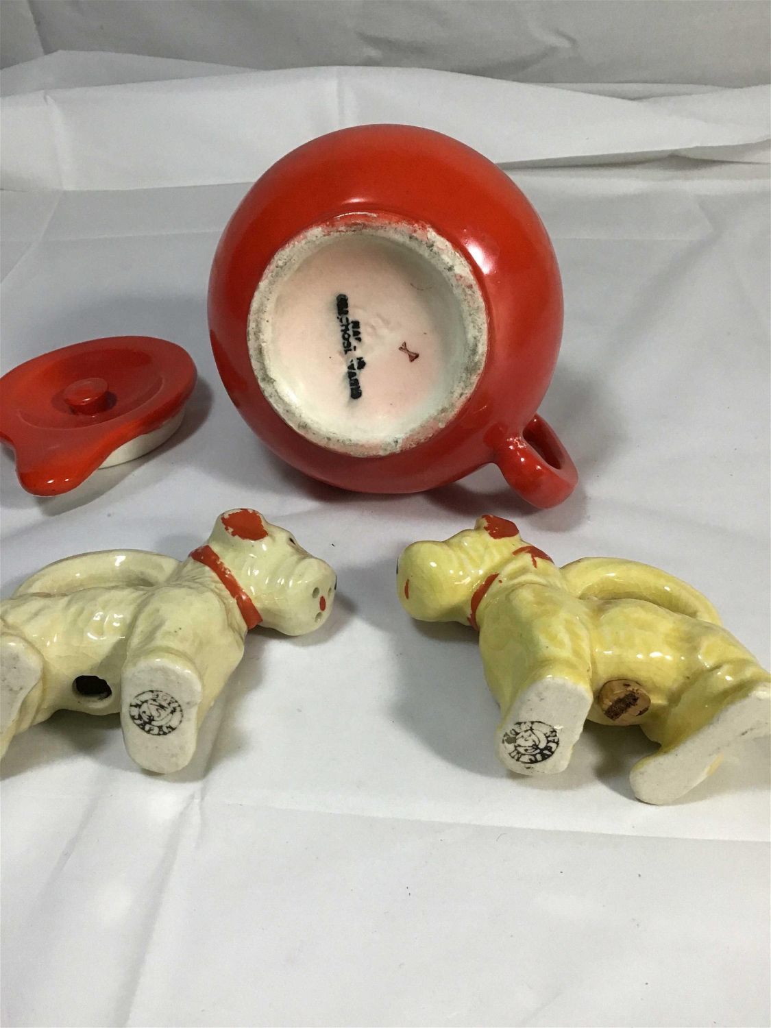 Lot 191: Czechoslovakia creamer and pair of dogs! .