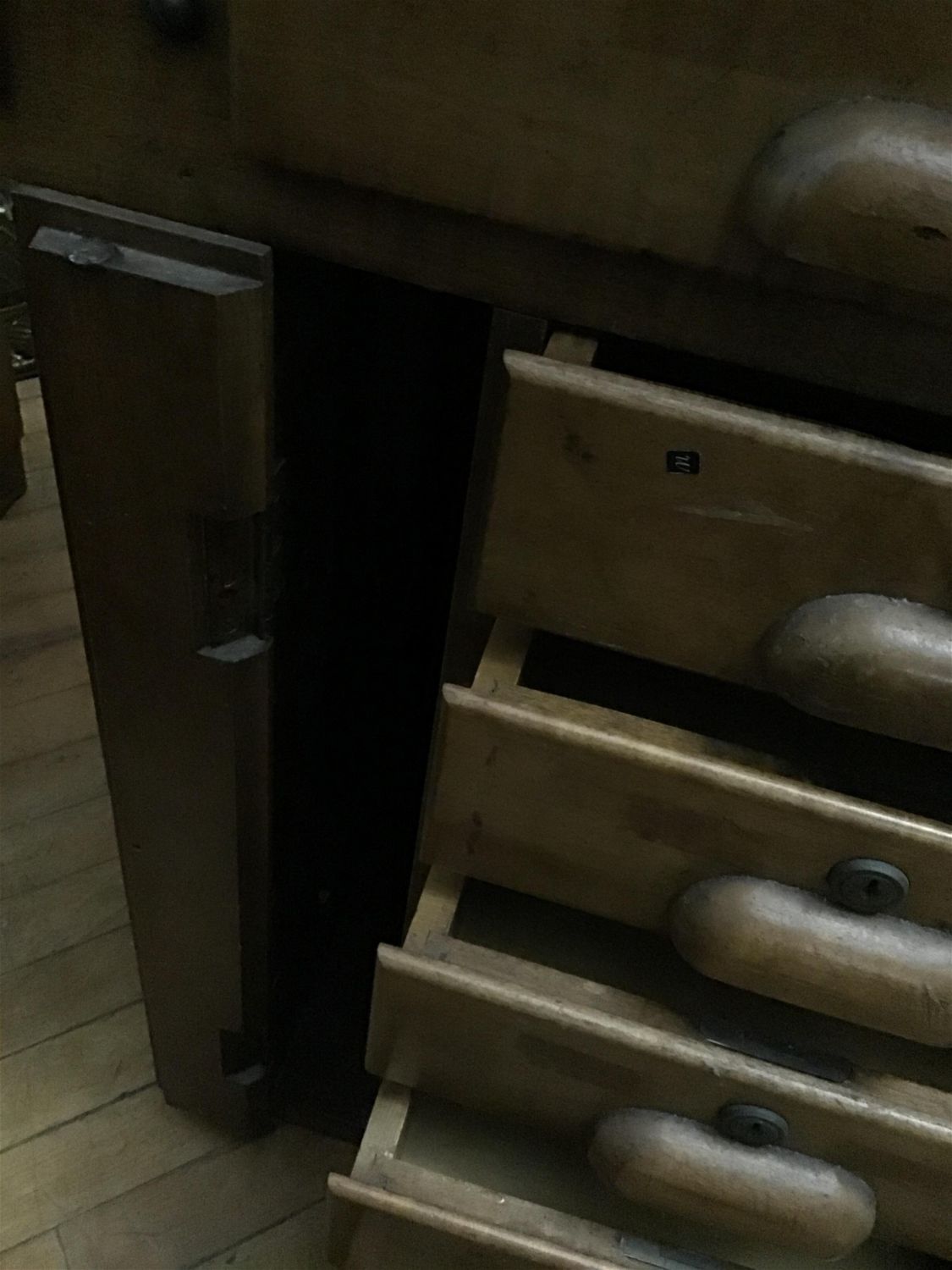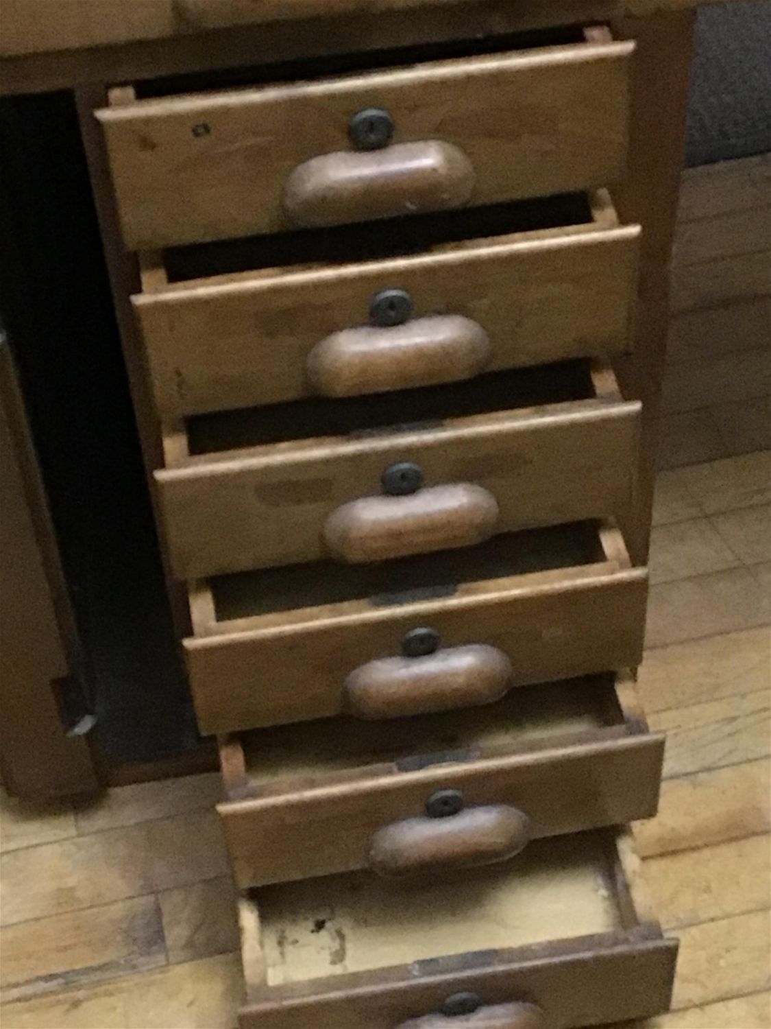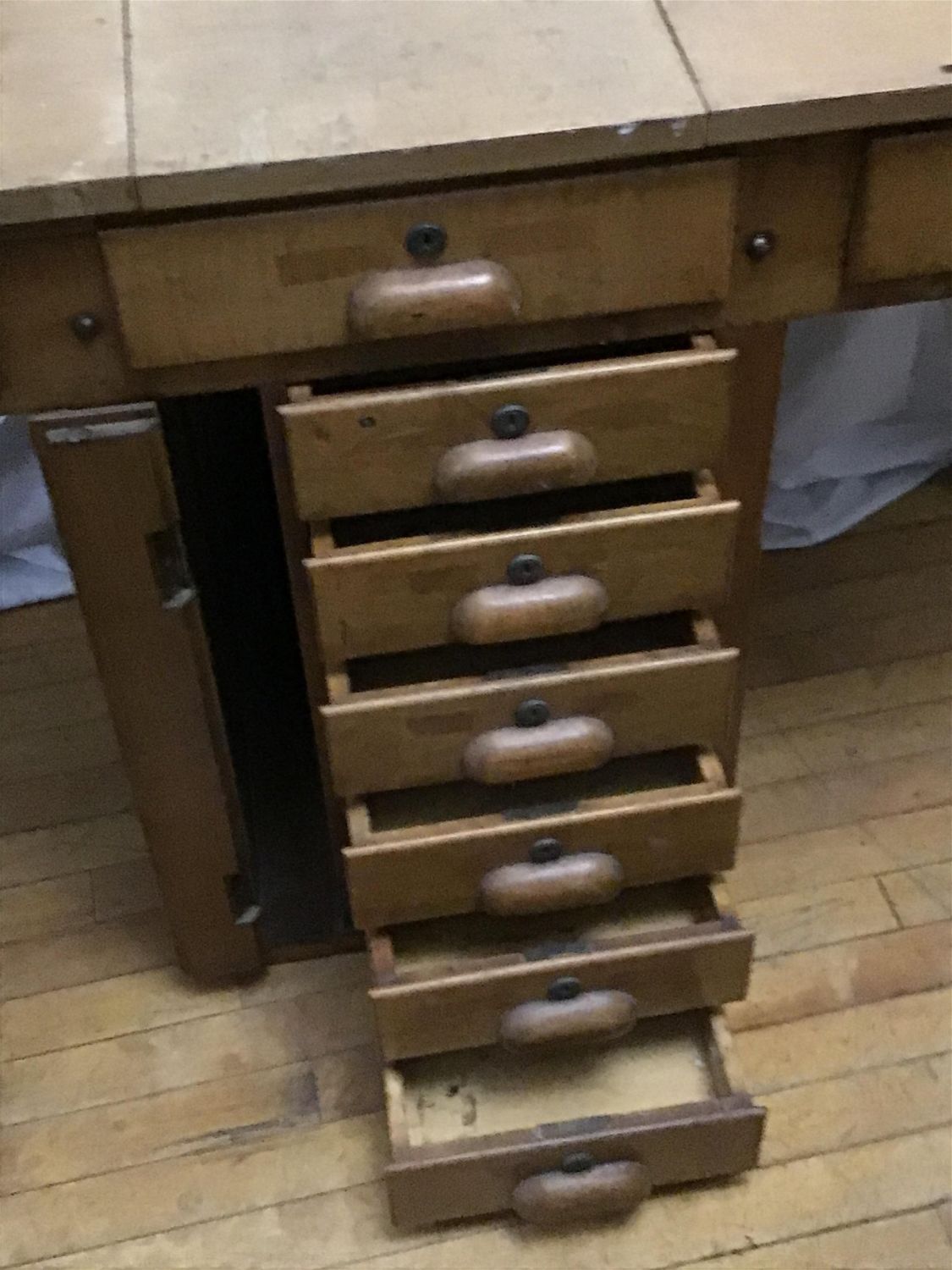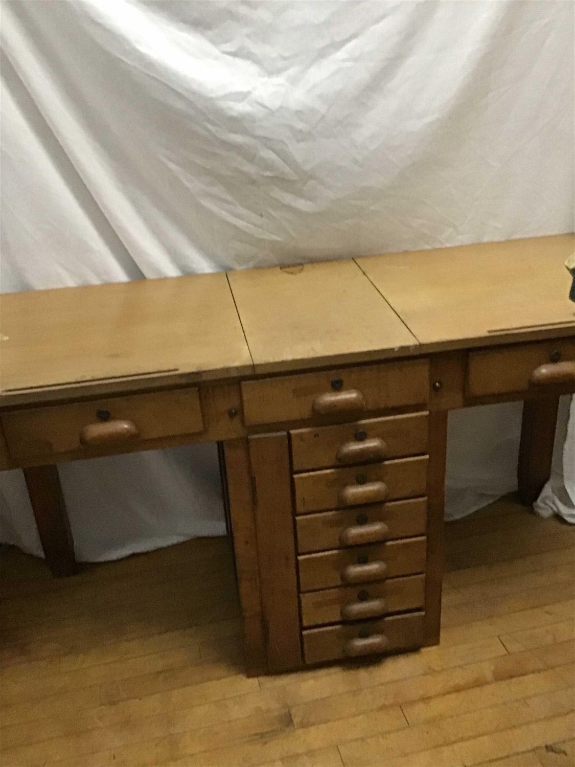 Lot 219: Vintage Mulitdrawer Drafting table Measures 30 inches tall by 56 inches wide by 20.5 inches depth