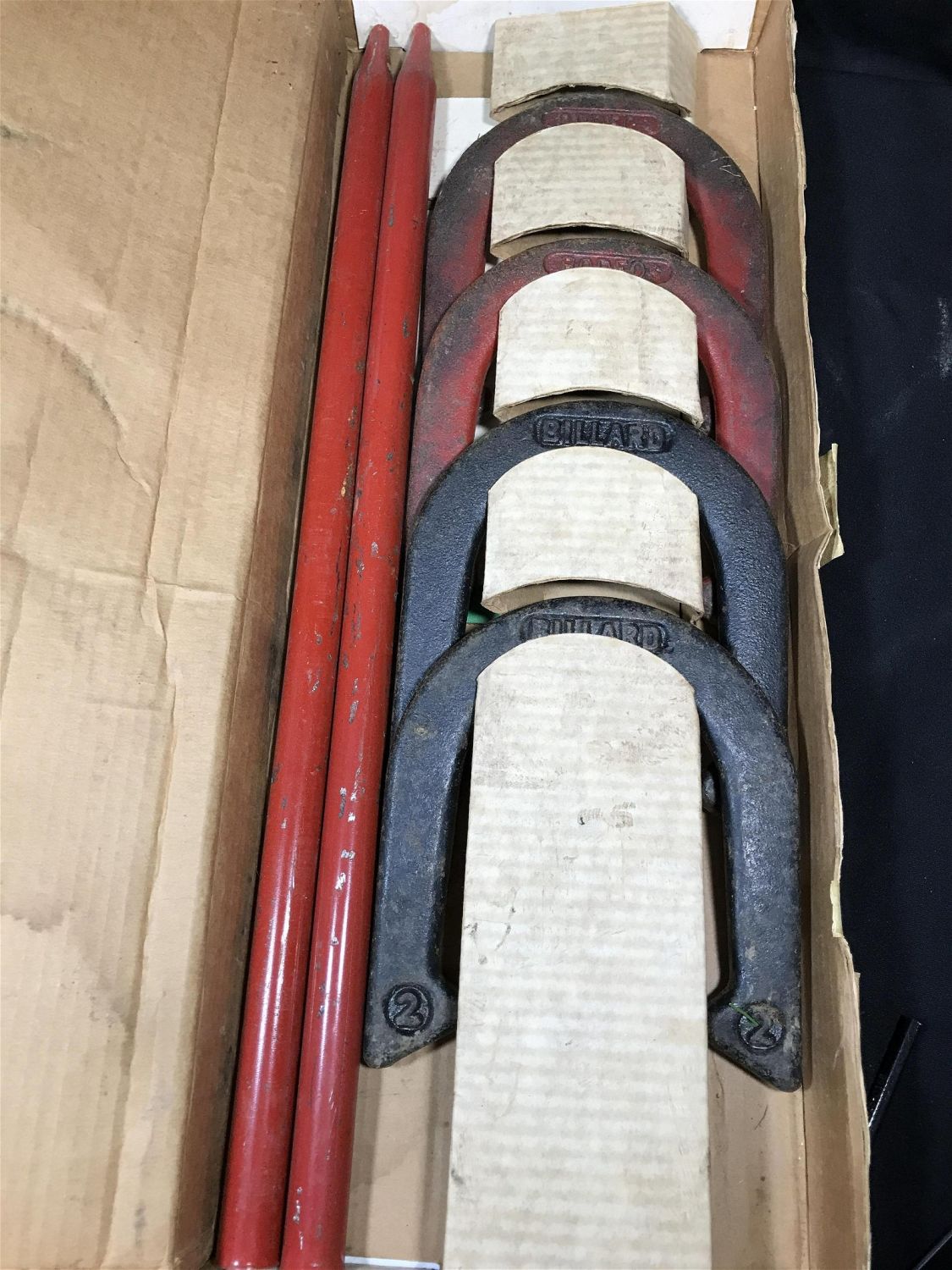 Lot 245: Horseshoes Set Billard Pitching Horseshoes in org box