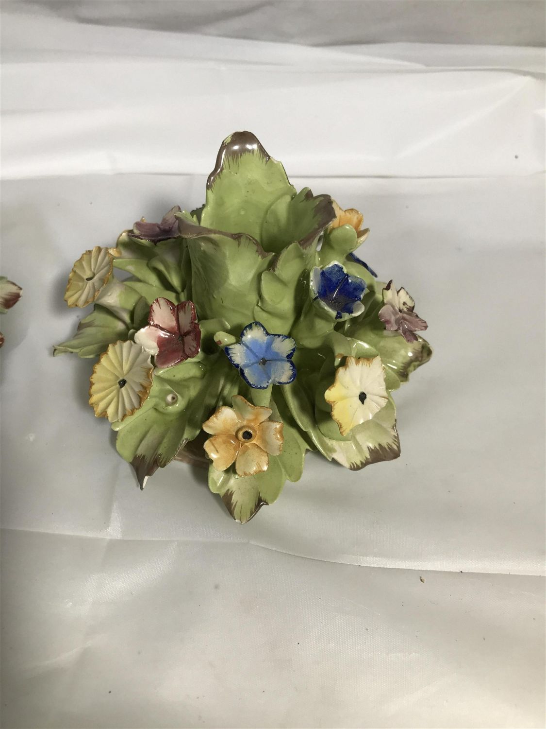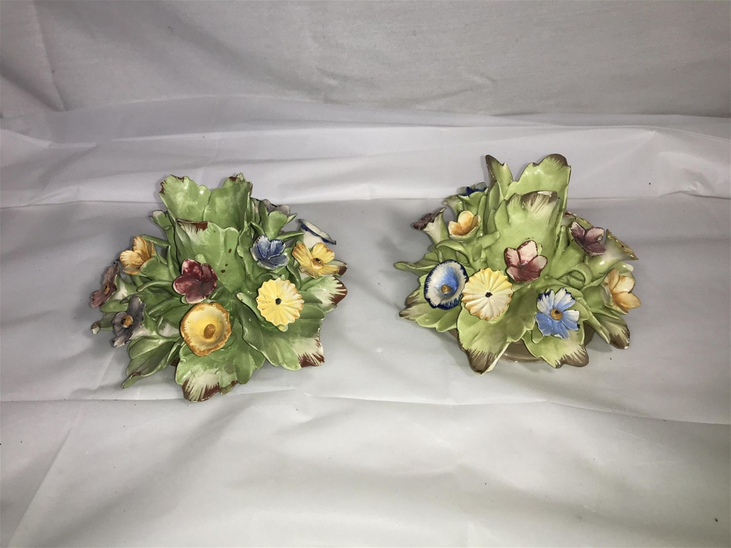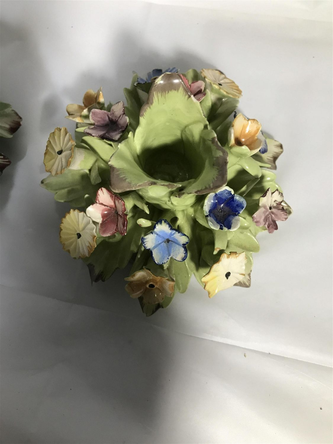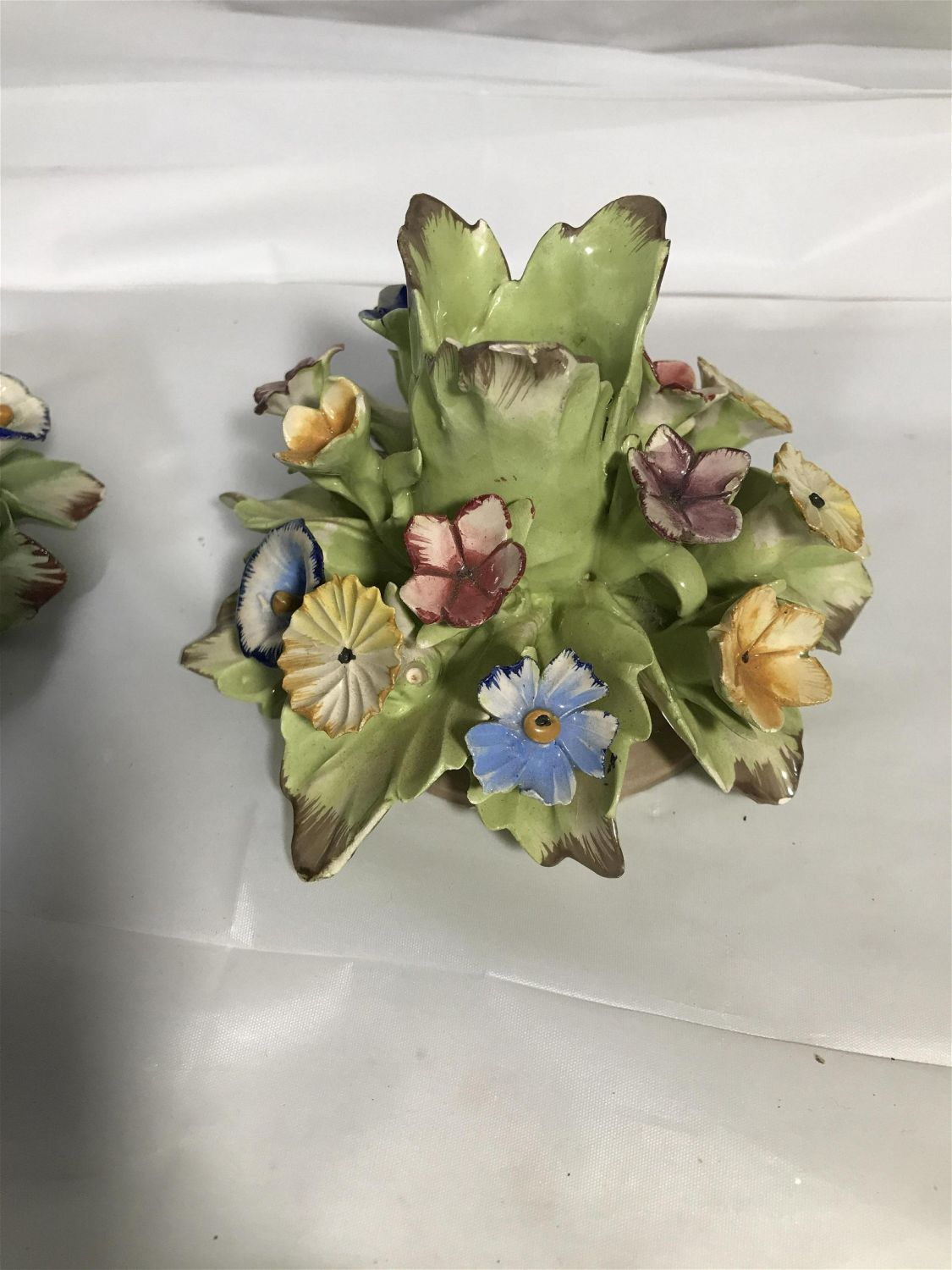 Lot 292: Capodimonte Candleholders (2) Couple of pedal flakes