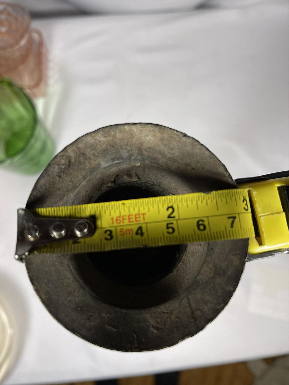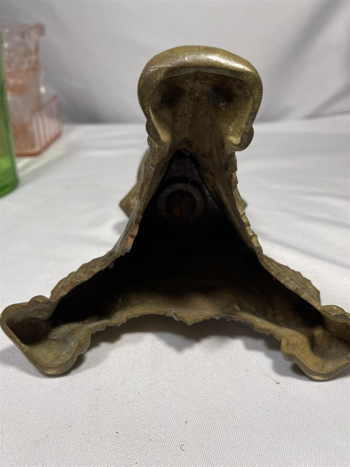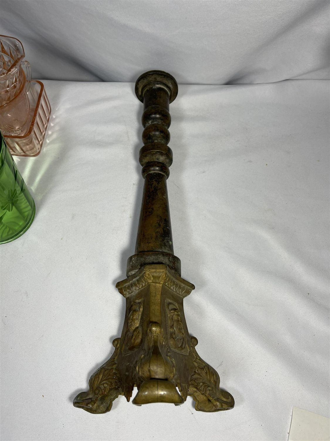 Lot 148: Vintage Roman Catholic bronze candlestick. This piece measures 18 1/2 inches tall width of the legs
