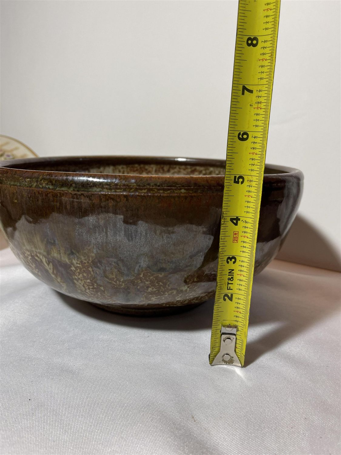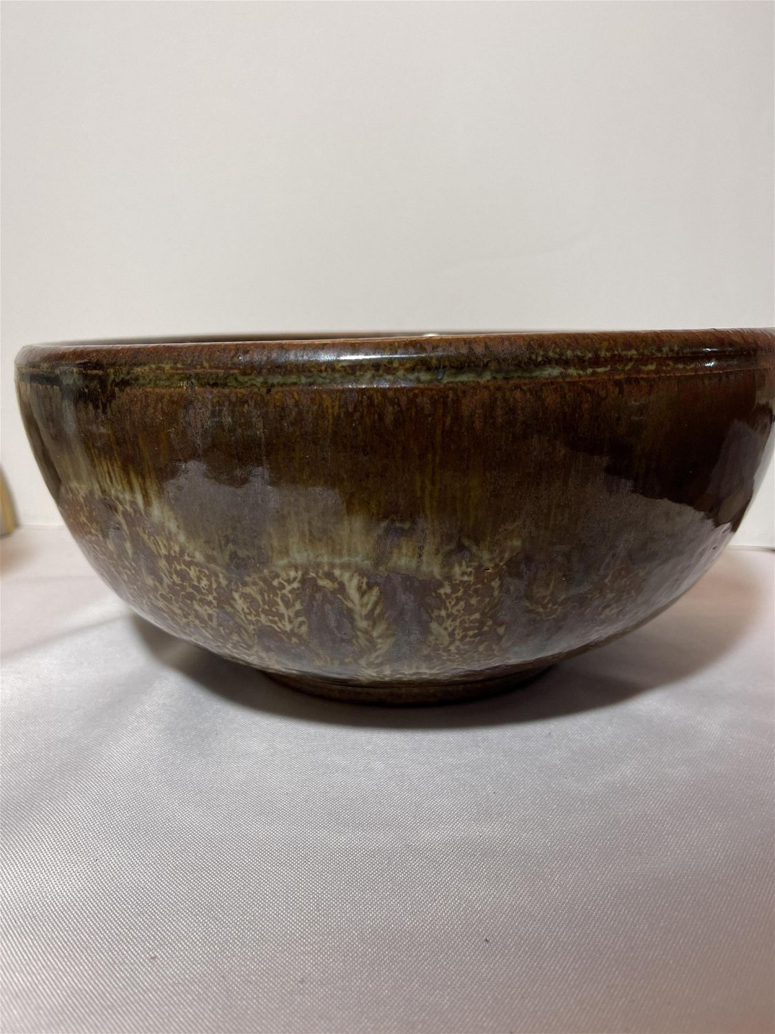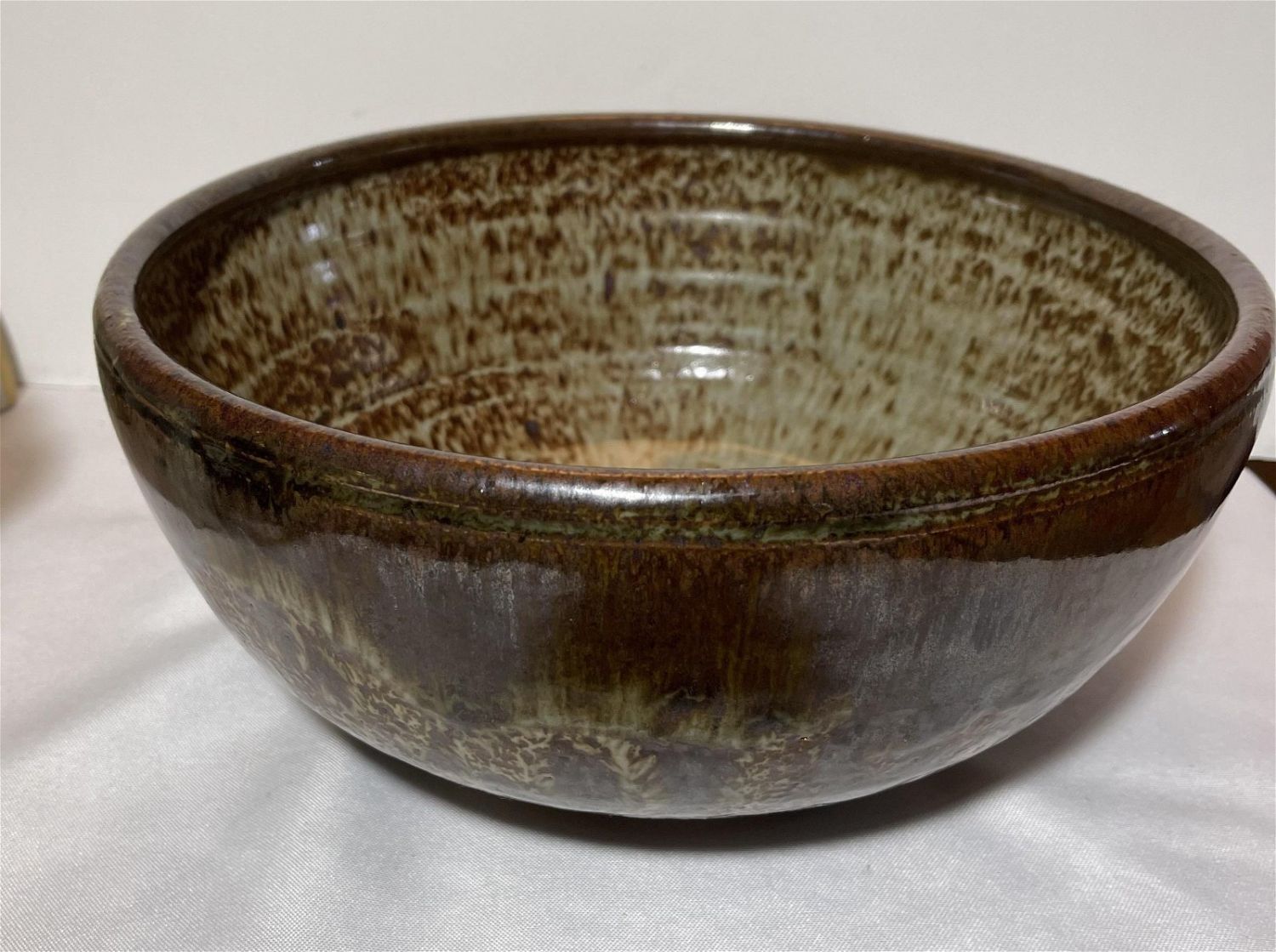Lot 150: 1970s earth tone stoneware bowl swirl mark on bottom, This piece measures 10 3/4 x 5†depth