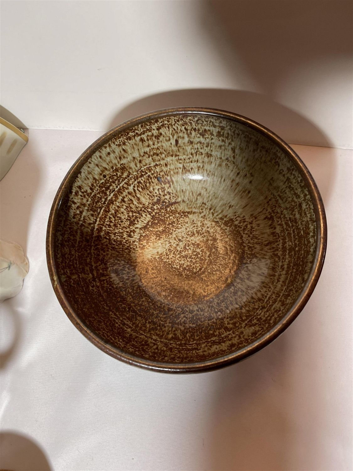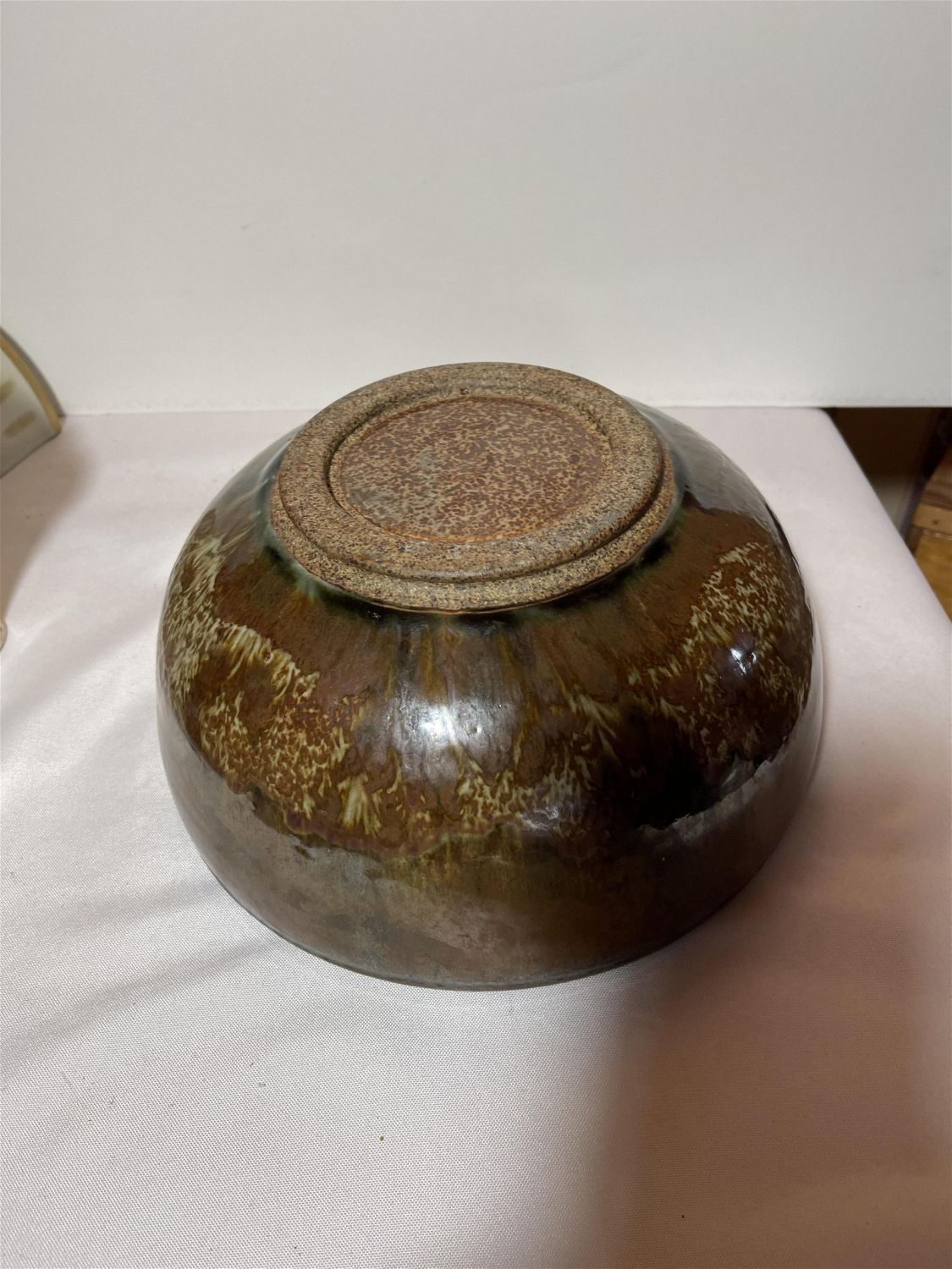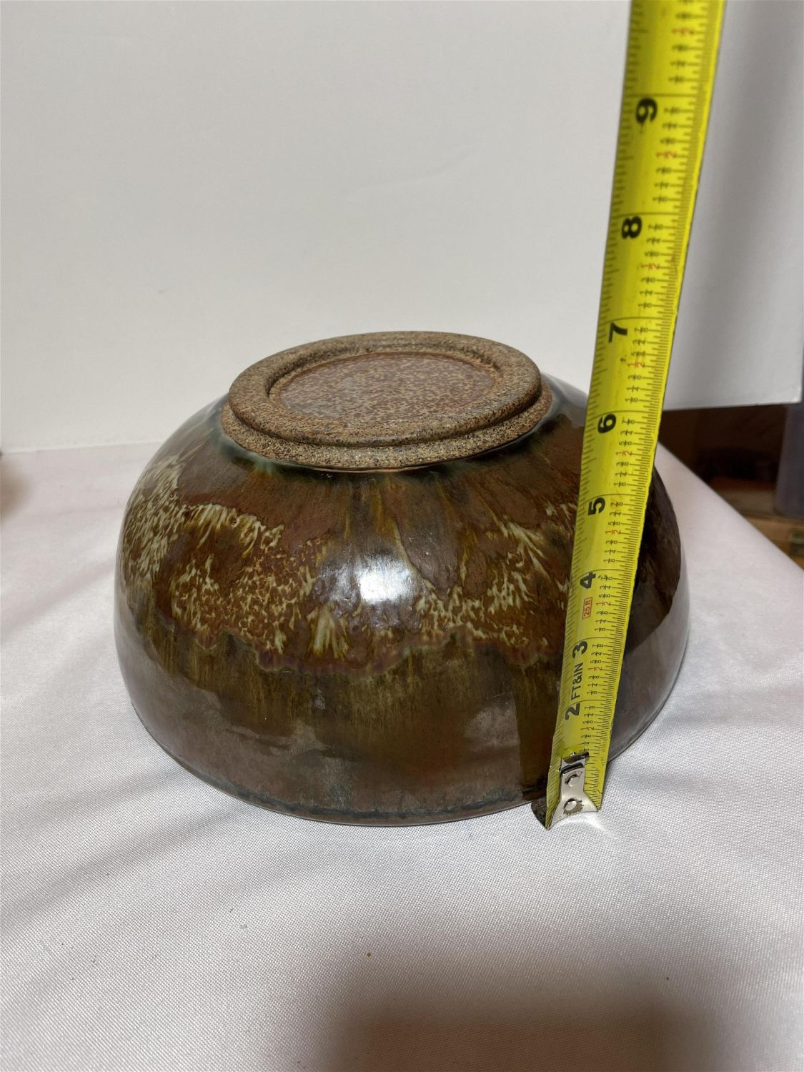 Lot 150: 1970s earth tone stoneware bowl swirl mark on bottom, This piece measures 10 3/4 x 5†depth