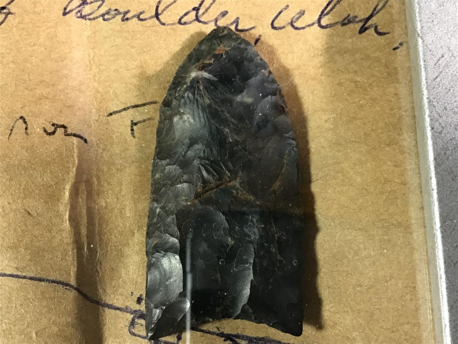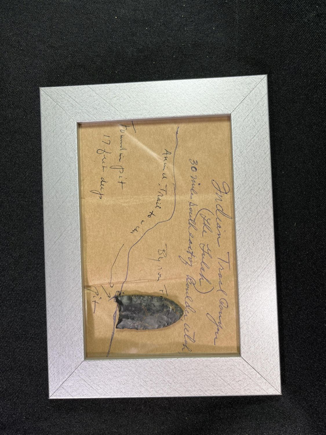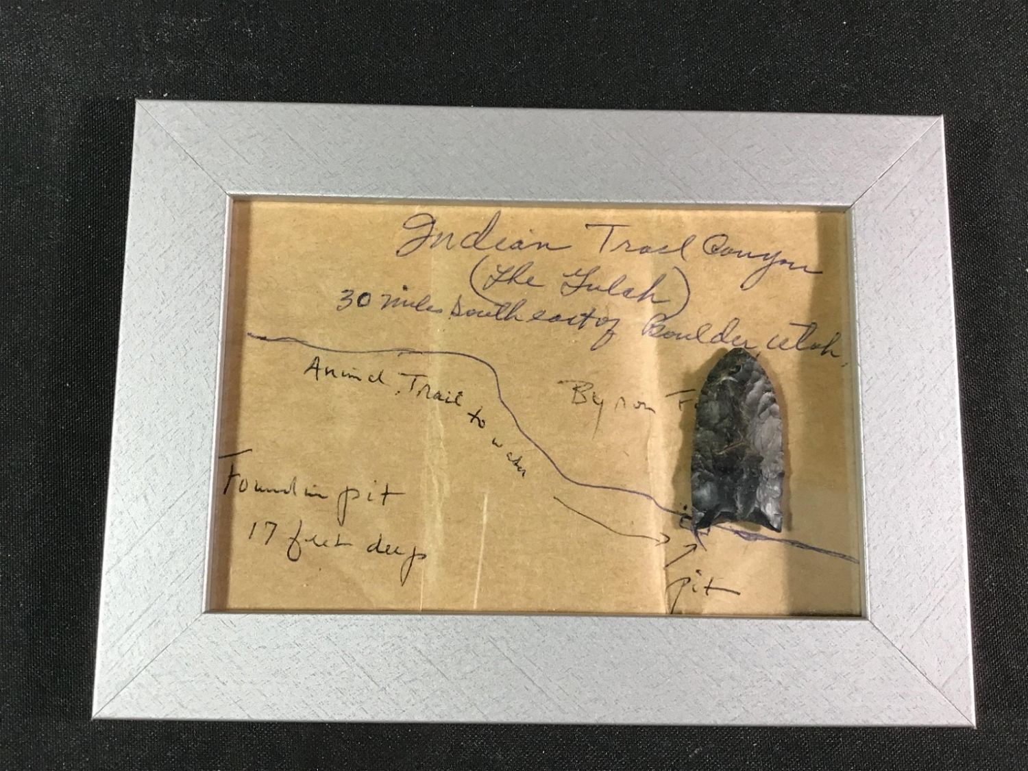 Lot 5: Clovis Point Found in Utah - Authenticated Has Trail map on the display where this piece was found
