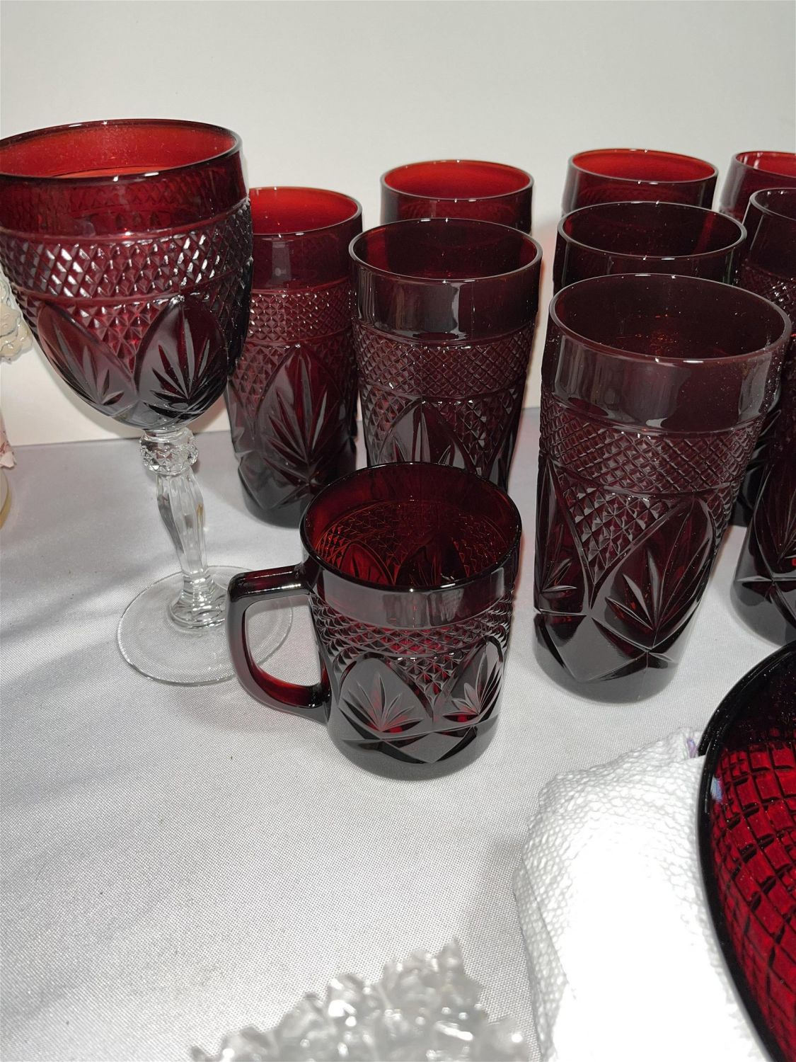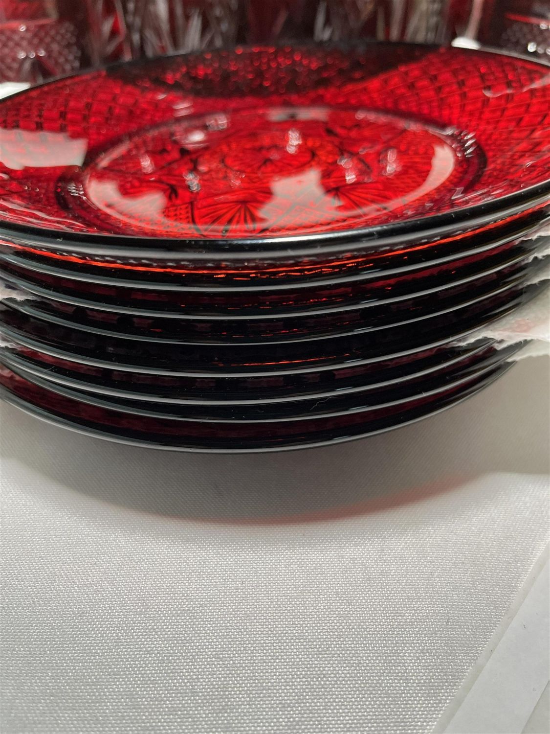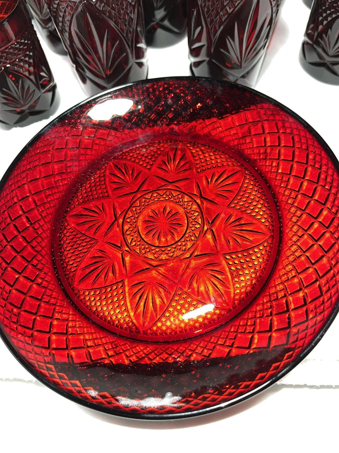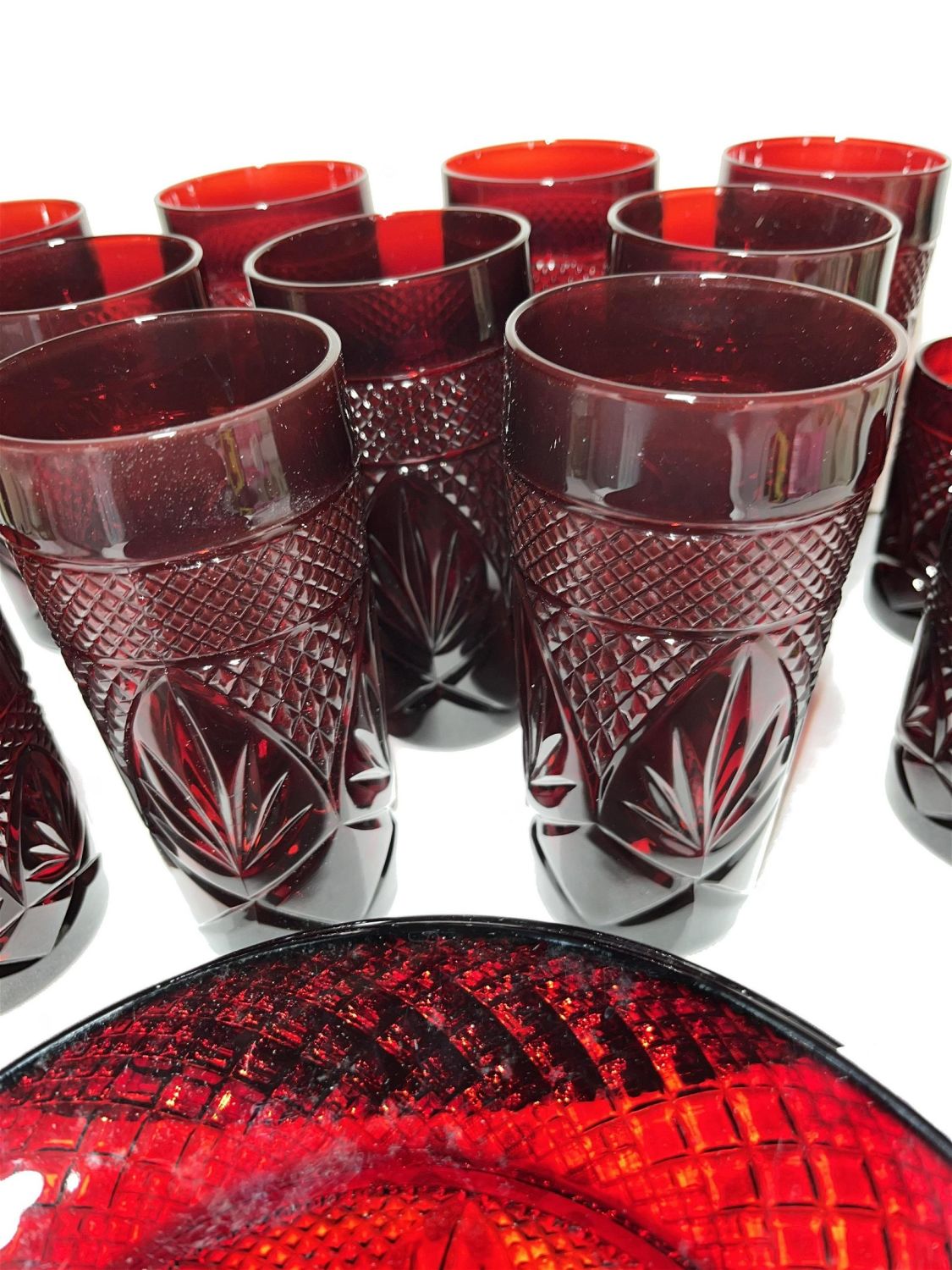 Lot 80: Ruby Glass Serving Set No In House shipping on this lot. This lot will be shipped through UPS
