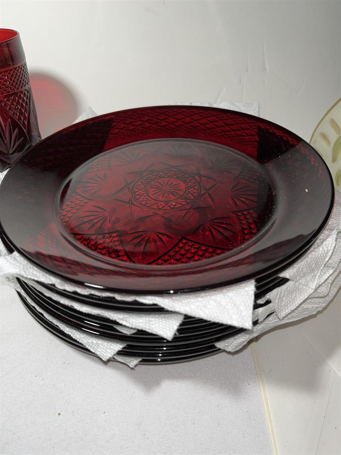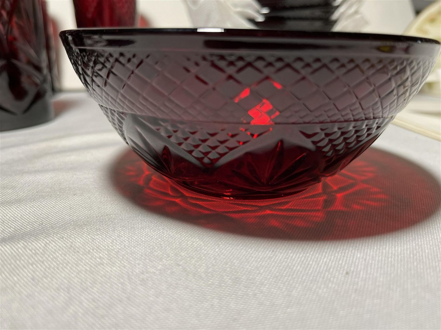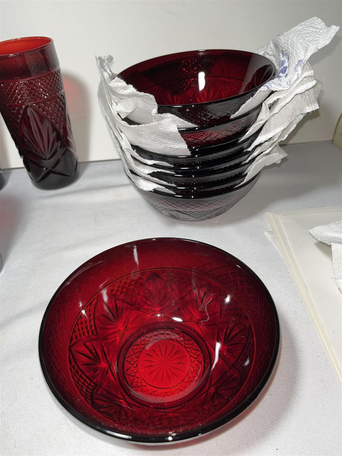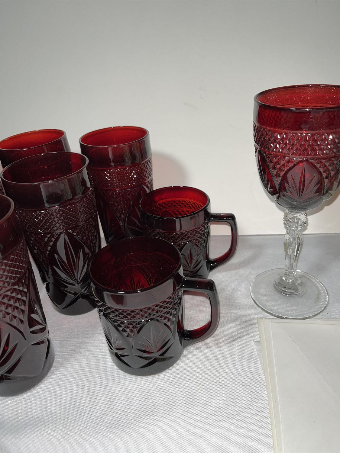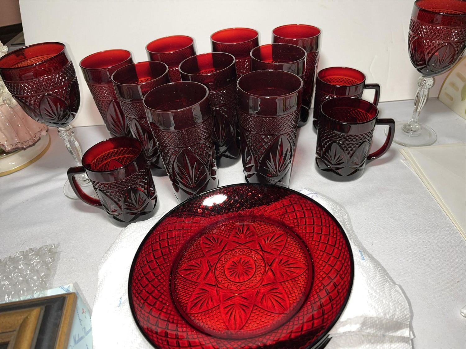 Lot 80: Ruby Glass Serving Set No In House shipping on this lot. This lot will be shipped through UPS