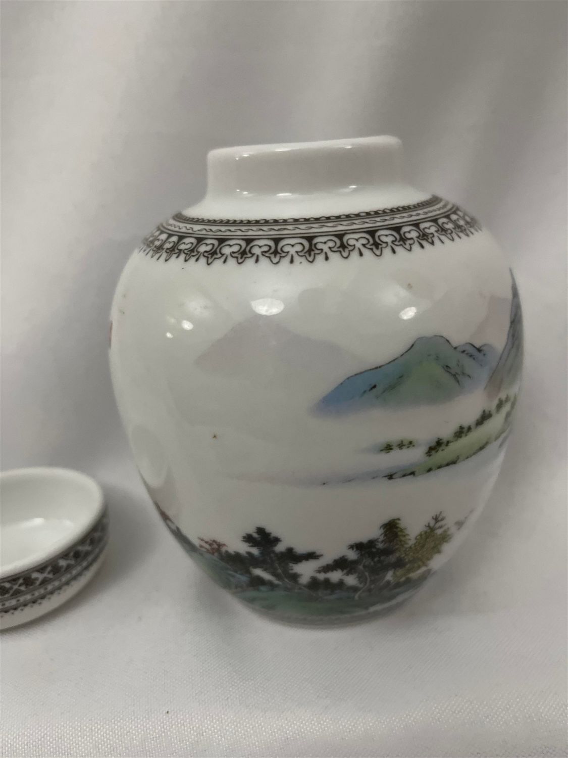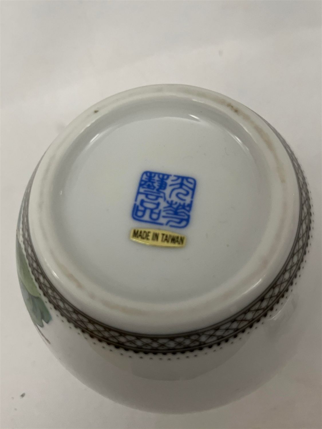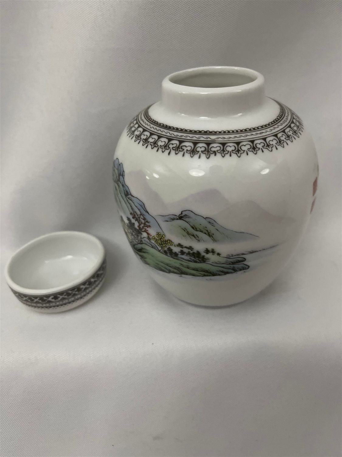 Pitcher measures 5 inches tall by 4 inches diameter, cup measuring 2 1/4 inches diameter