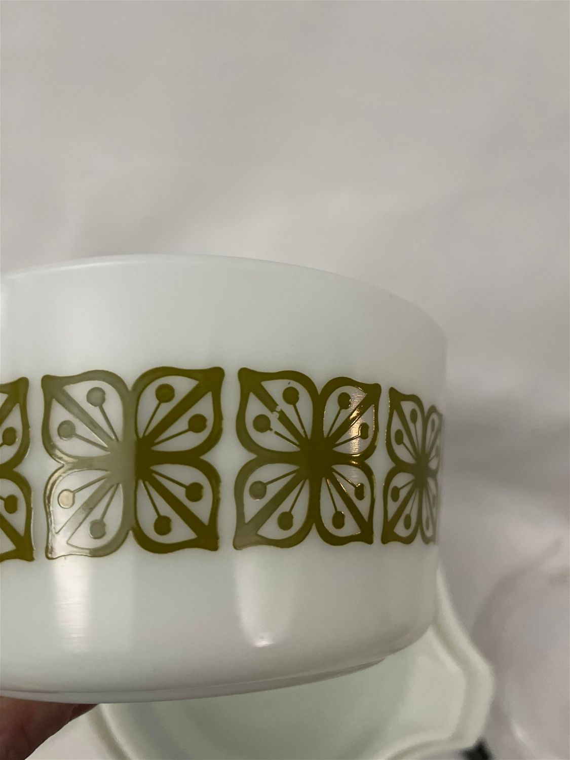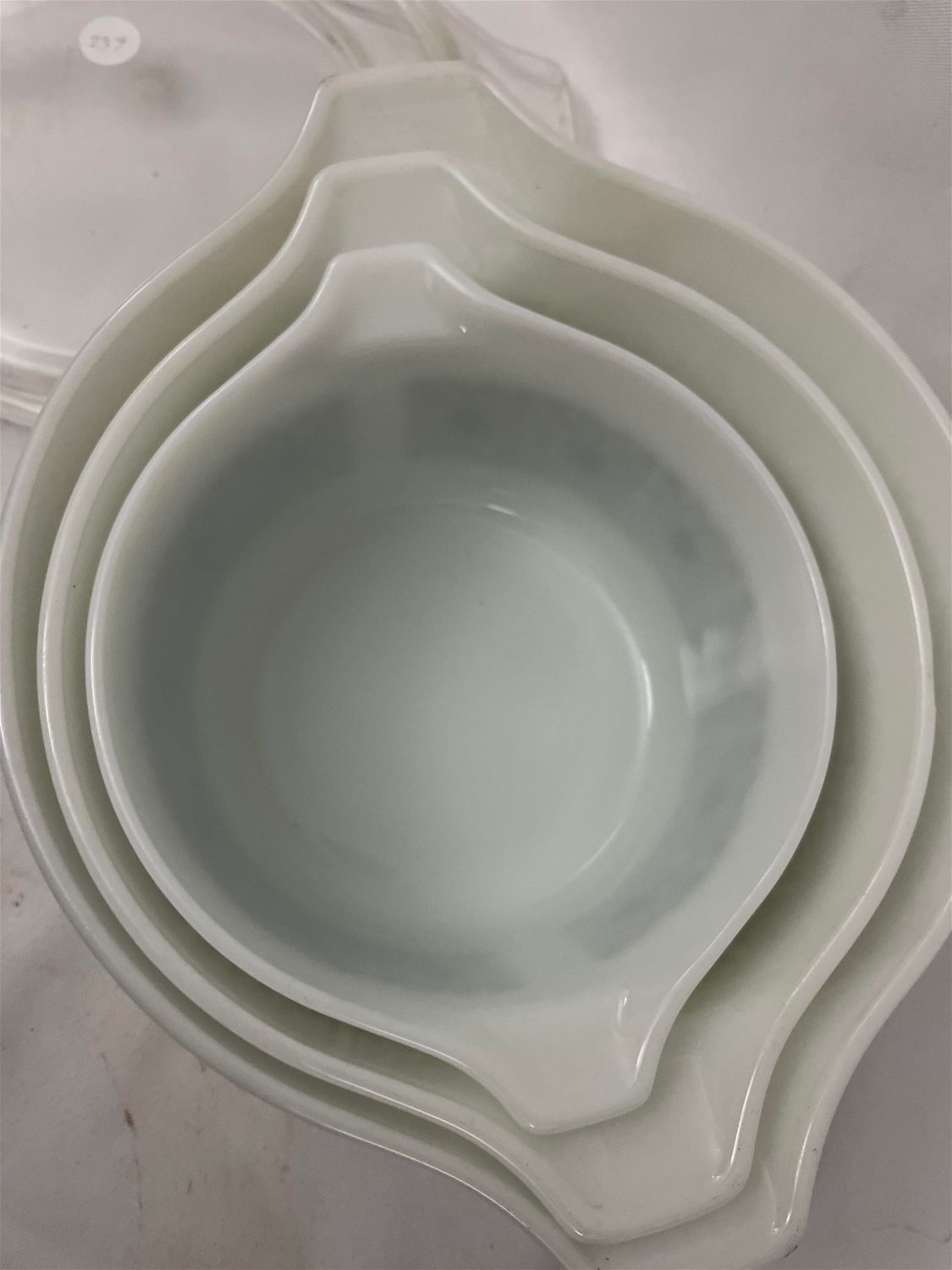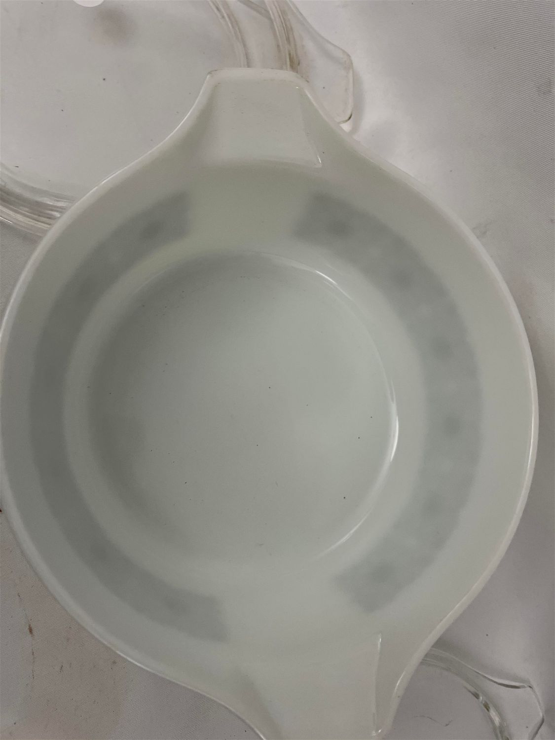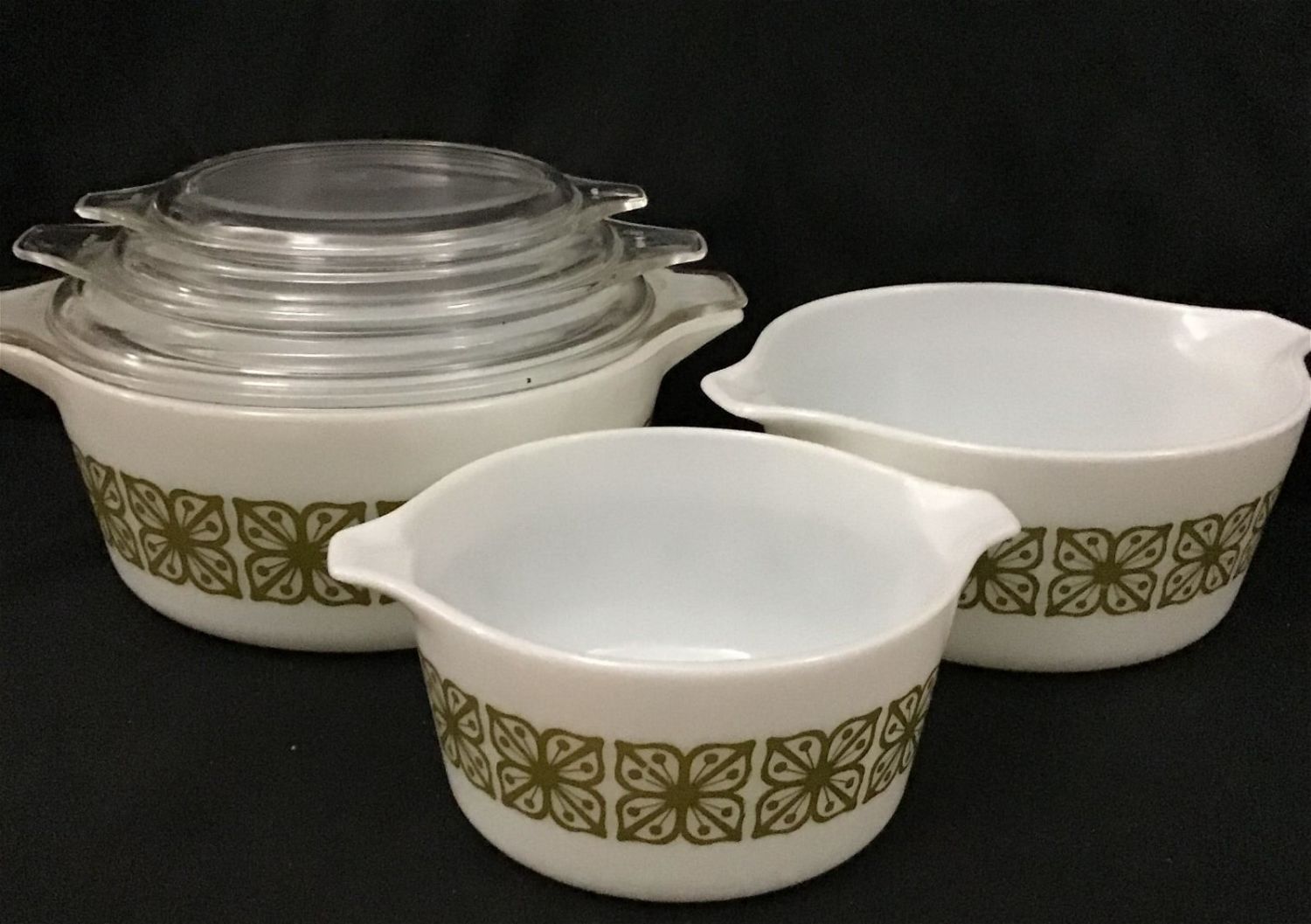 White w/ Green Pattern Bowls w/ Clear Lids.