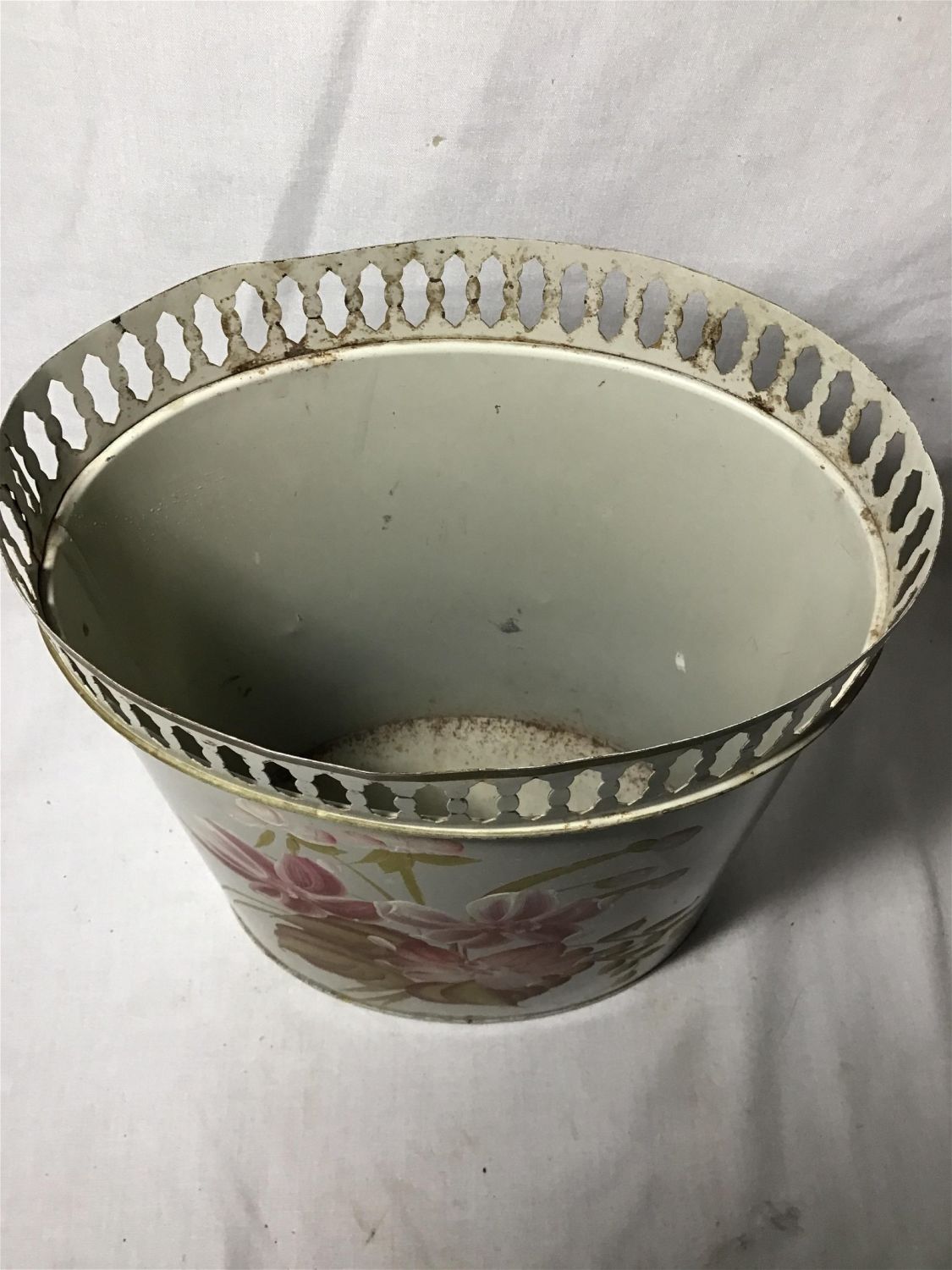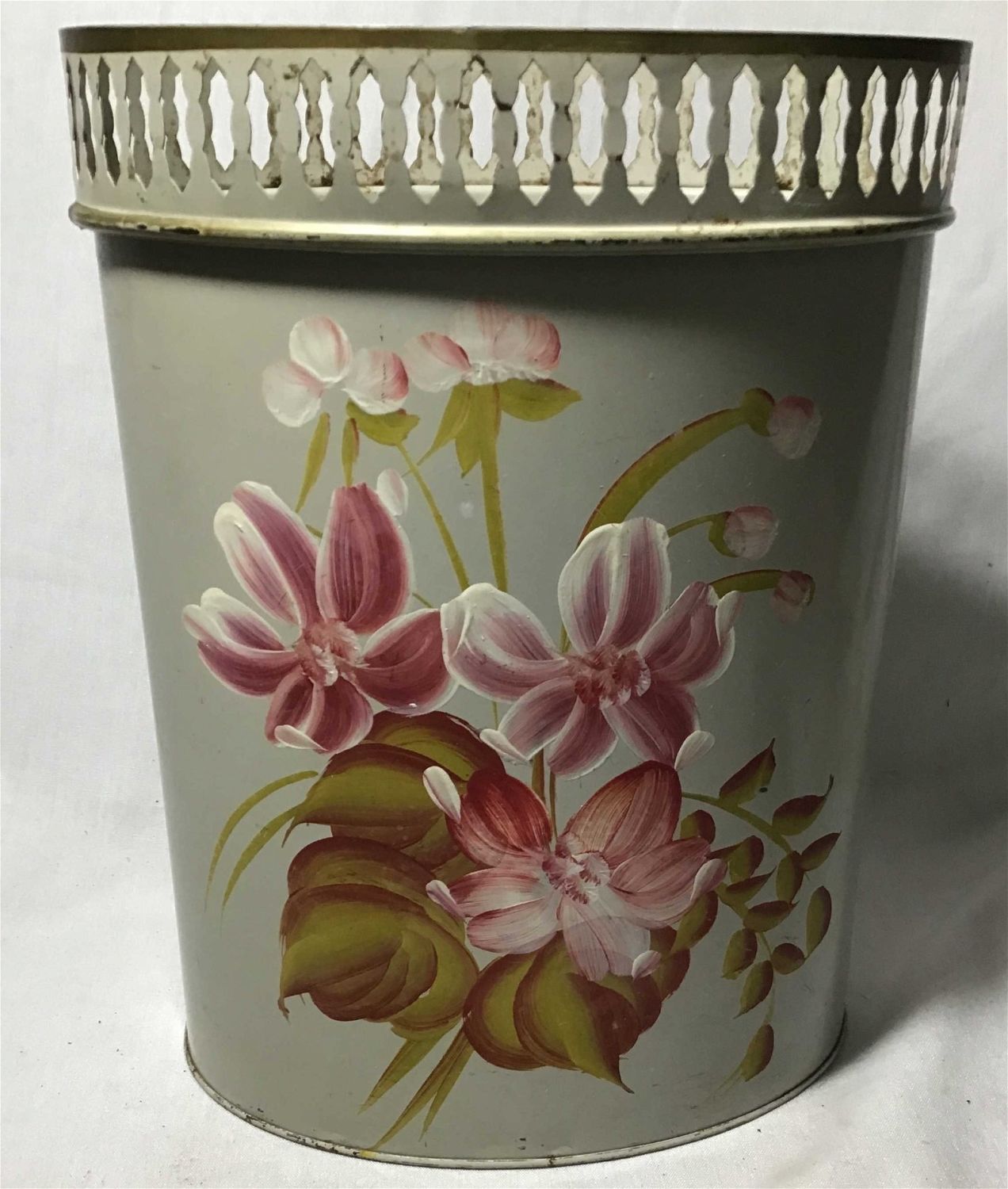With hand-painted floral scene Measures 13 1/4 inches high by 9 1/2 inches wide