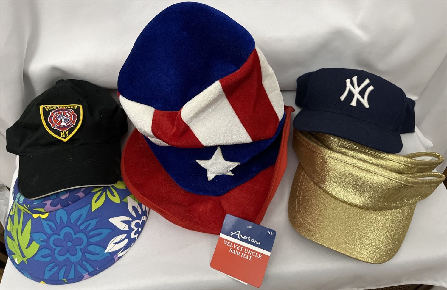 Uncle Sam Large Hat, NY Yankees, Fire Department & Sun Visors