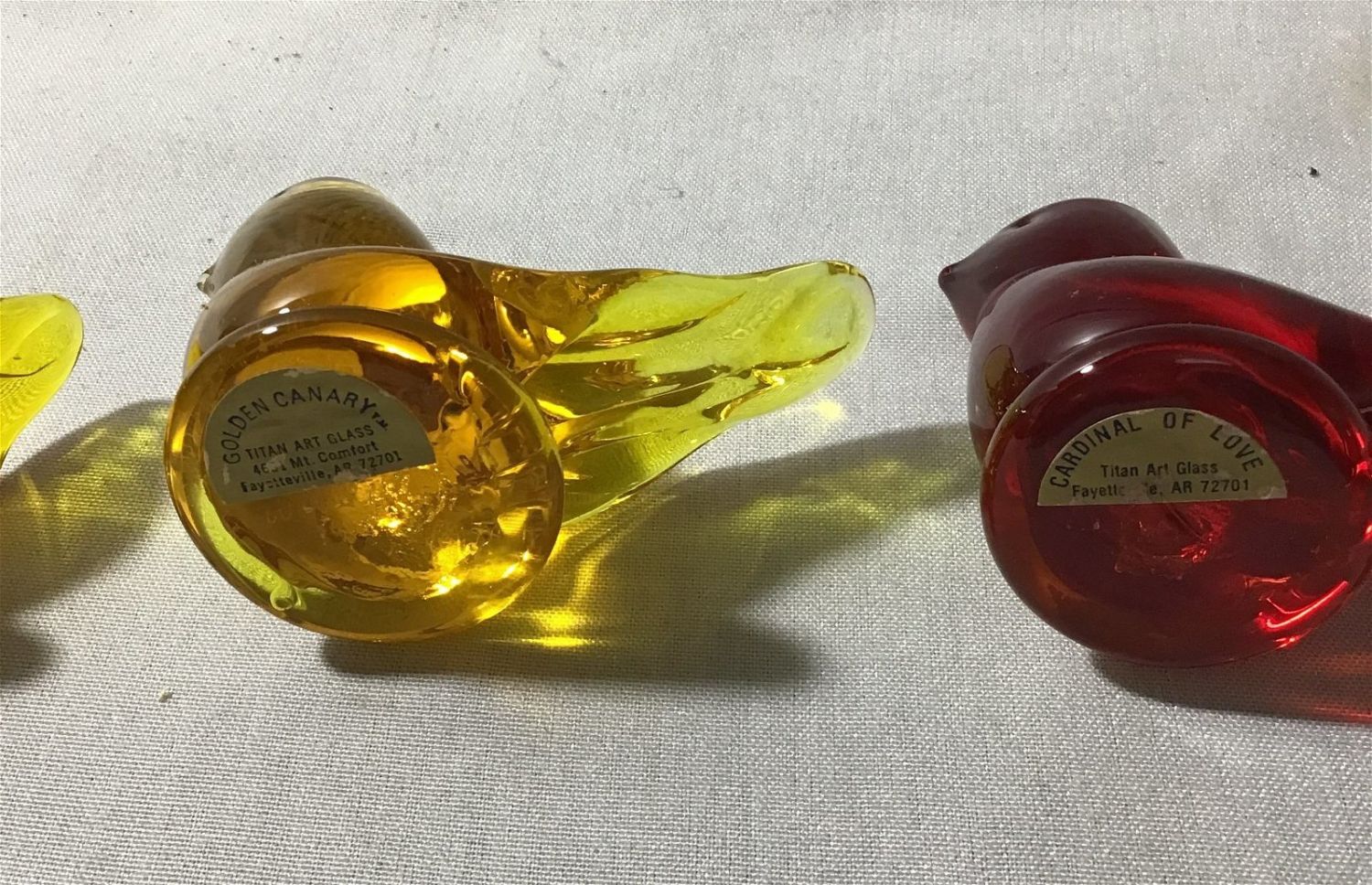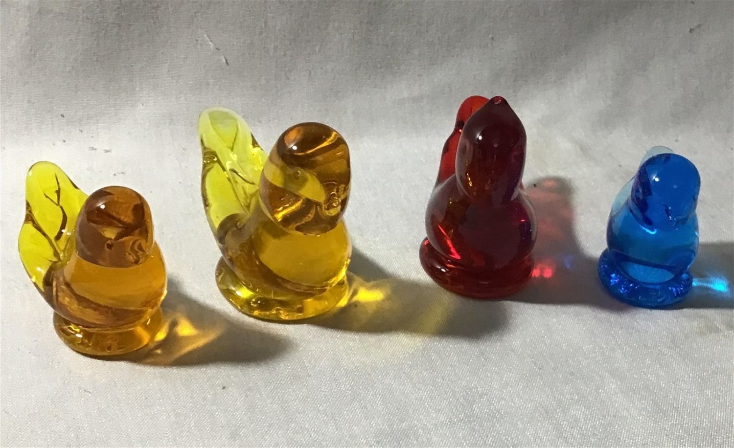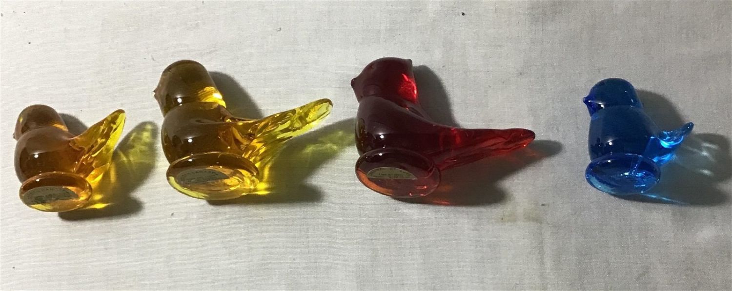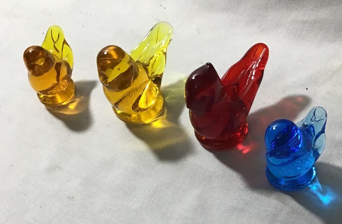 2 Gold Canaries, Cardinal of Love, and a bluebird solid glass