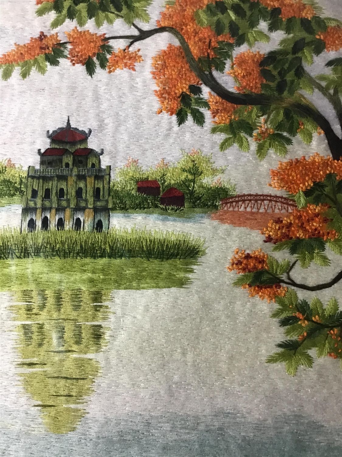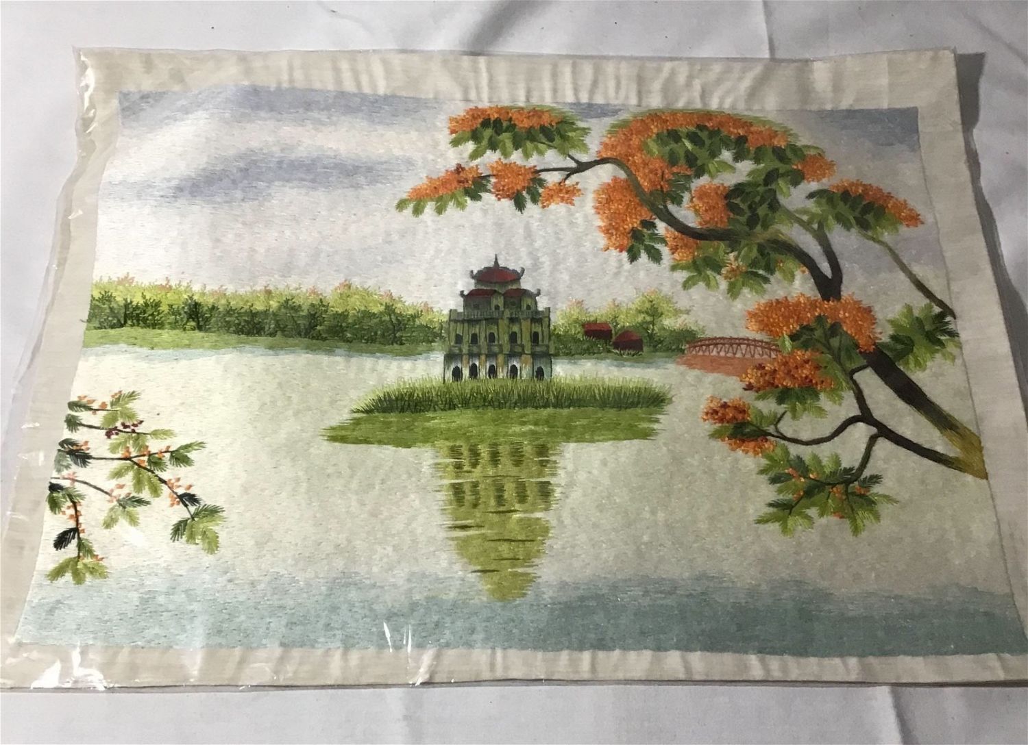 lovely scenery, Ready for a frame, Measures 21 x 15 1/2 very striking, Oriental