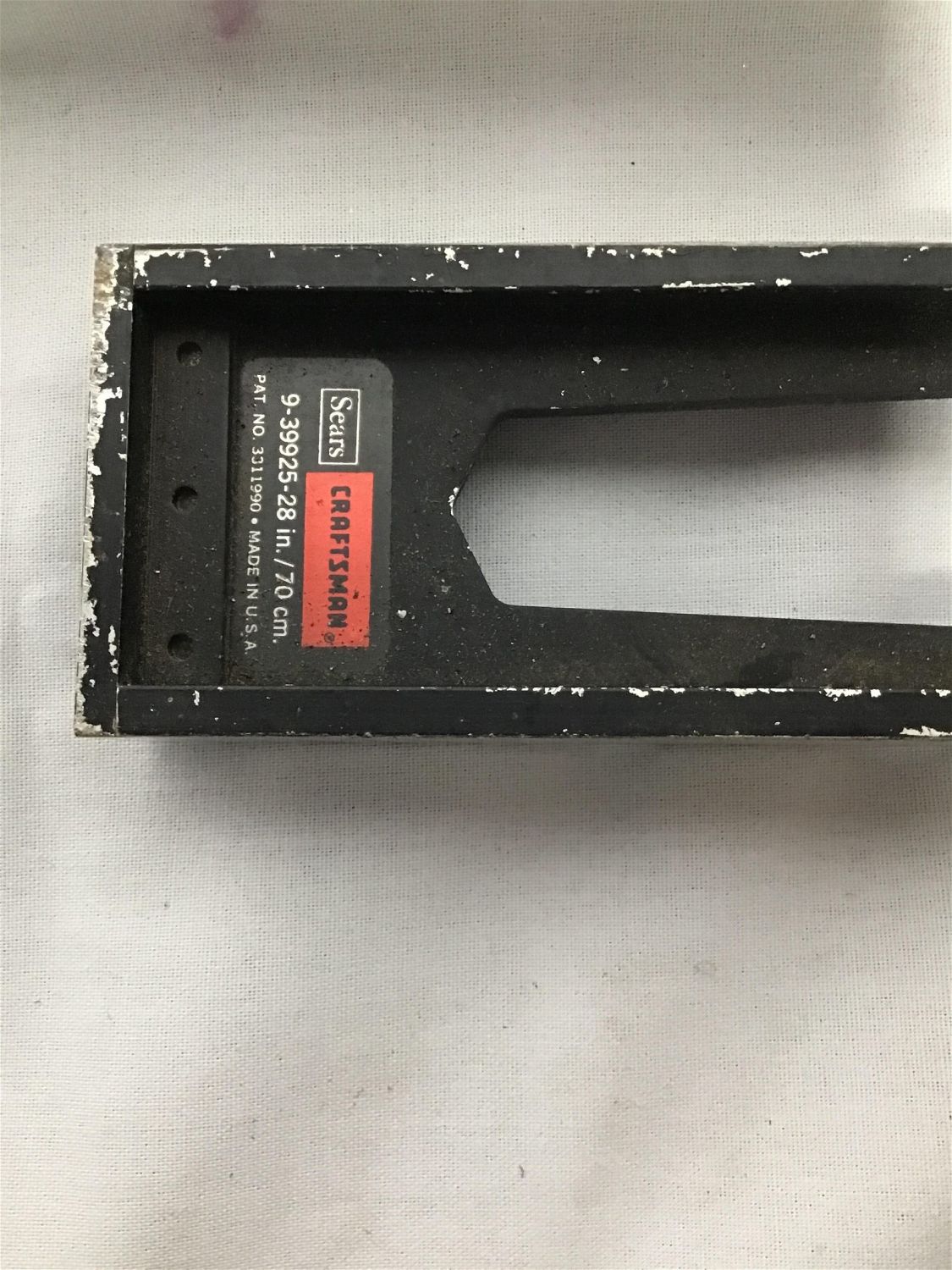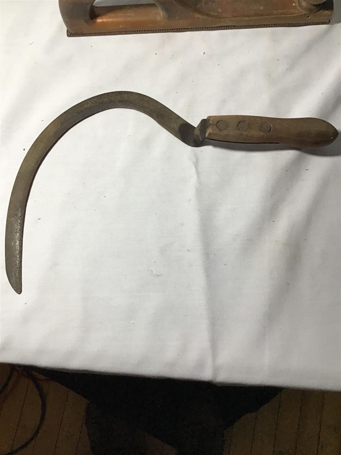 14 inch wood handle rasp file also a 28 inch seers, craftsman level and One antique hand sickle