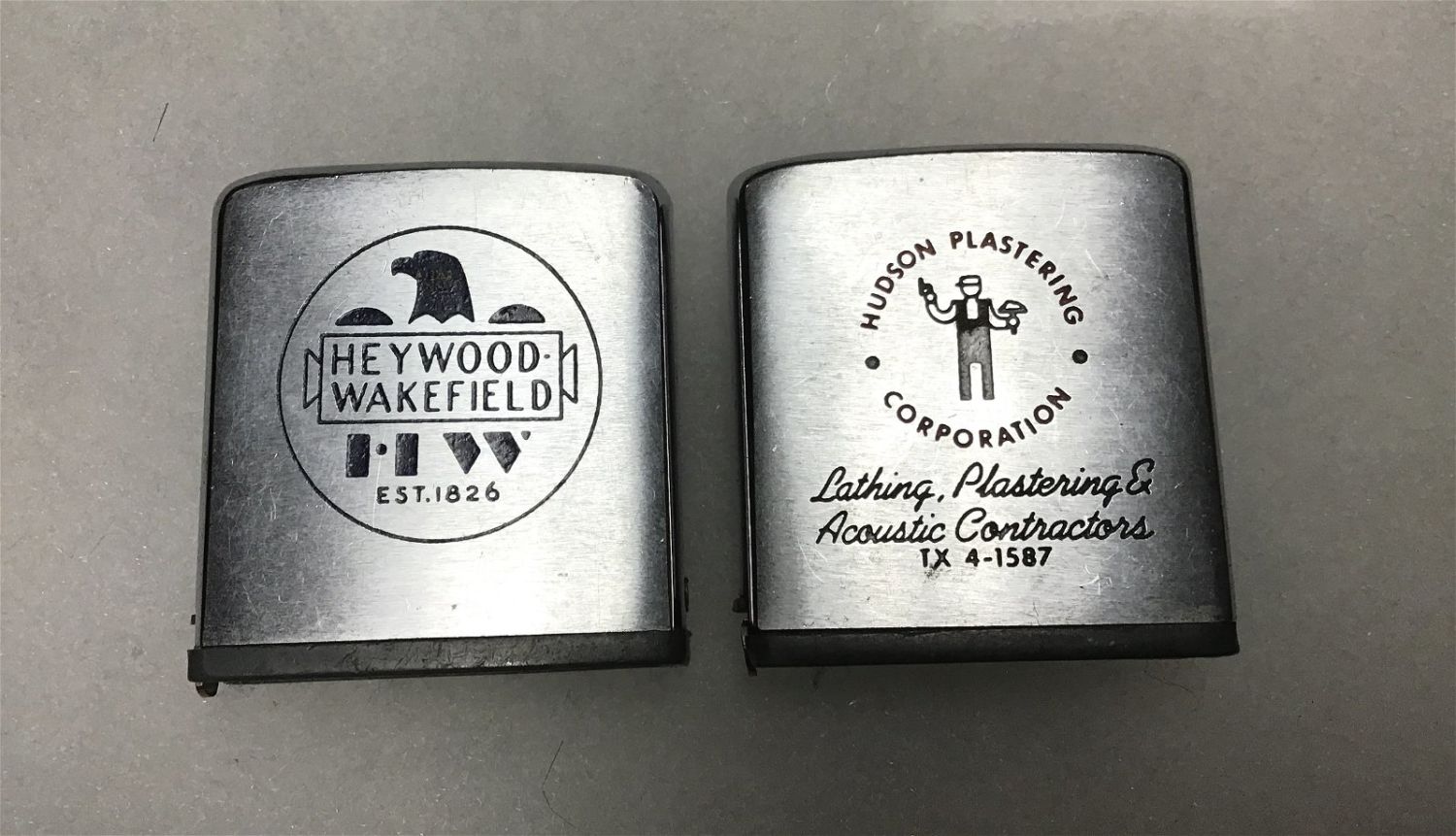 Heywood Wakefield & Hudson Plastering Corporation, each measures approximately 1.5 inches square