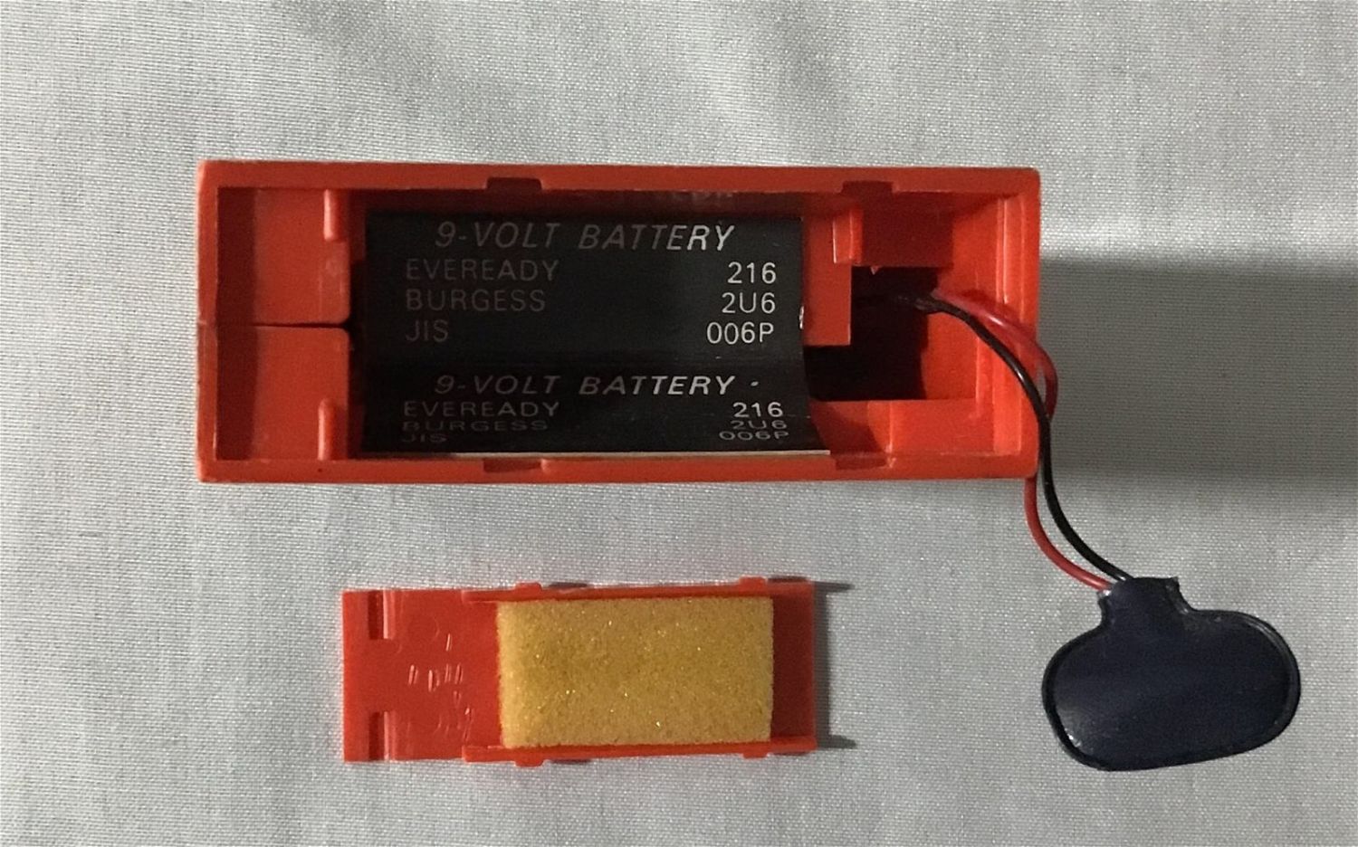 requires two batteries, measures 4 3/4" x 3 1/2"