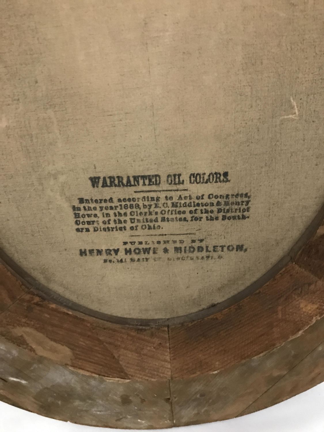 Henry Howe & Middleton, Hung in the Clerk’s Office in the Southern DIstrict of Ohio, Measures 22 by 18 by 1 3/4 inches