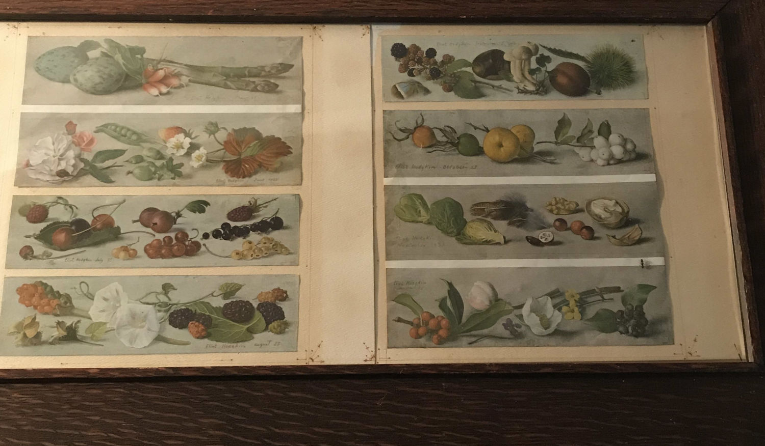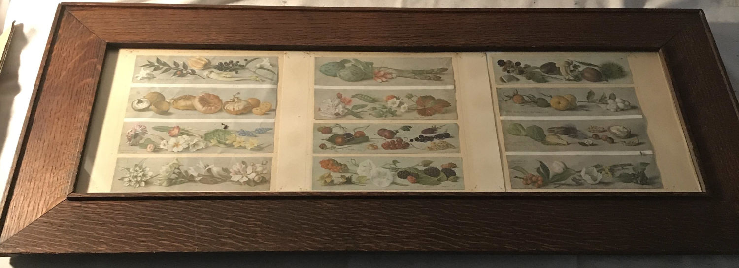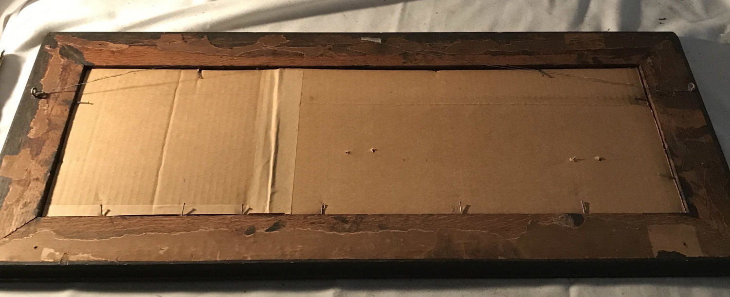 frame is 3 inches wide with glass. Total measurement is 33 1/4 x 14 1/2.