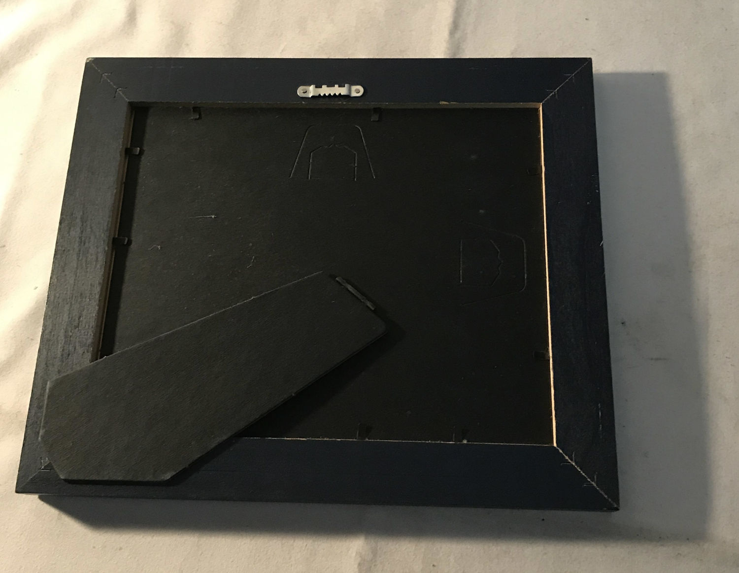 wood blue wood frame and glass measures 12 1/2 x 10 1/2 inches