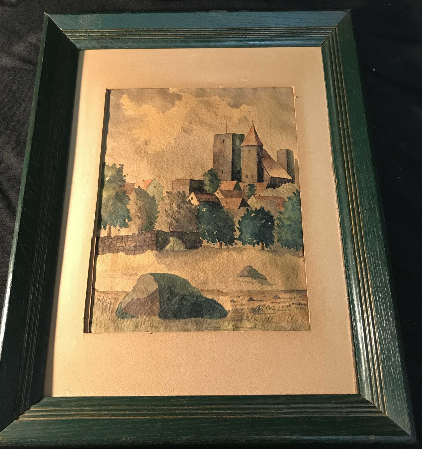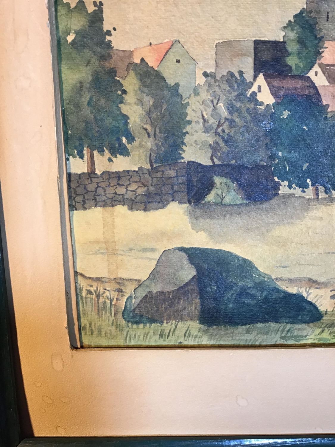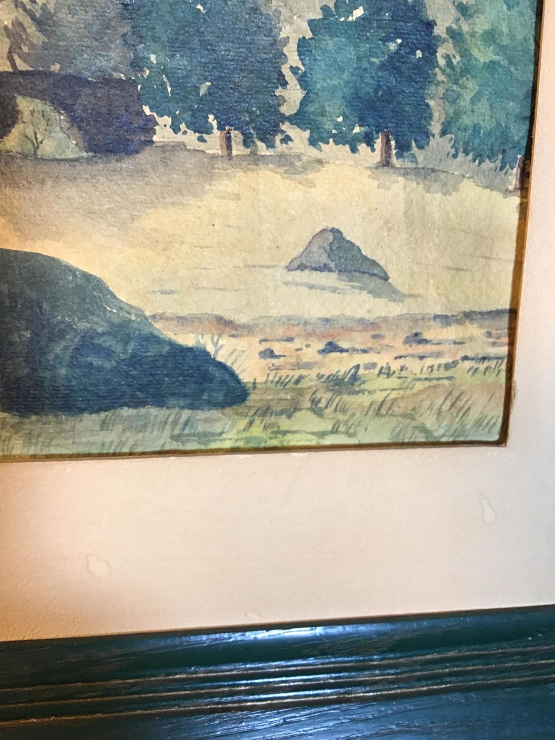 Has Green Wood frame measuring 14 3/4 x 18 3/4 inches