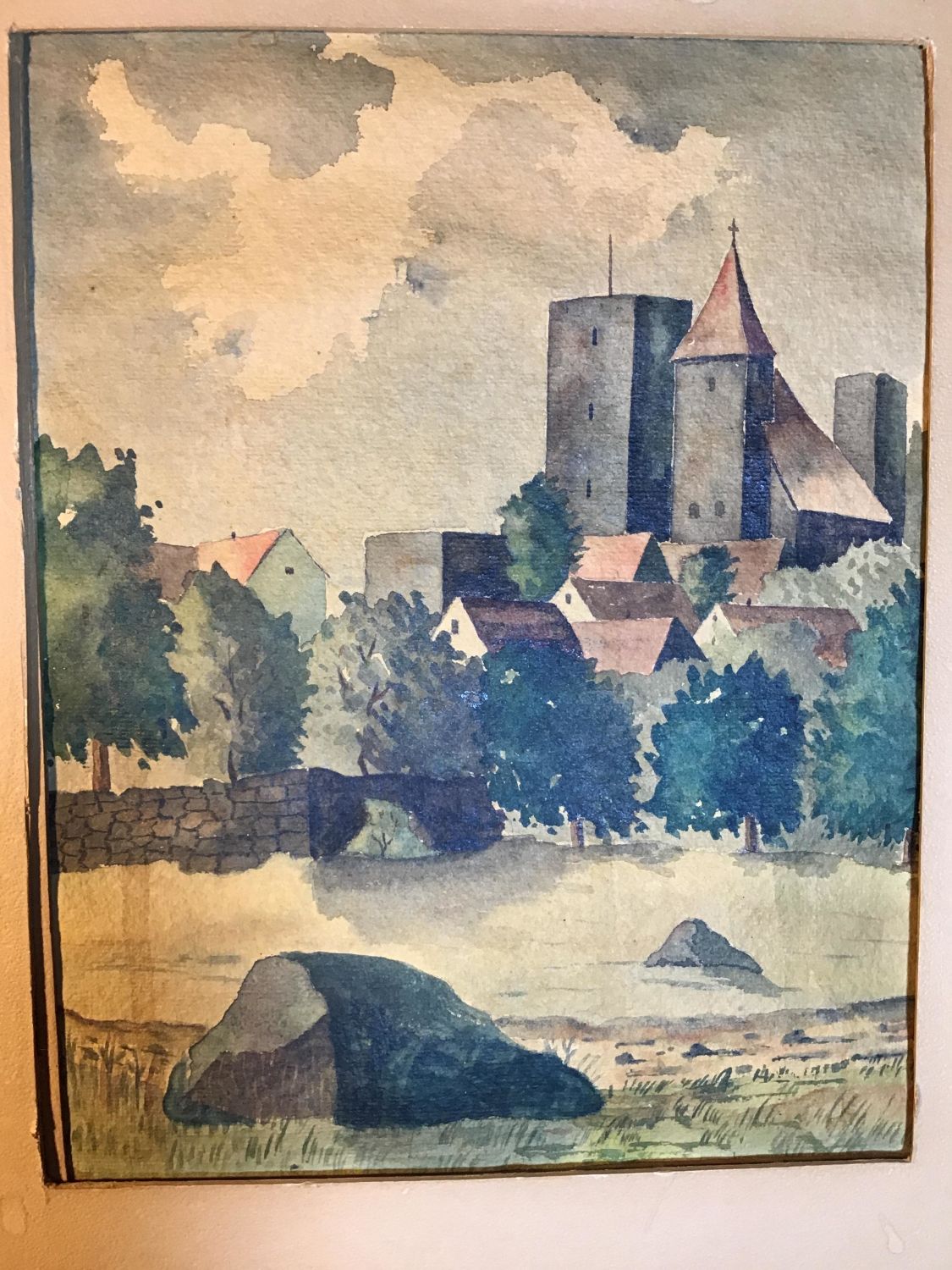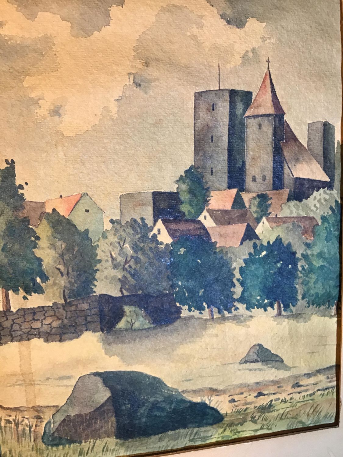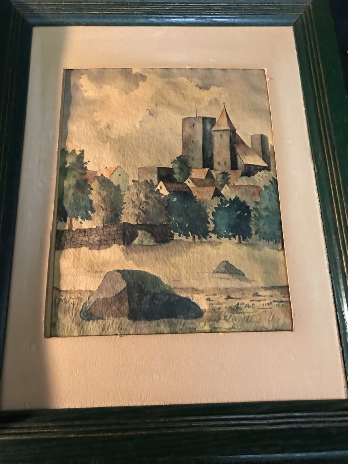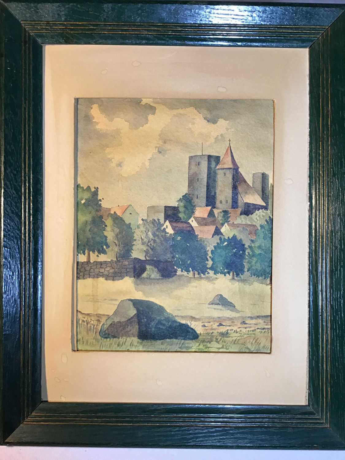 Has Green Wood frame measuring 14 3/4 x 18 3/4 inches