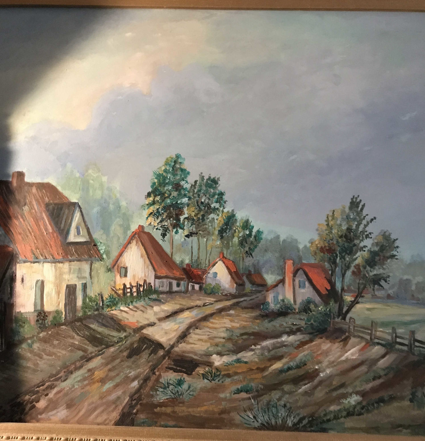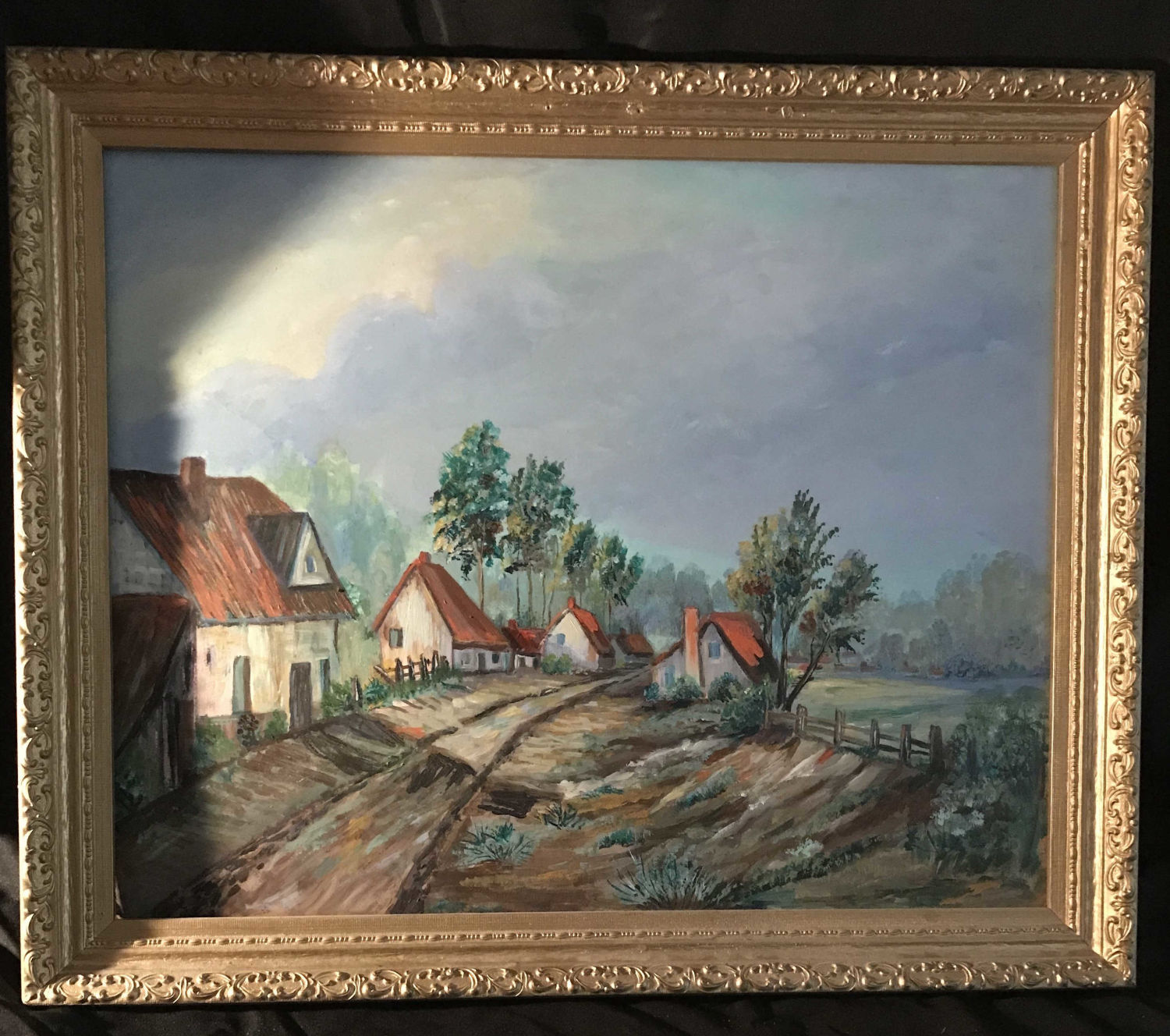 Gold wooden frame measures 34 x 28 1/2 inches