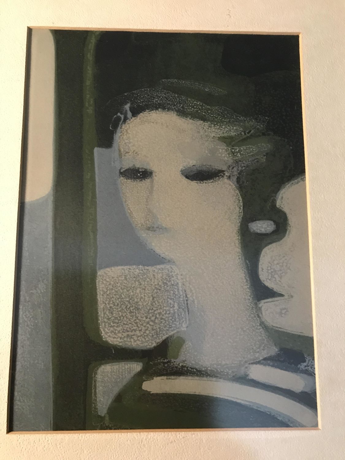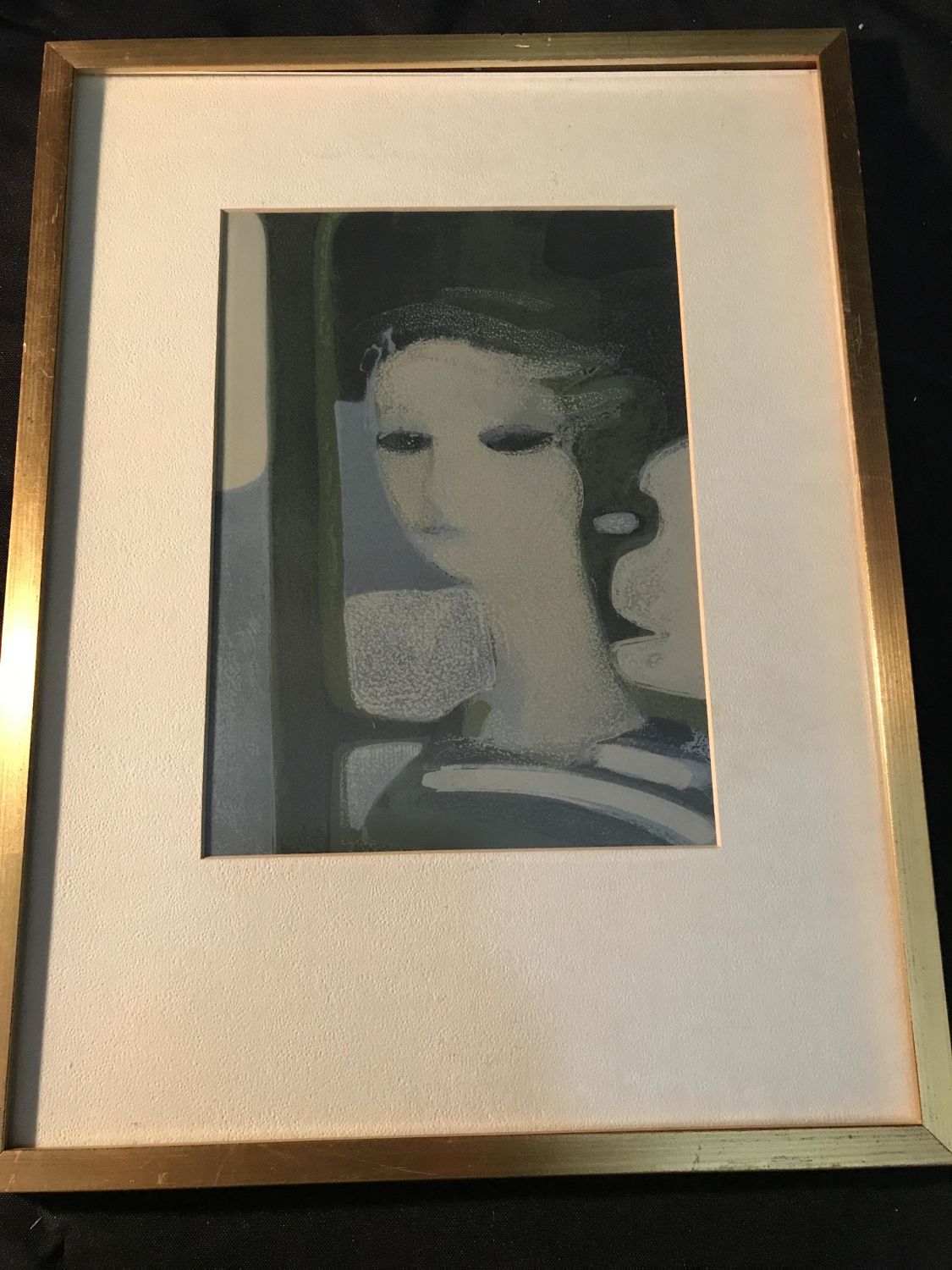 Blue Portrait, gold metal frame under glass, frame measures 12 3/4 x 16 3/4 inches