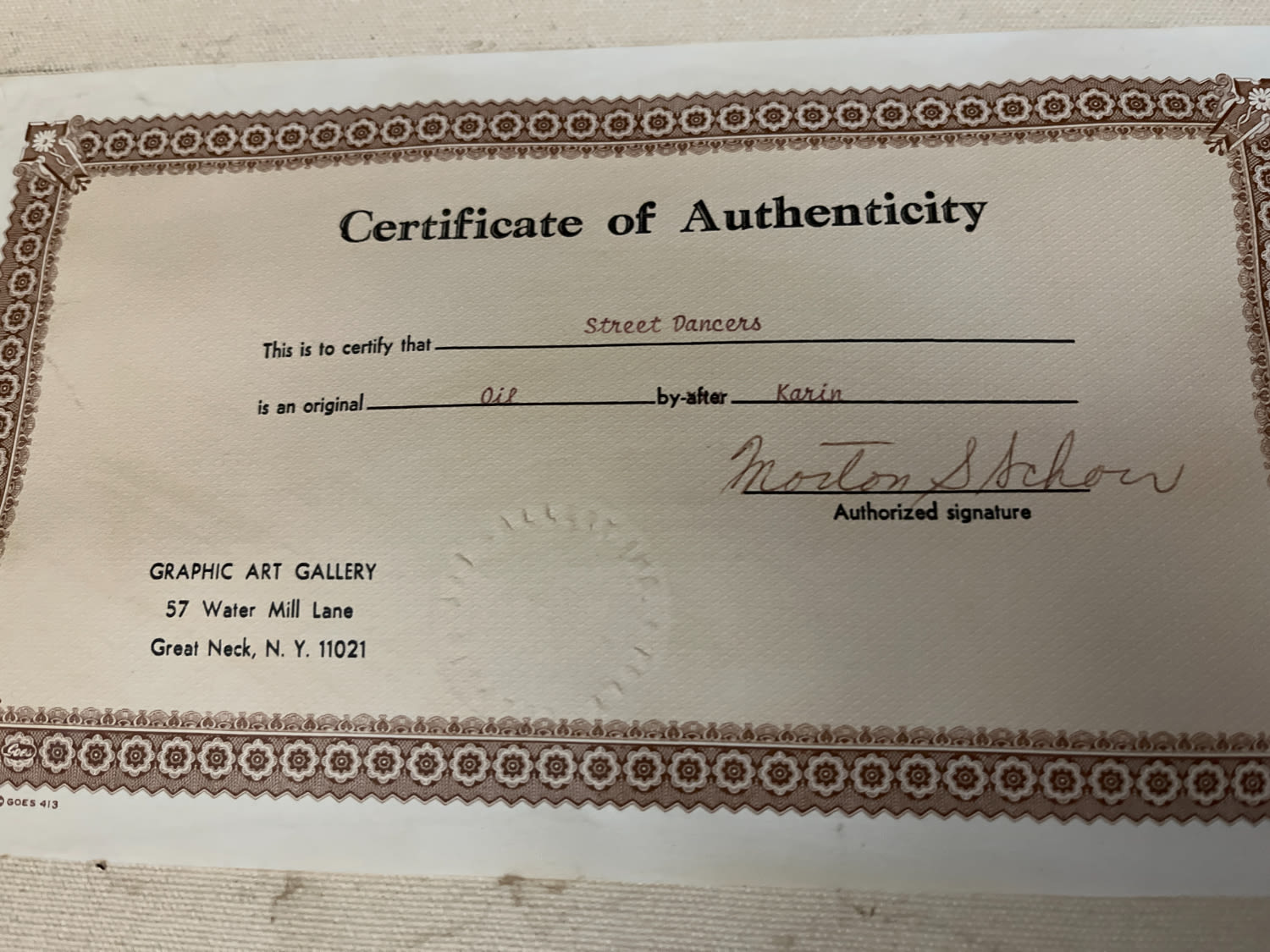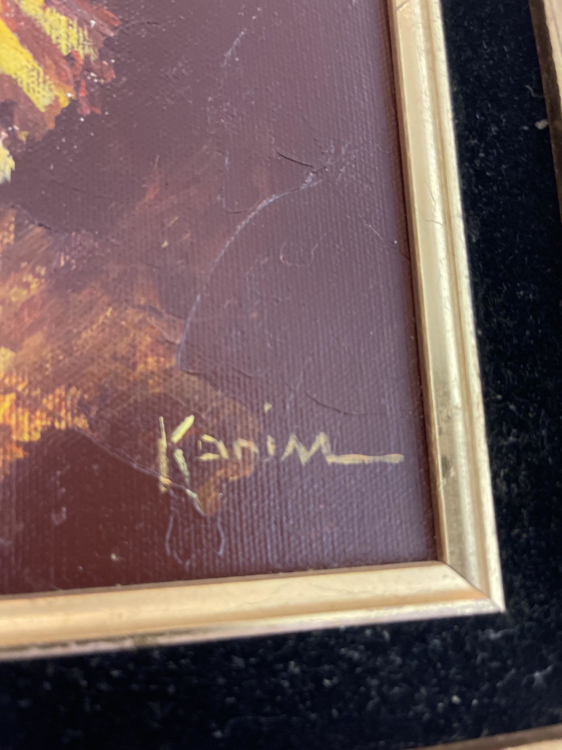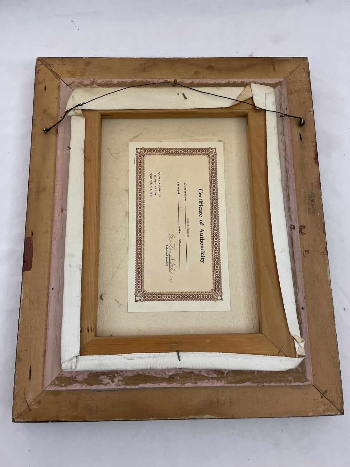 Certificate of authenticity, Measures frame H 21 1/4 inches x L 17 1/4 inches, Canvas measures height of 16 length of 12 inches