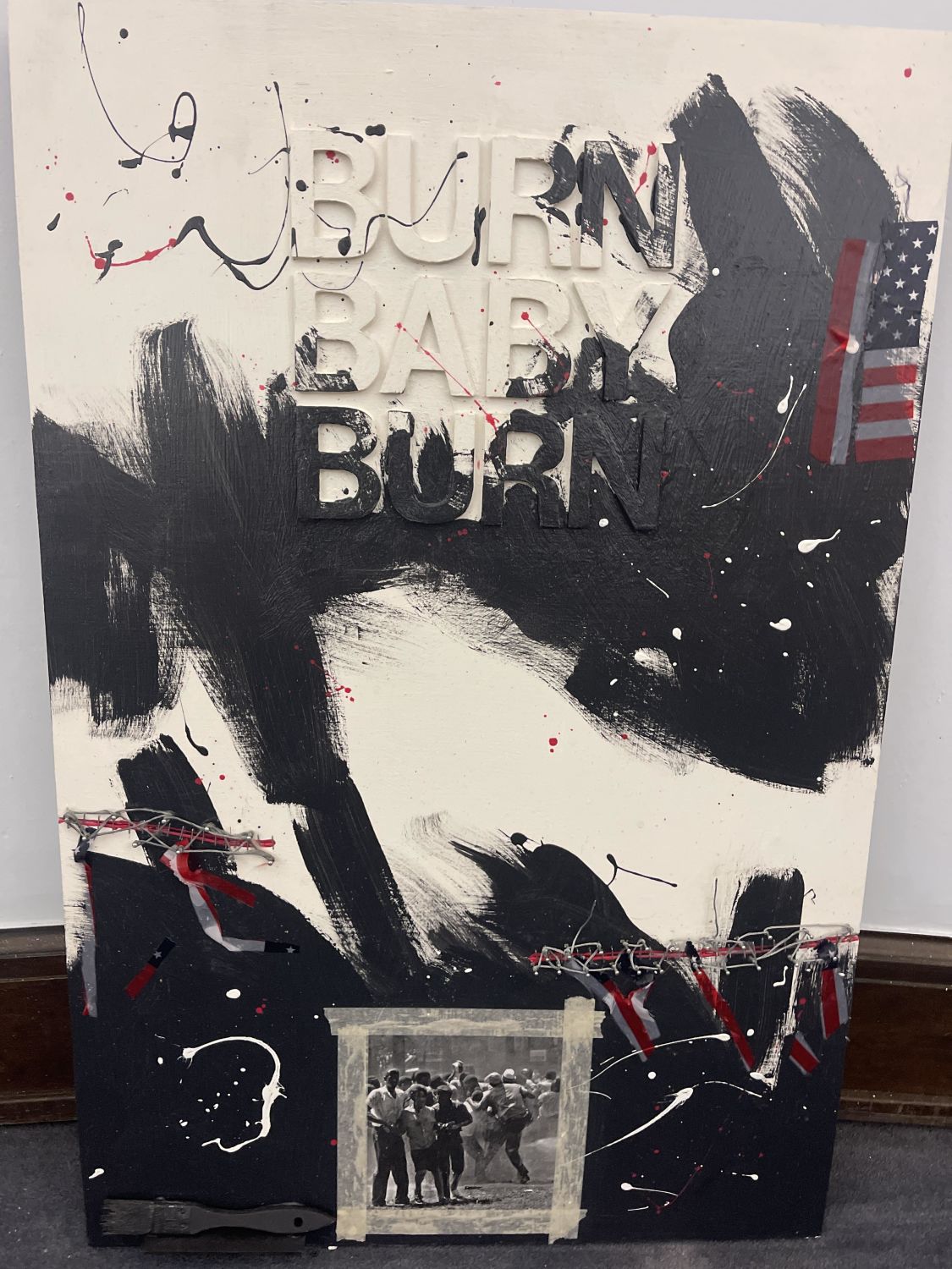 Lot 228: J. Glaser Original Burn Baby Burn Mix Media