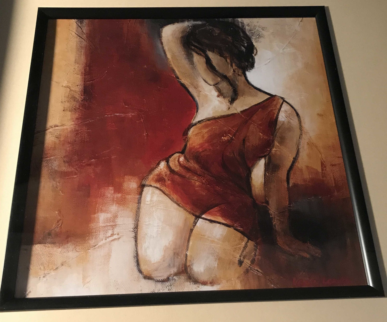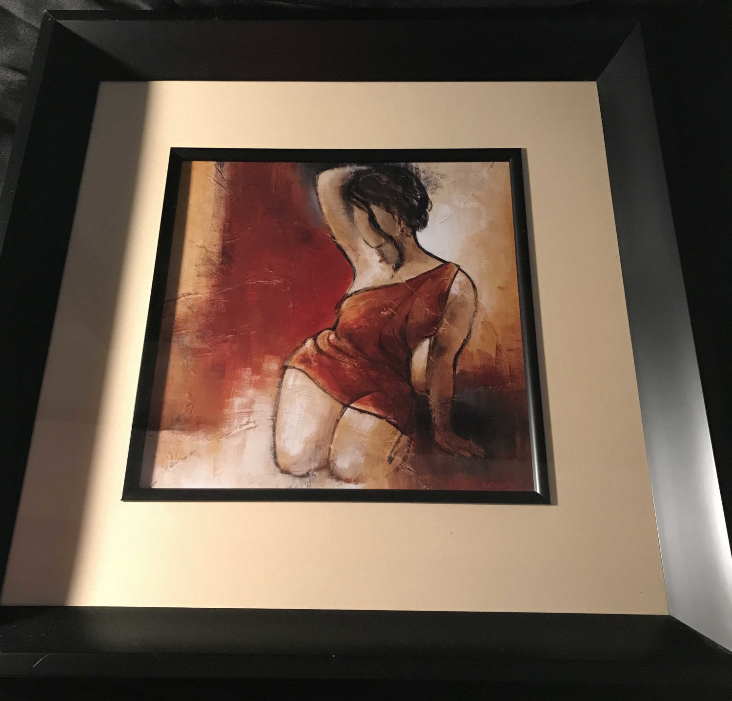 Black resin frame with glass measures 21 x 21 inches