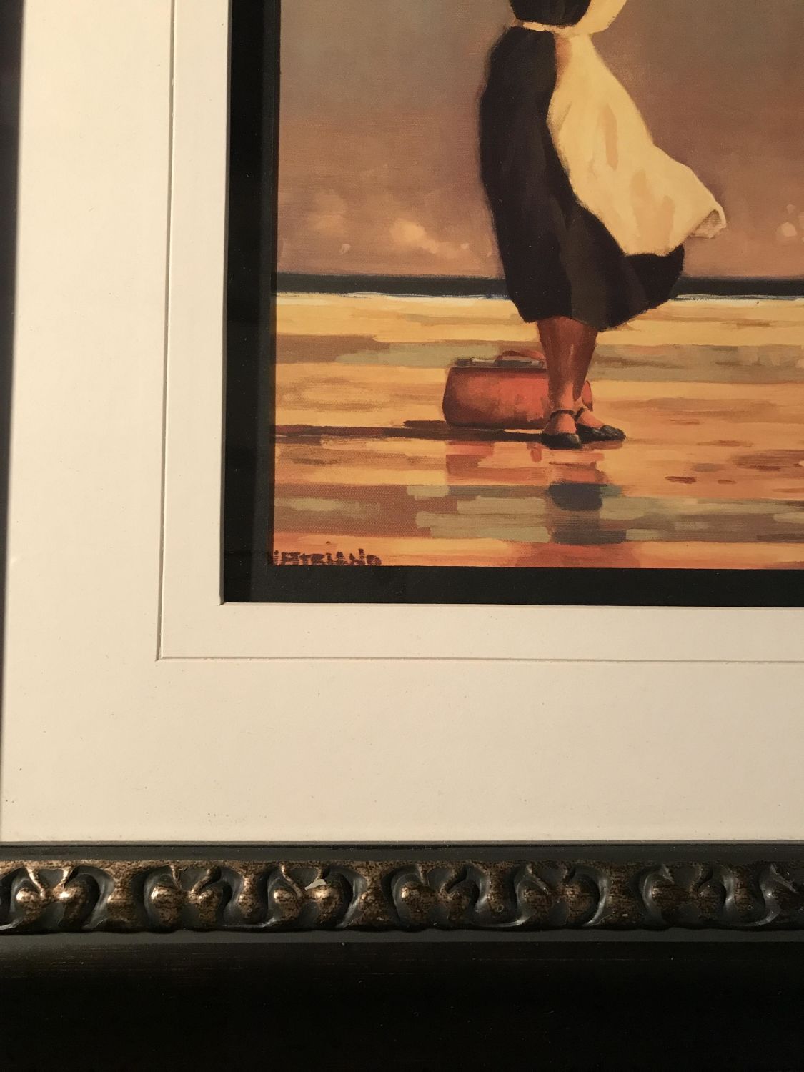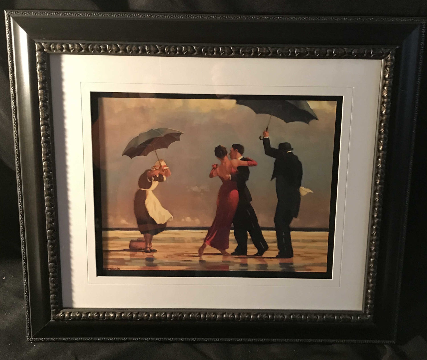 the beach with umbrellas Palli frame with glass measures 22 3/4 x 20 inches