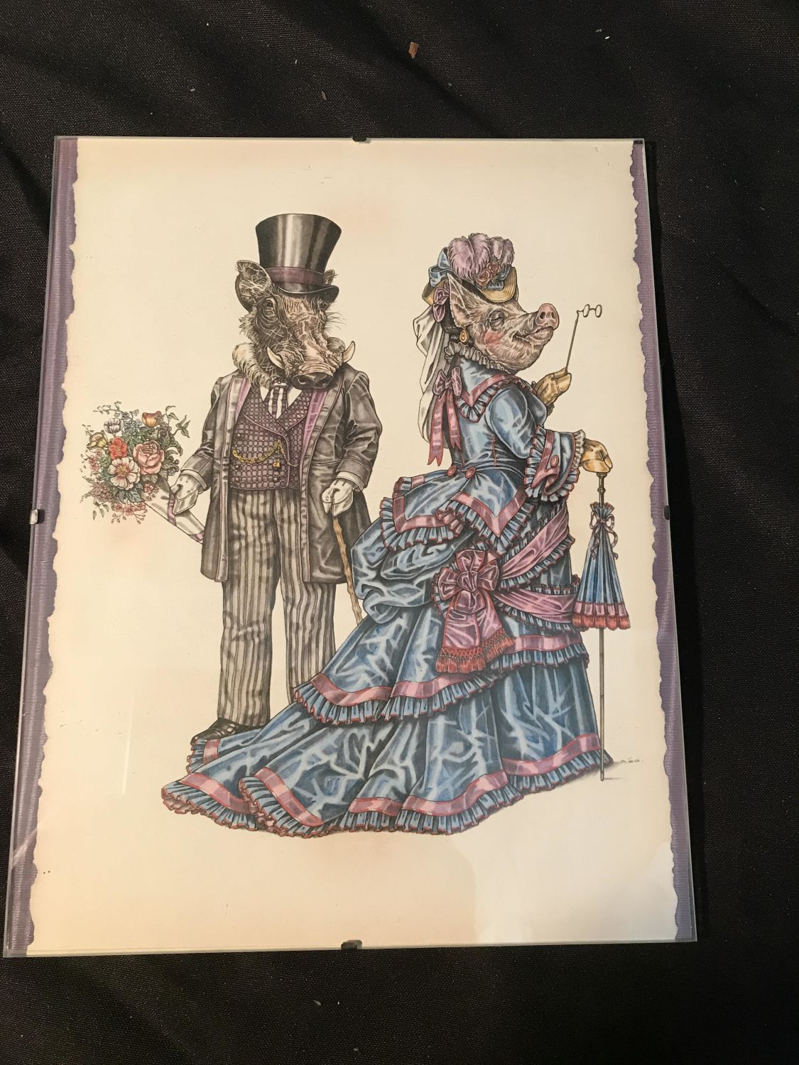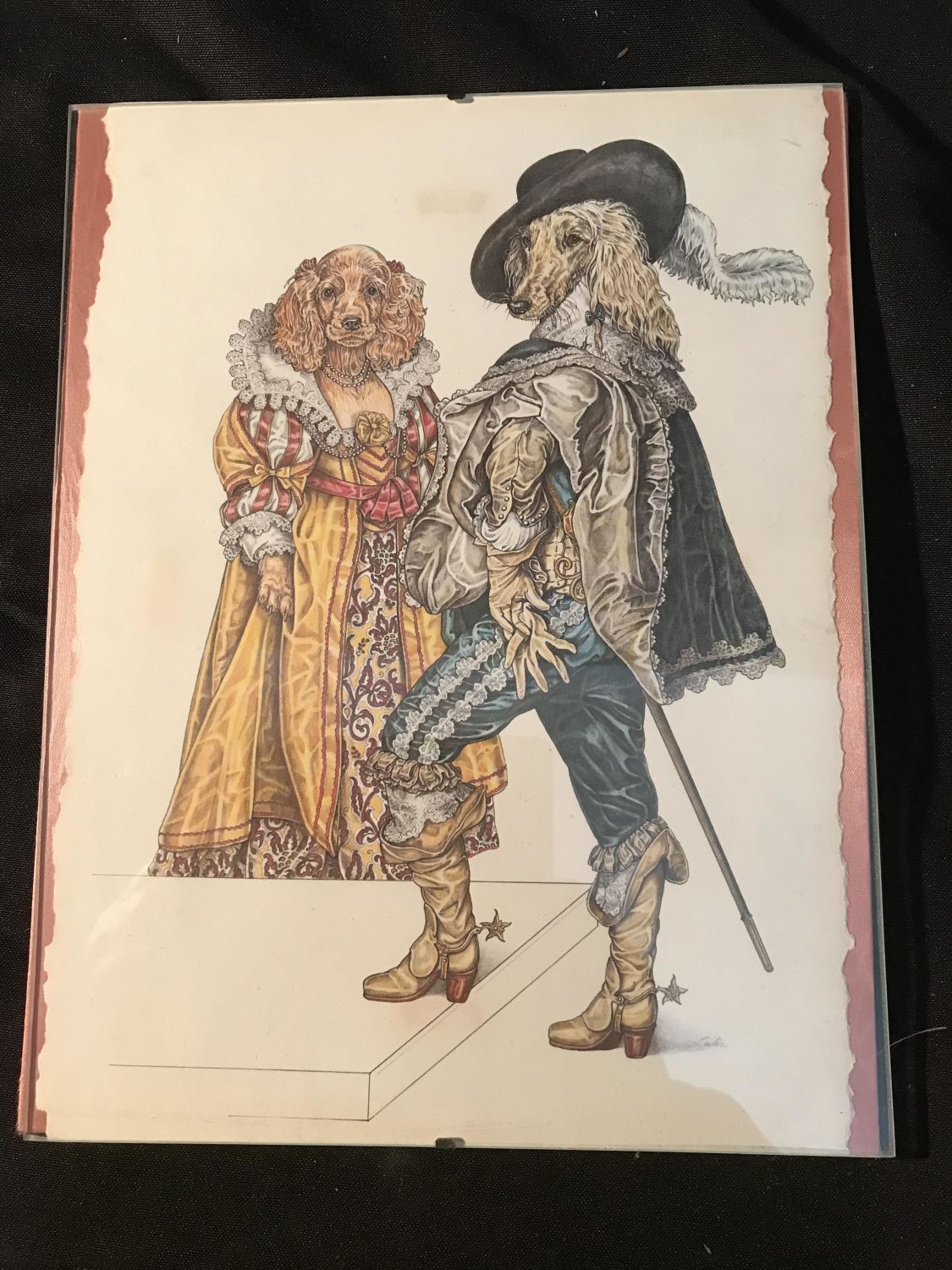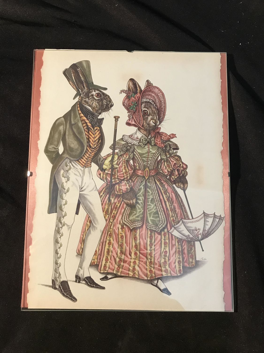 No frame under plexiglass measures 11 x 8 inches With two other pictures, dogs, and rabbits, dressed up