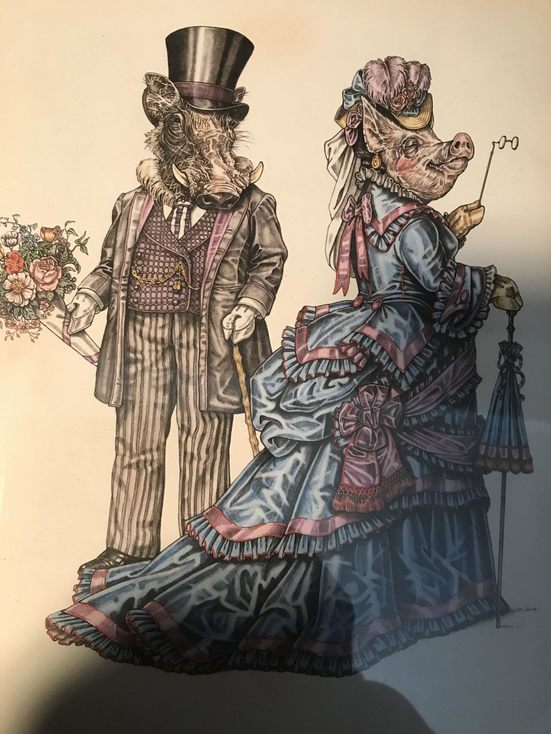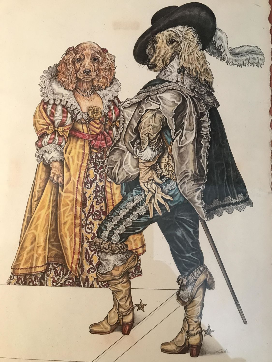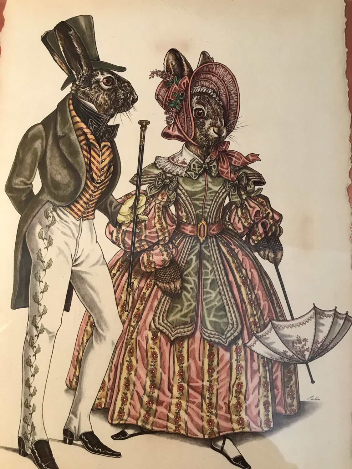 No frame under plexiglass measures 11 x 8 inches With two other pictures, dogs, and rabbits, dressed up