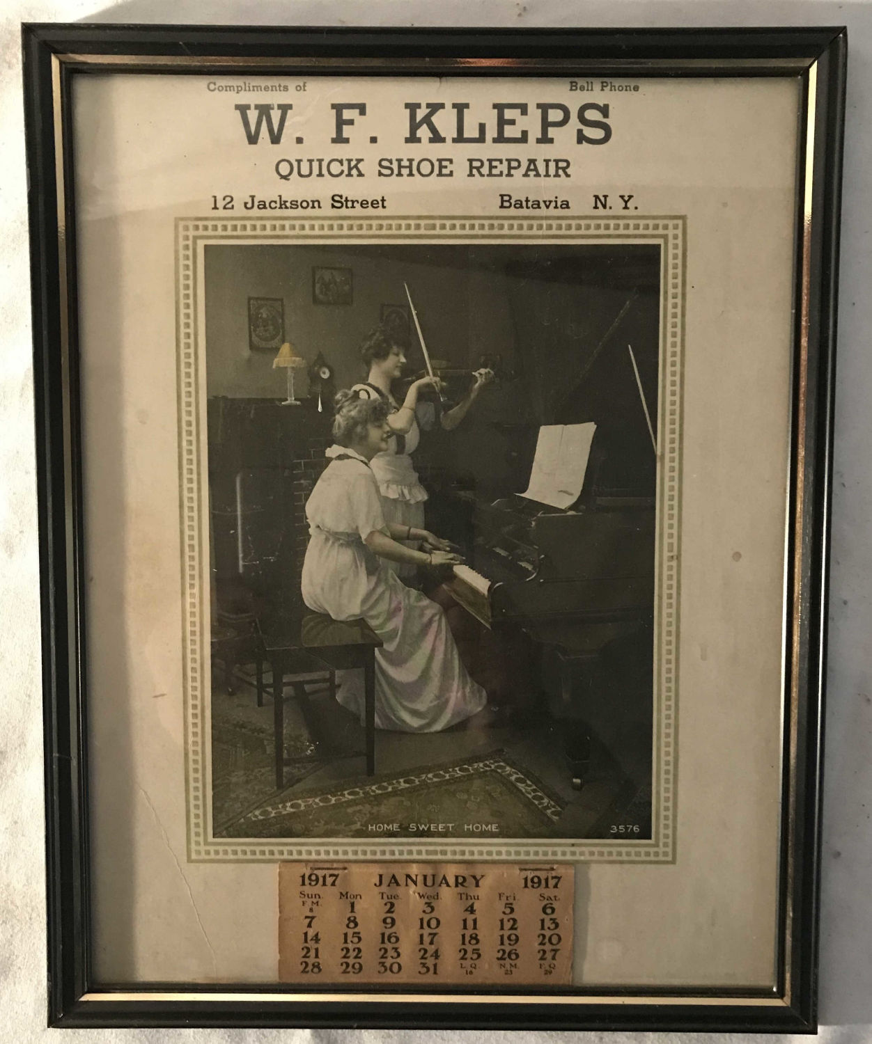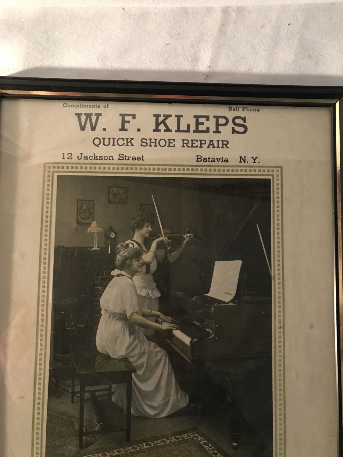black and white framed advertising, Metal frame with glass measuring 11 x 14 inches