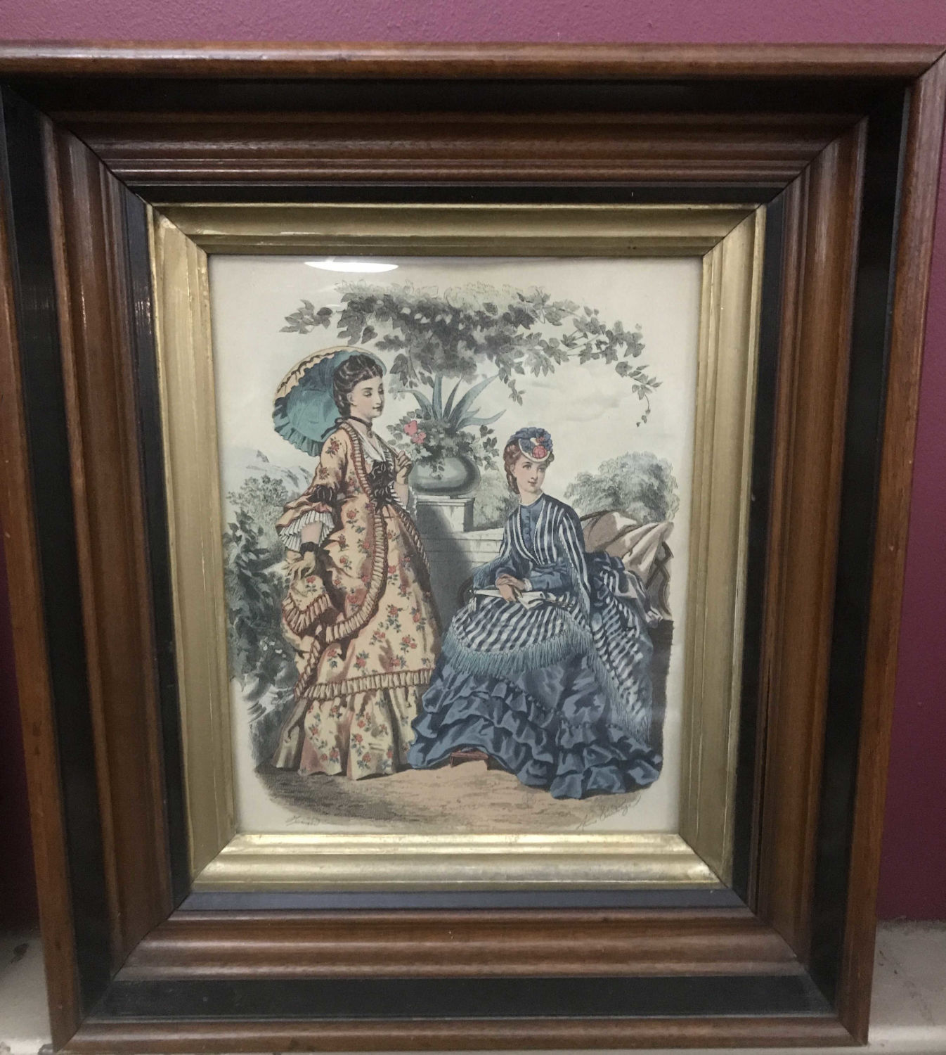 Victorian Ladies, Framed under glass, Frame measures 15×13 inches