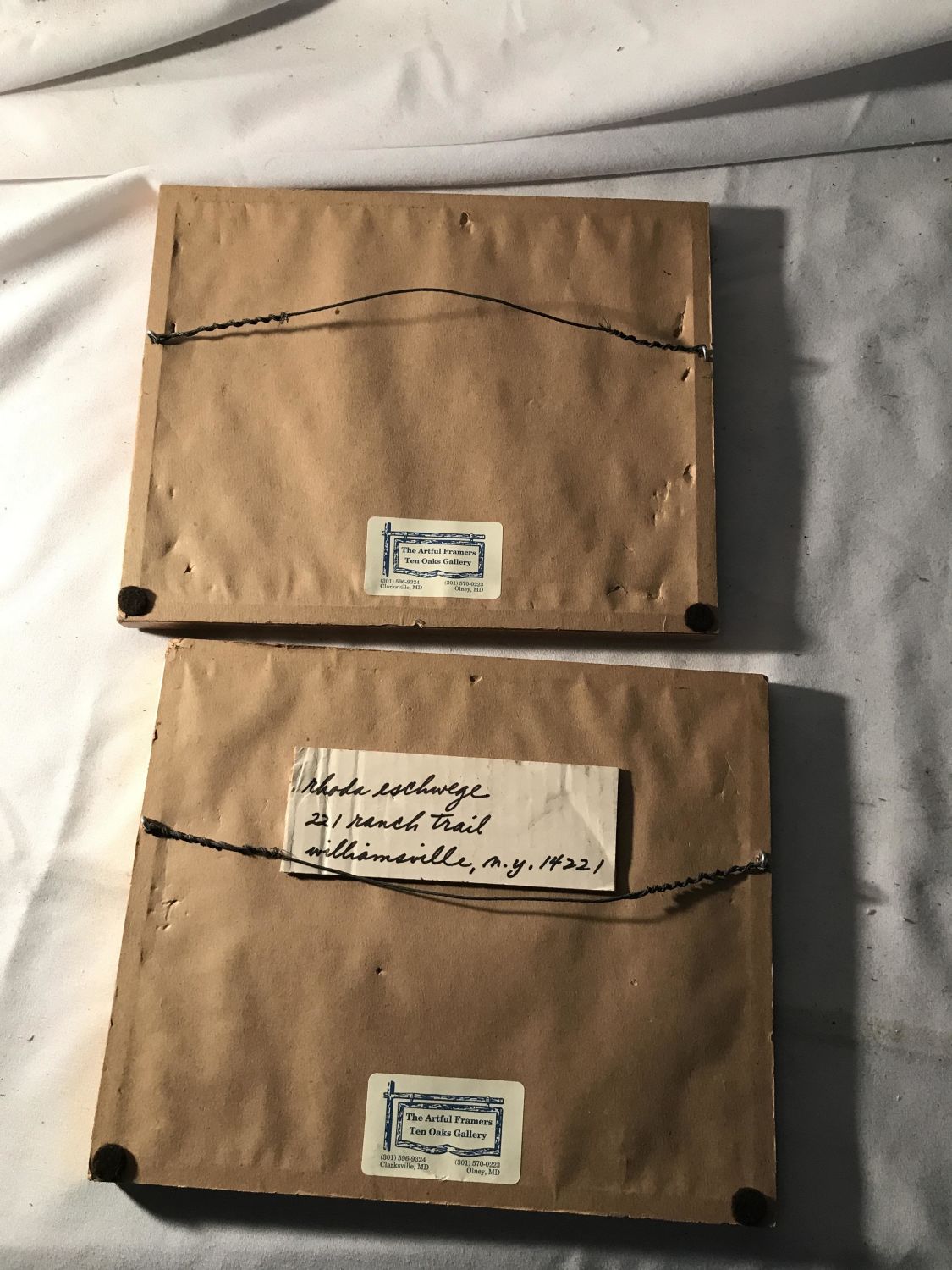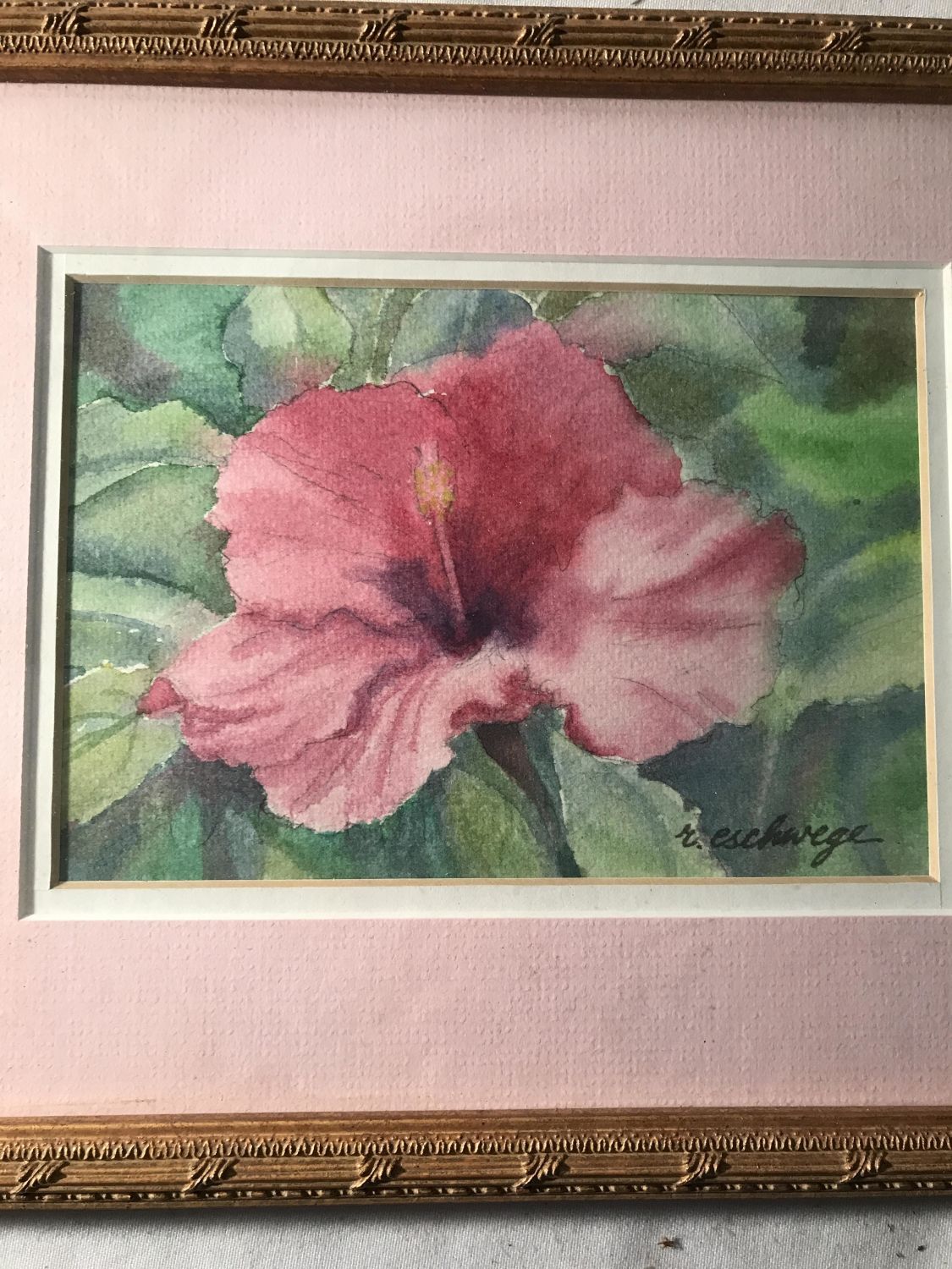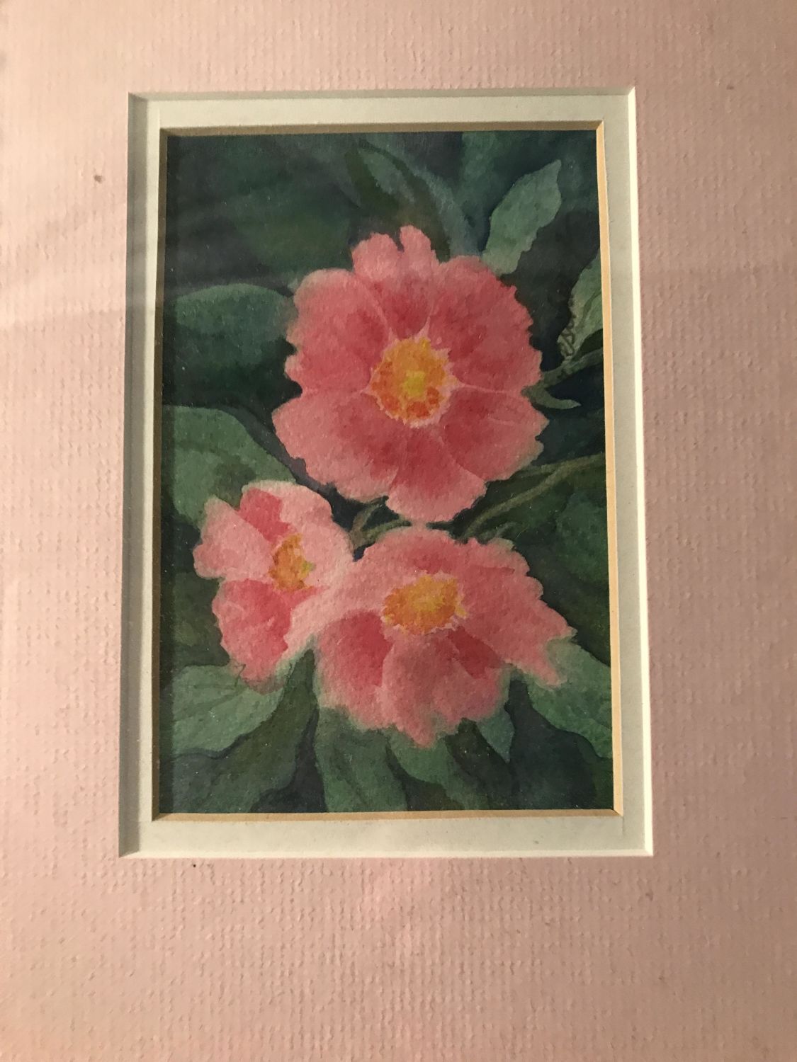 Each measuring 10 3/4 x 8 3/4 inches, both depicting pink flowers, one of which is a hibiscus