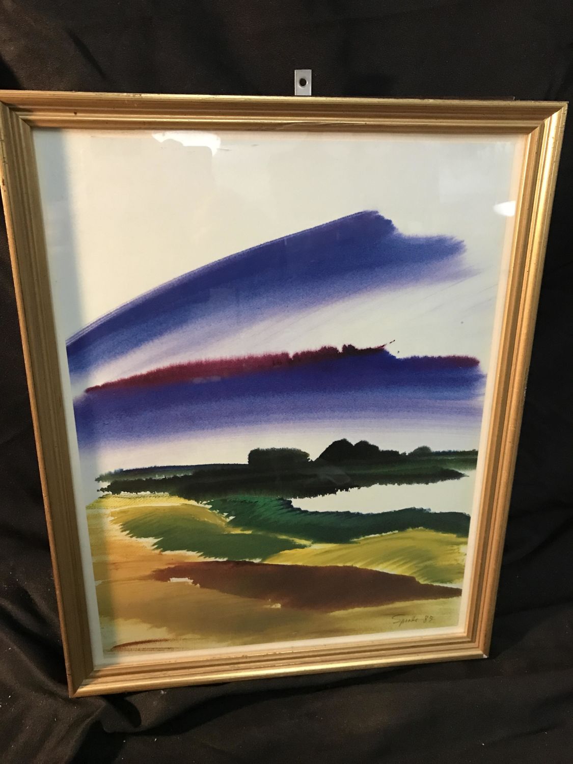 Cabinet behind picture,frame measures 15 x 19 wooden frame with glass