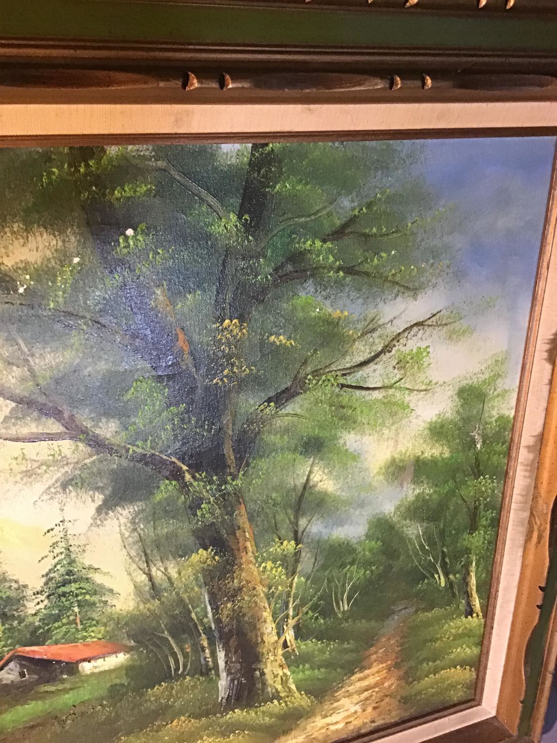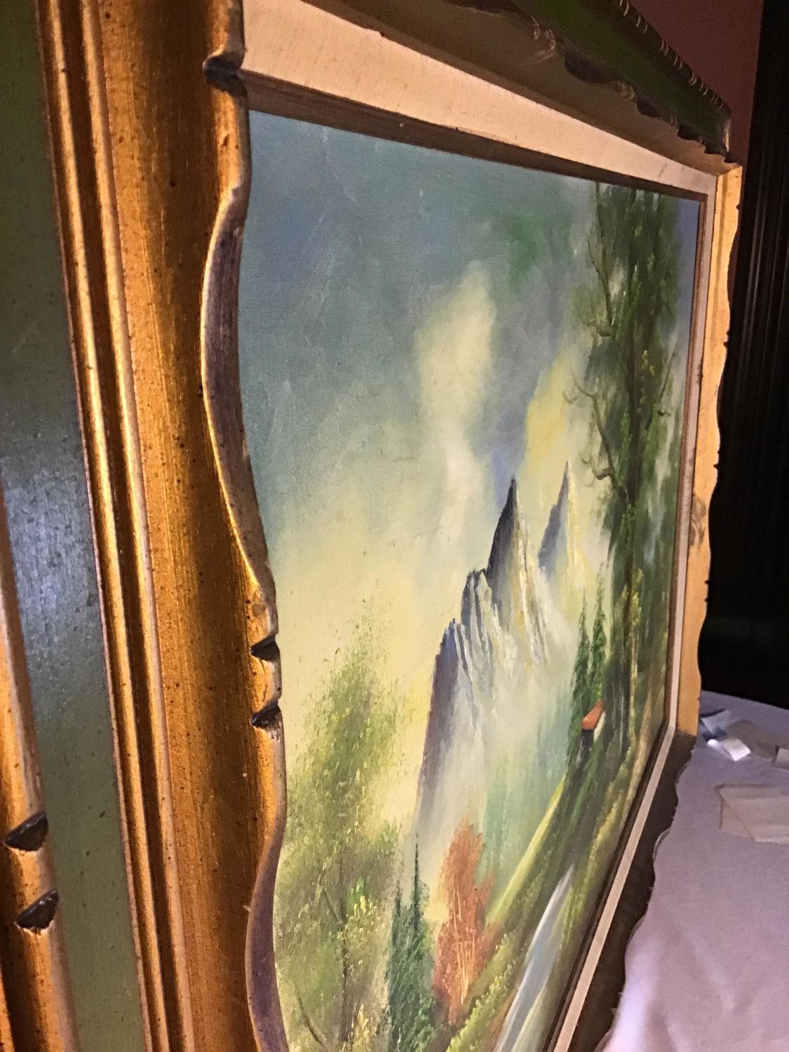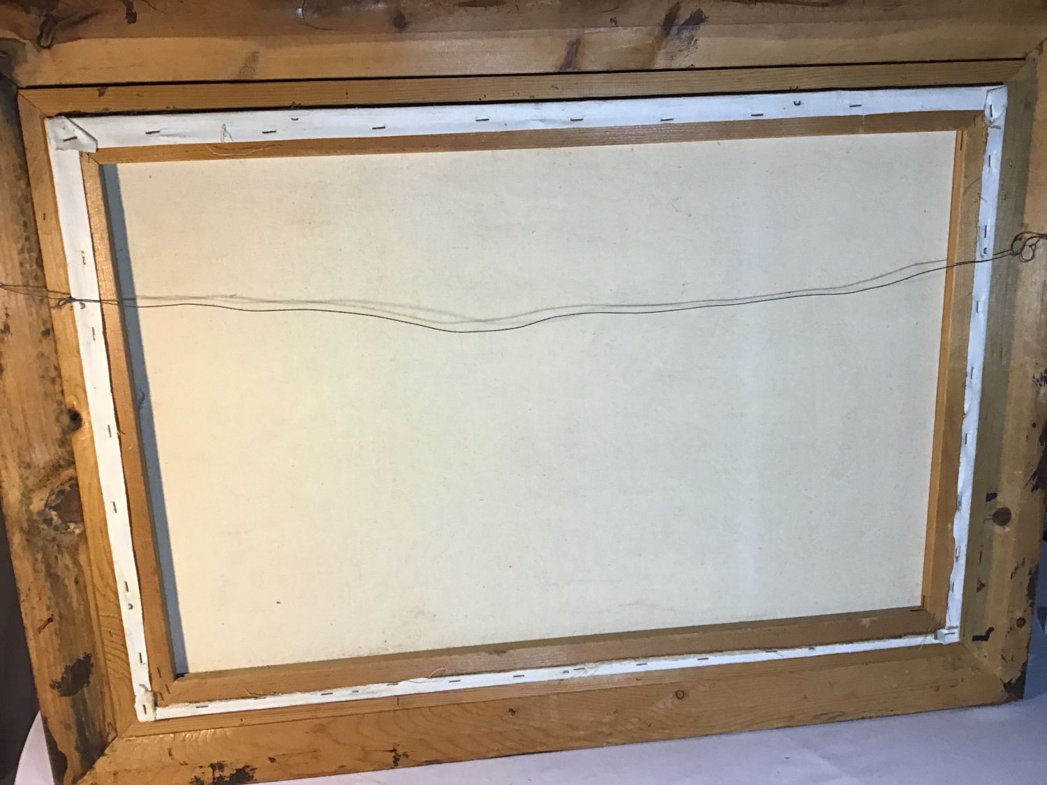 Framed with no backing, Frame measures 44 x 32 inches, Slight aging on canvass