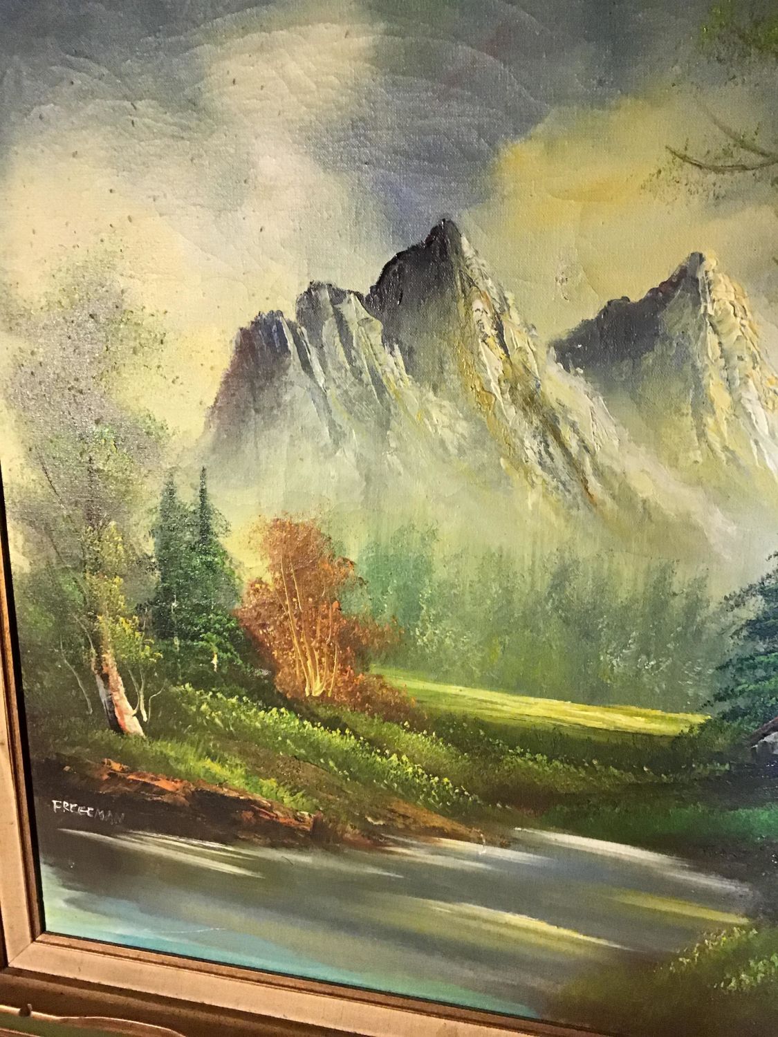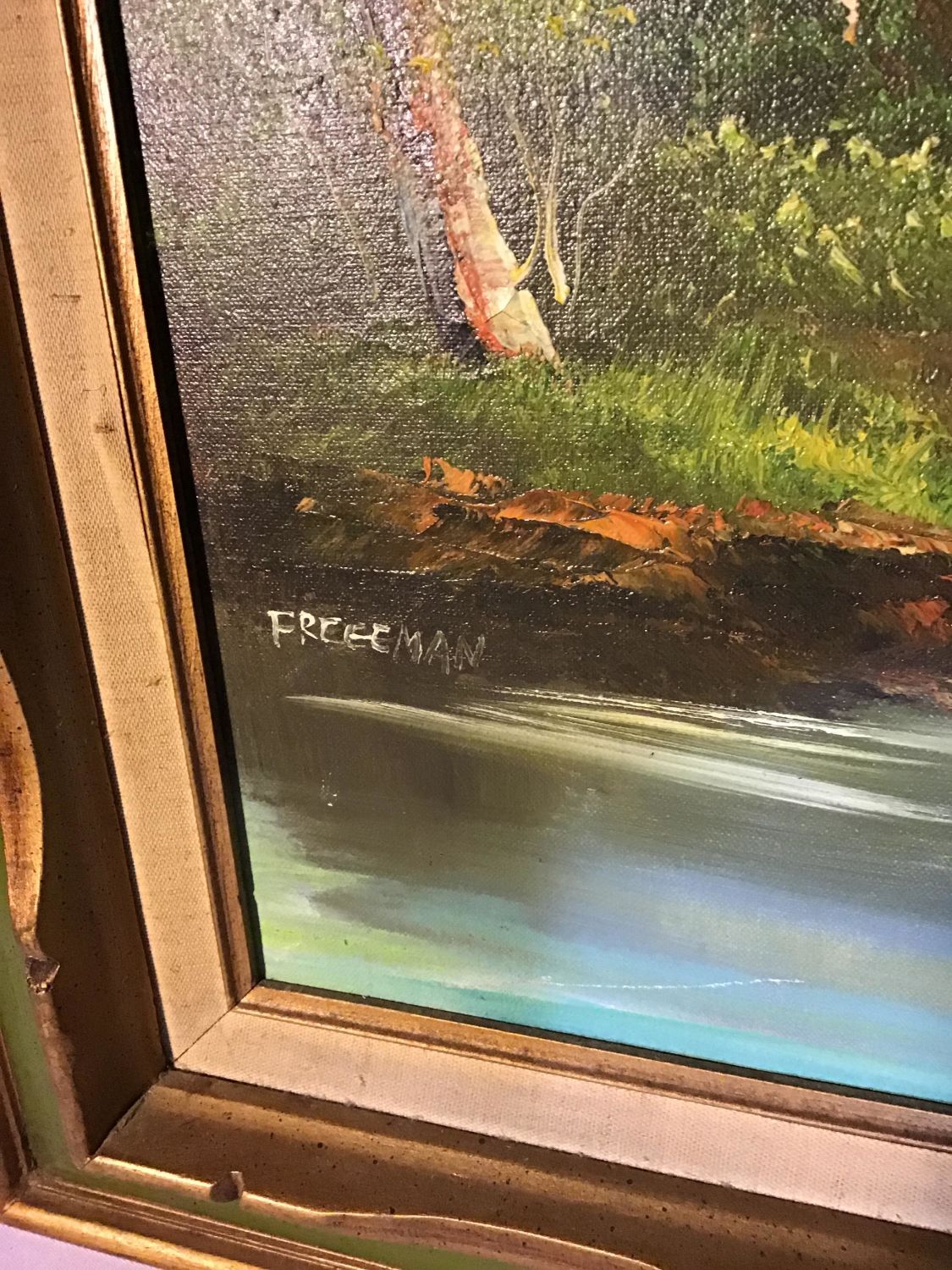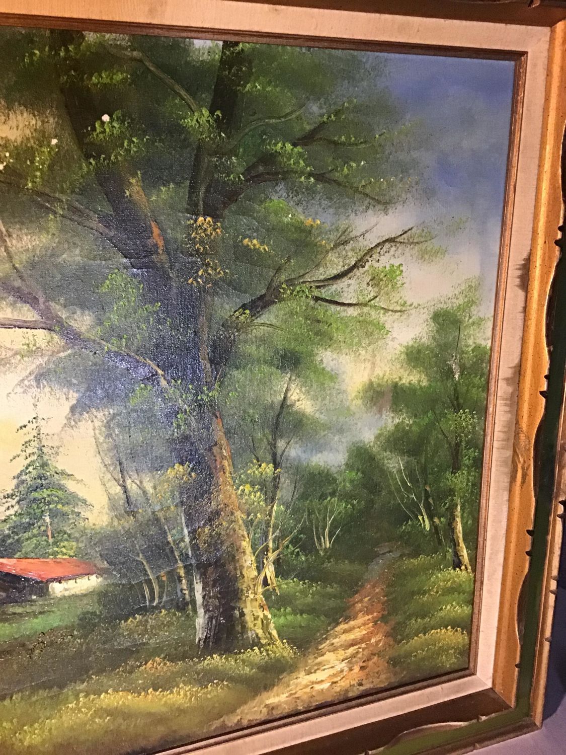Framed with no backing, Frame measures 44 x 32 inches, Slight aging on canvass