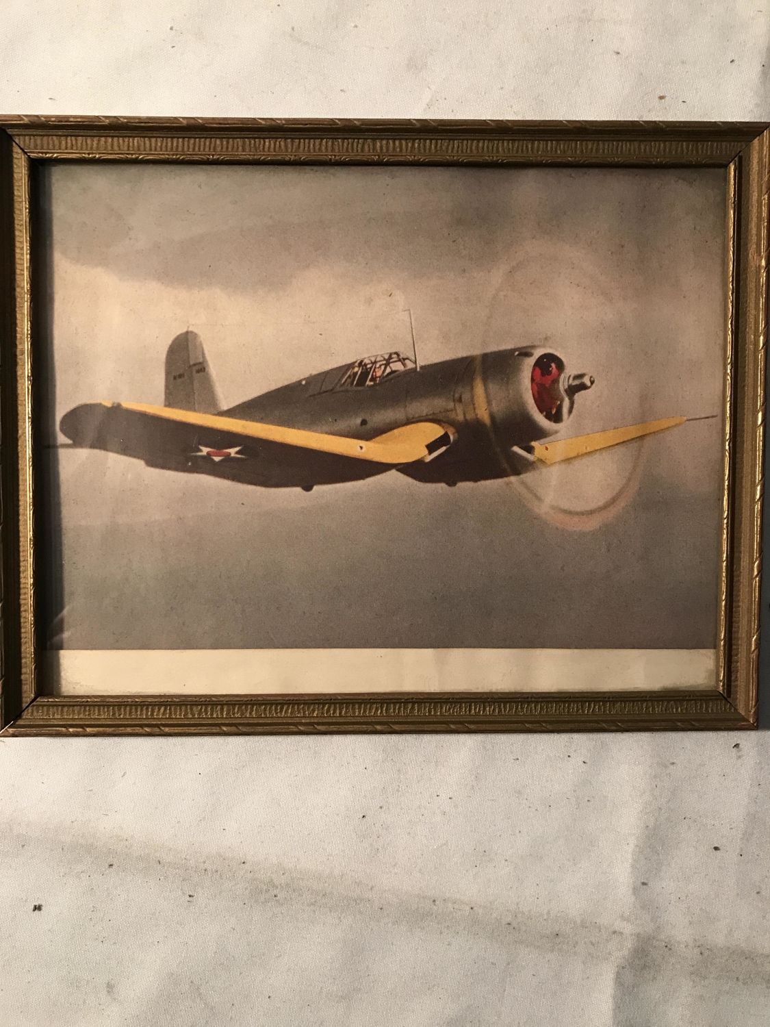 gold frame with glass, frame measuring 9 1/2 x 7 3/4 inches