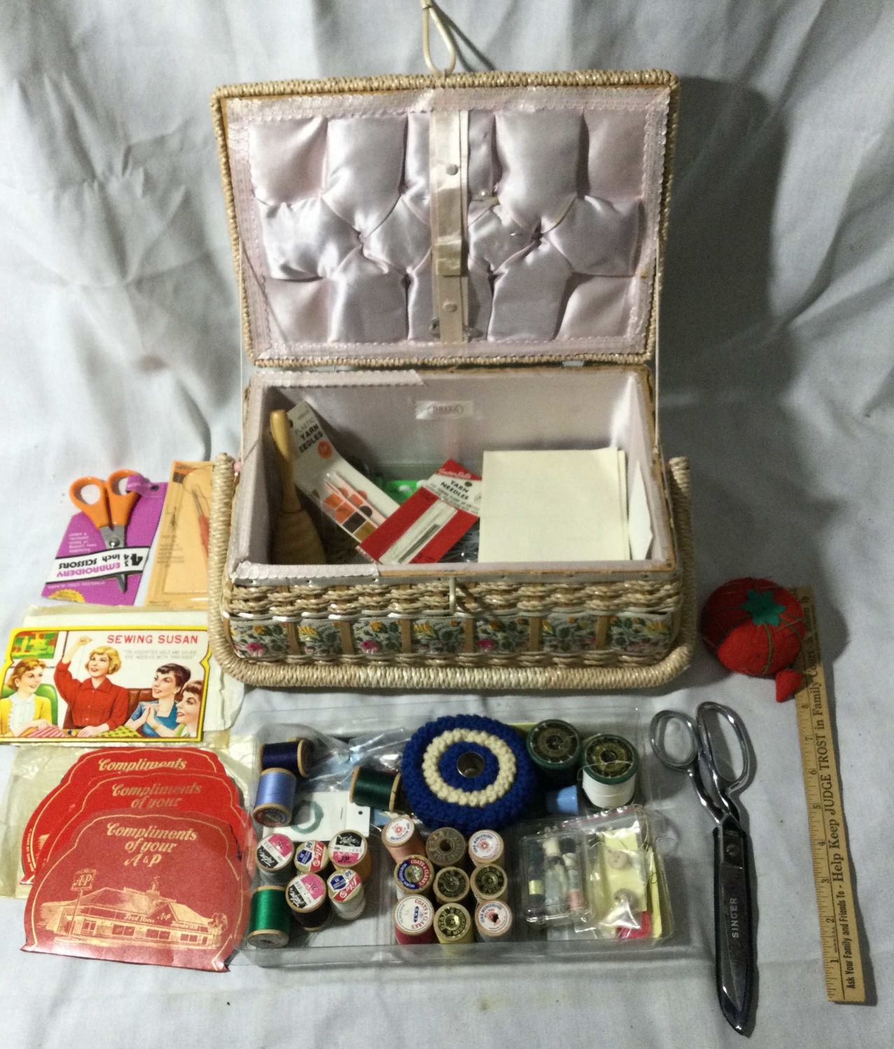 measuring 12 x 6 x 8 inches, includes everything you need scissors needles thread buttons and more