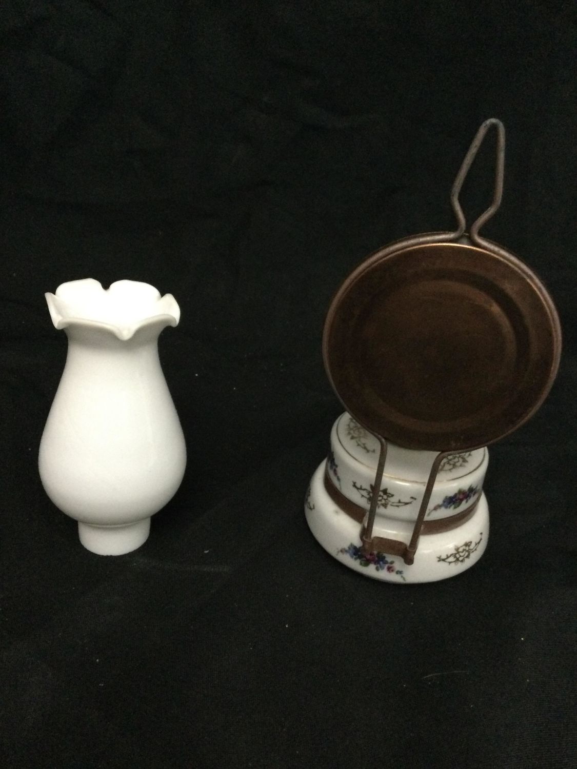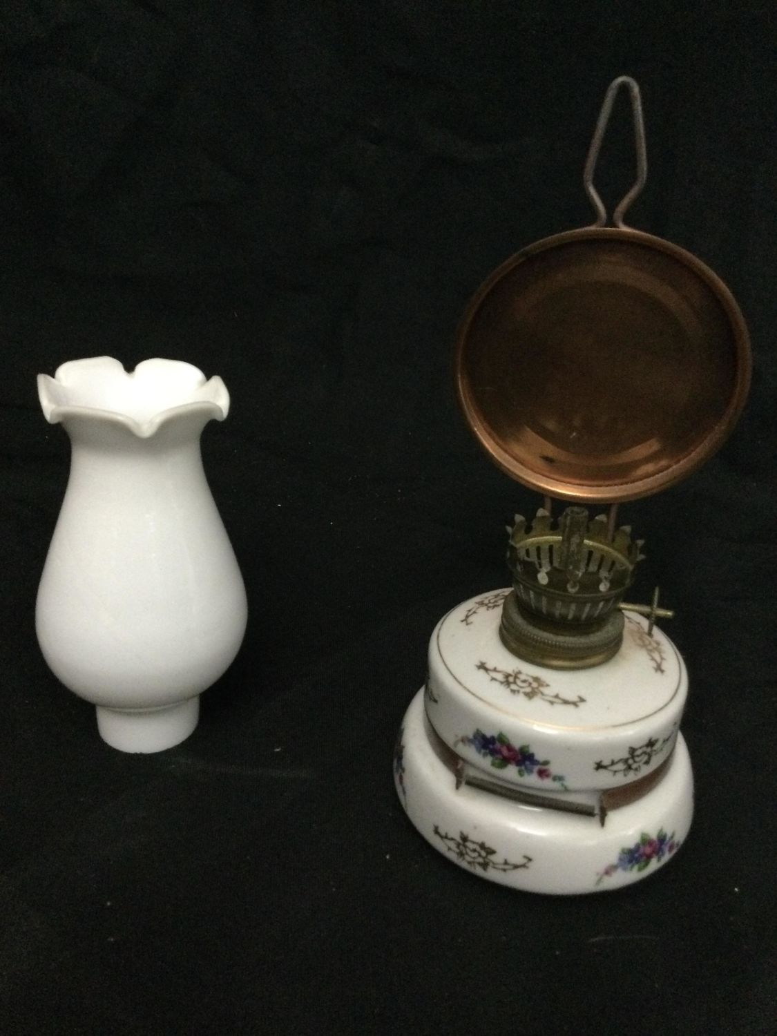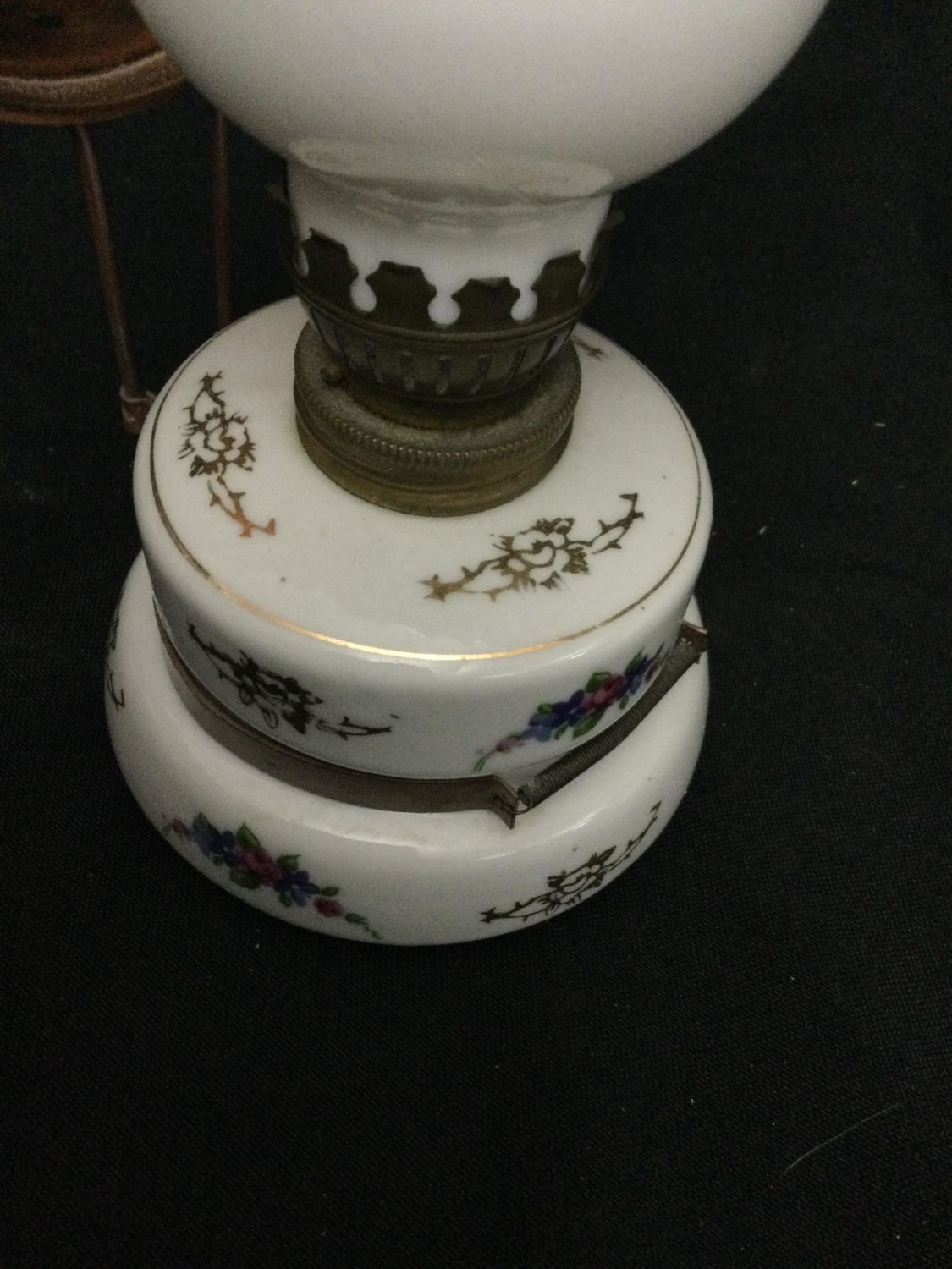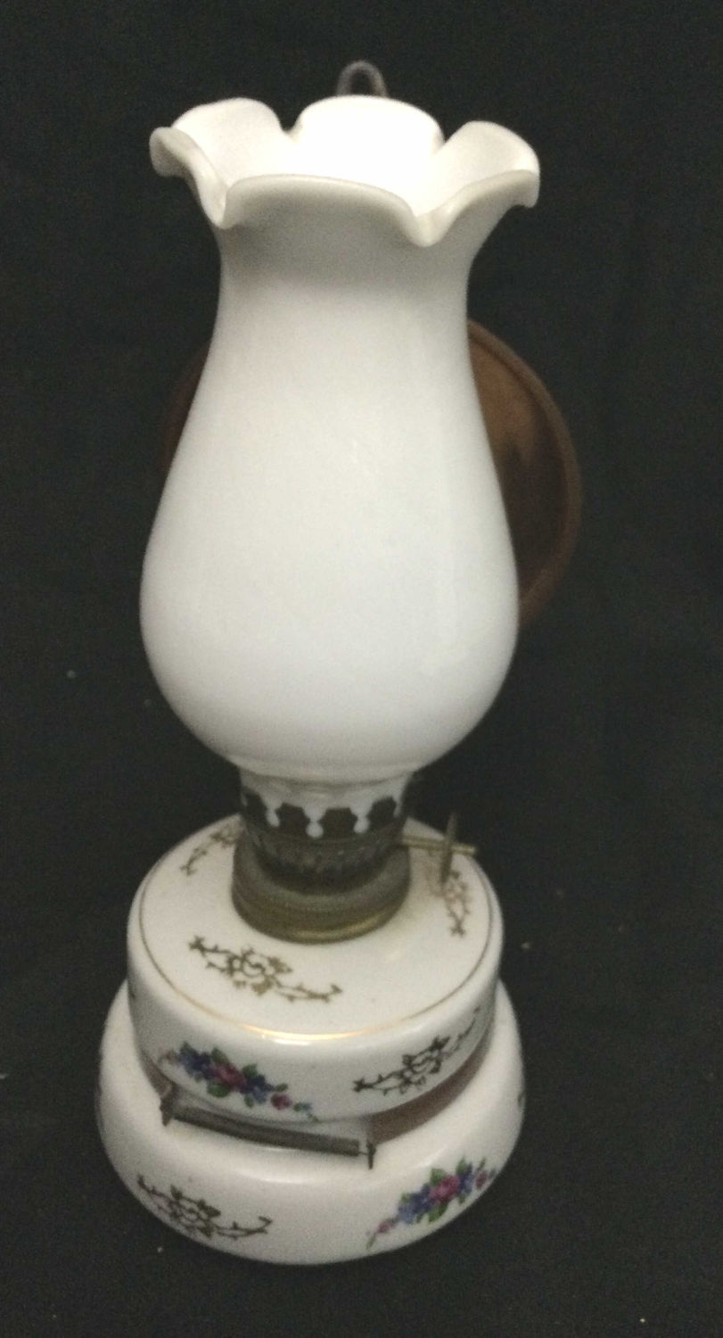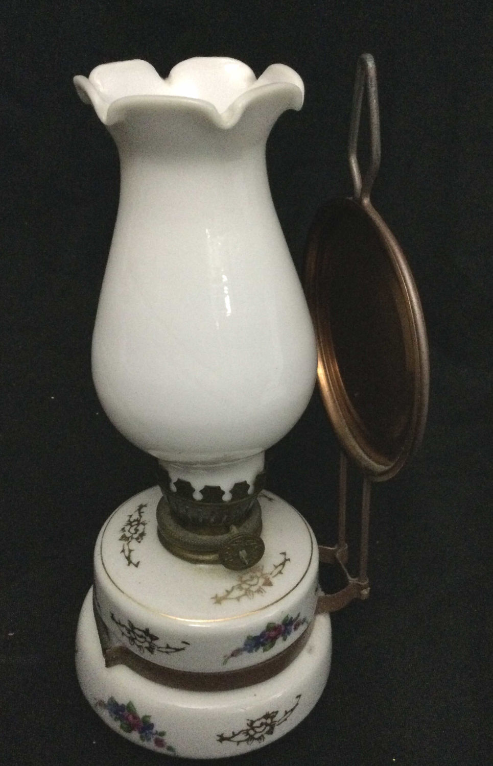 Copper reflector measures 3 1/2 inches wide has milk glass shade made in Japan 8 inches tall
